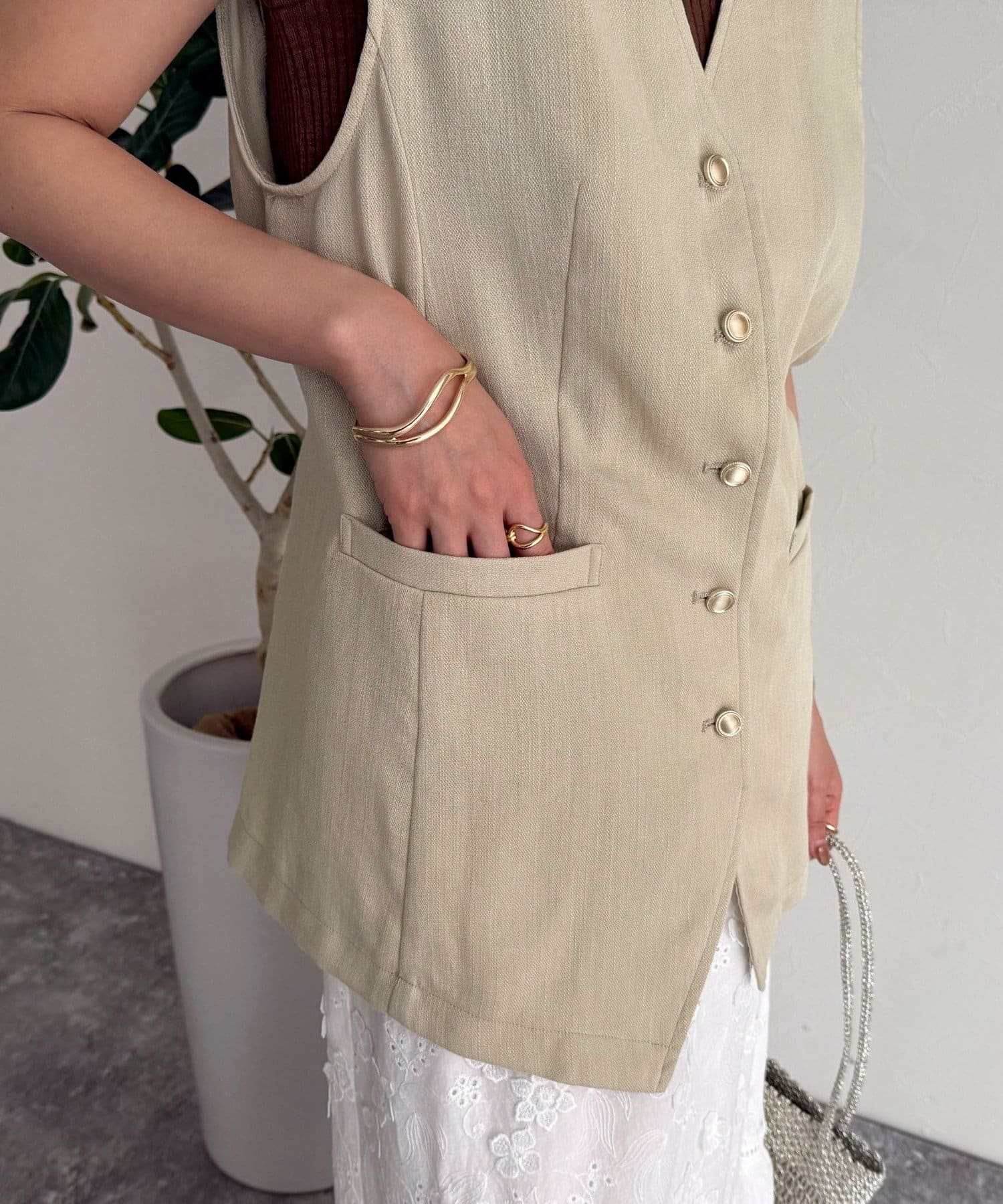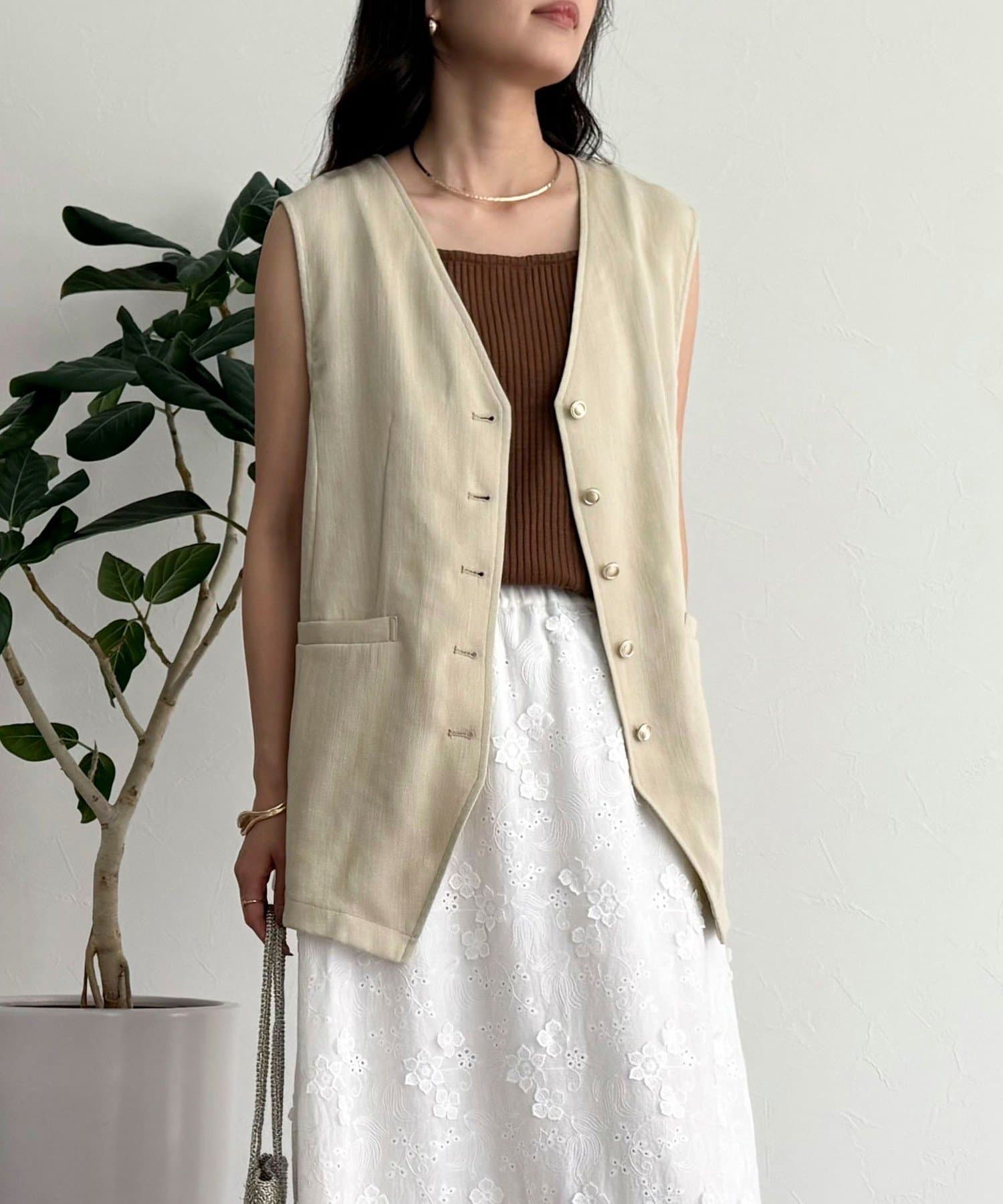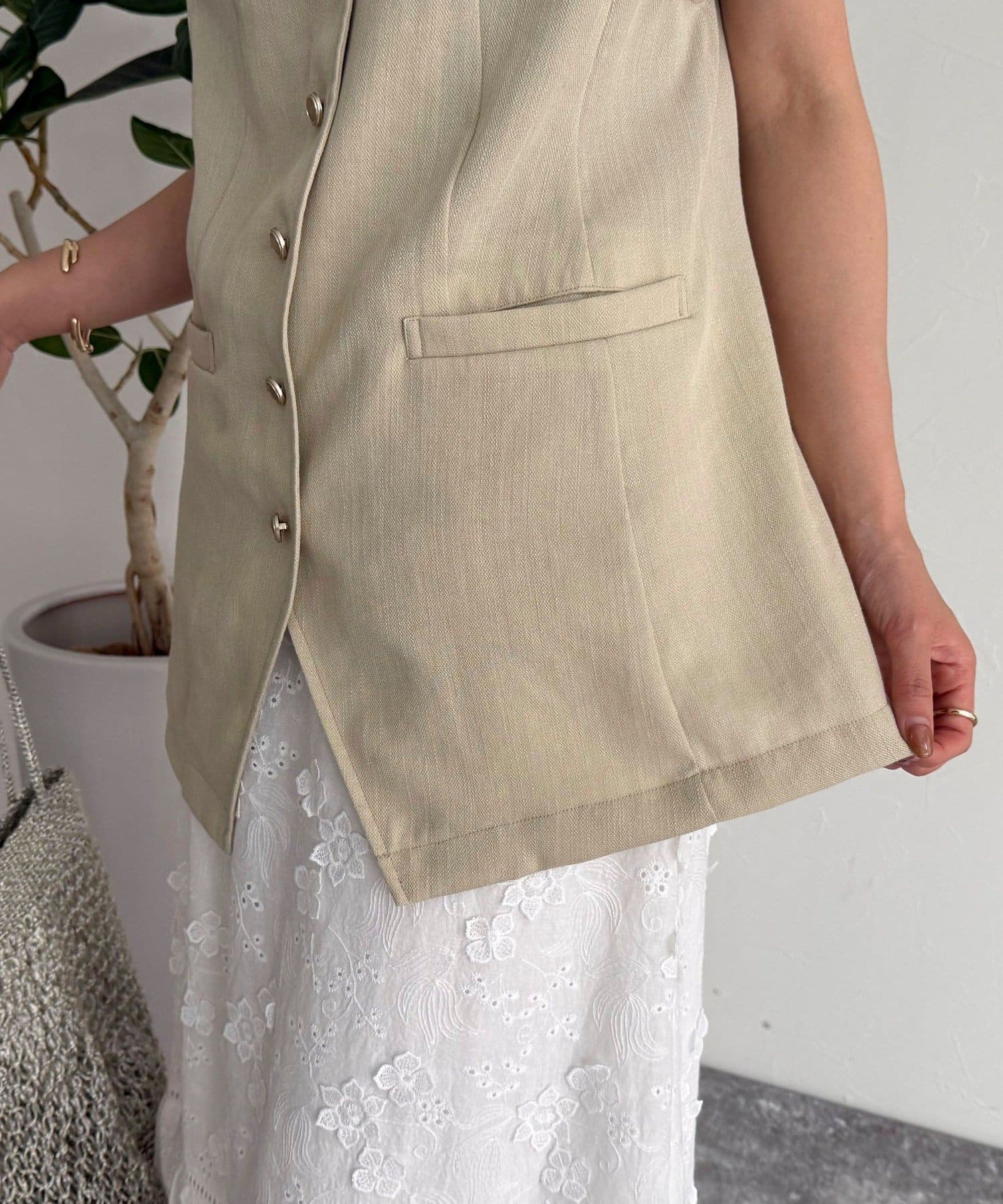 品番 5-0021-4-24-001 素材 (本体)レーヨン76%,ナイロン20%,麻4%,(パイピング)ポリエステル100%,(別布)ポリエステル80%,綿20% 原産国 中国 サイズ 38 カテゴリ ジャケット/アウター > ベスト/ジレ タイプ レディース ギフト ラッピング 可 取り扱い 本体:手洗い可能 アイテムサイズ