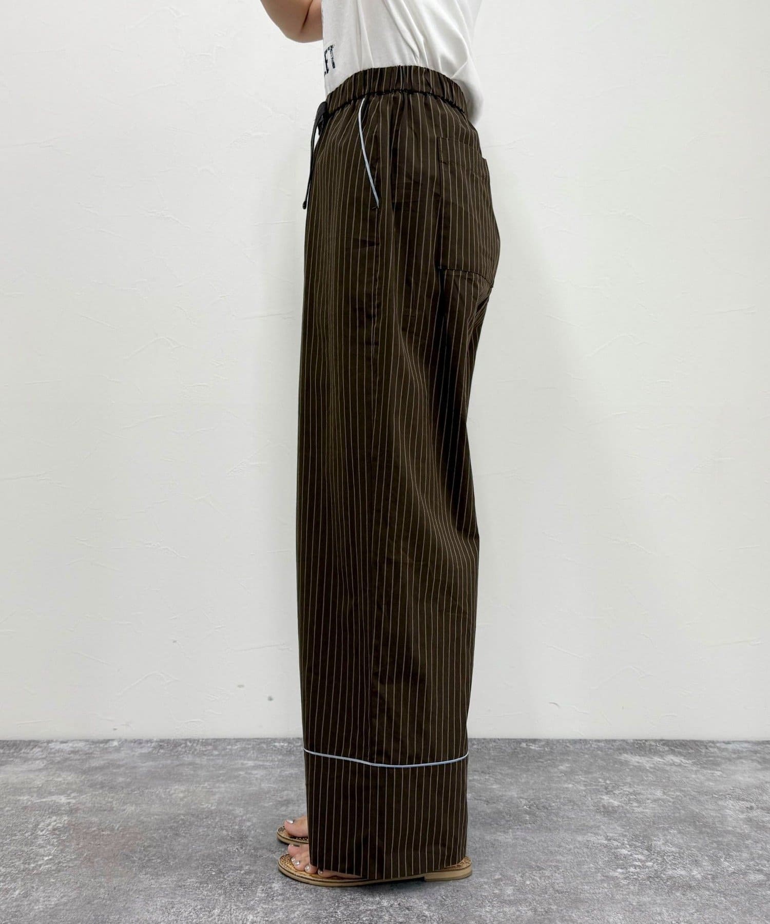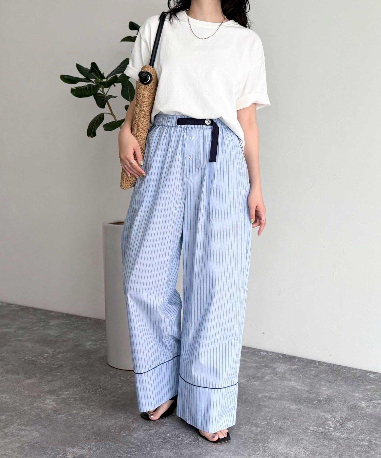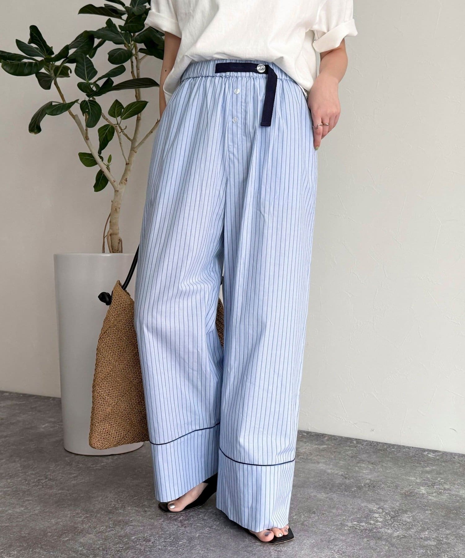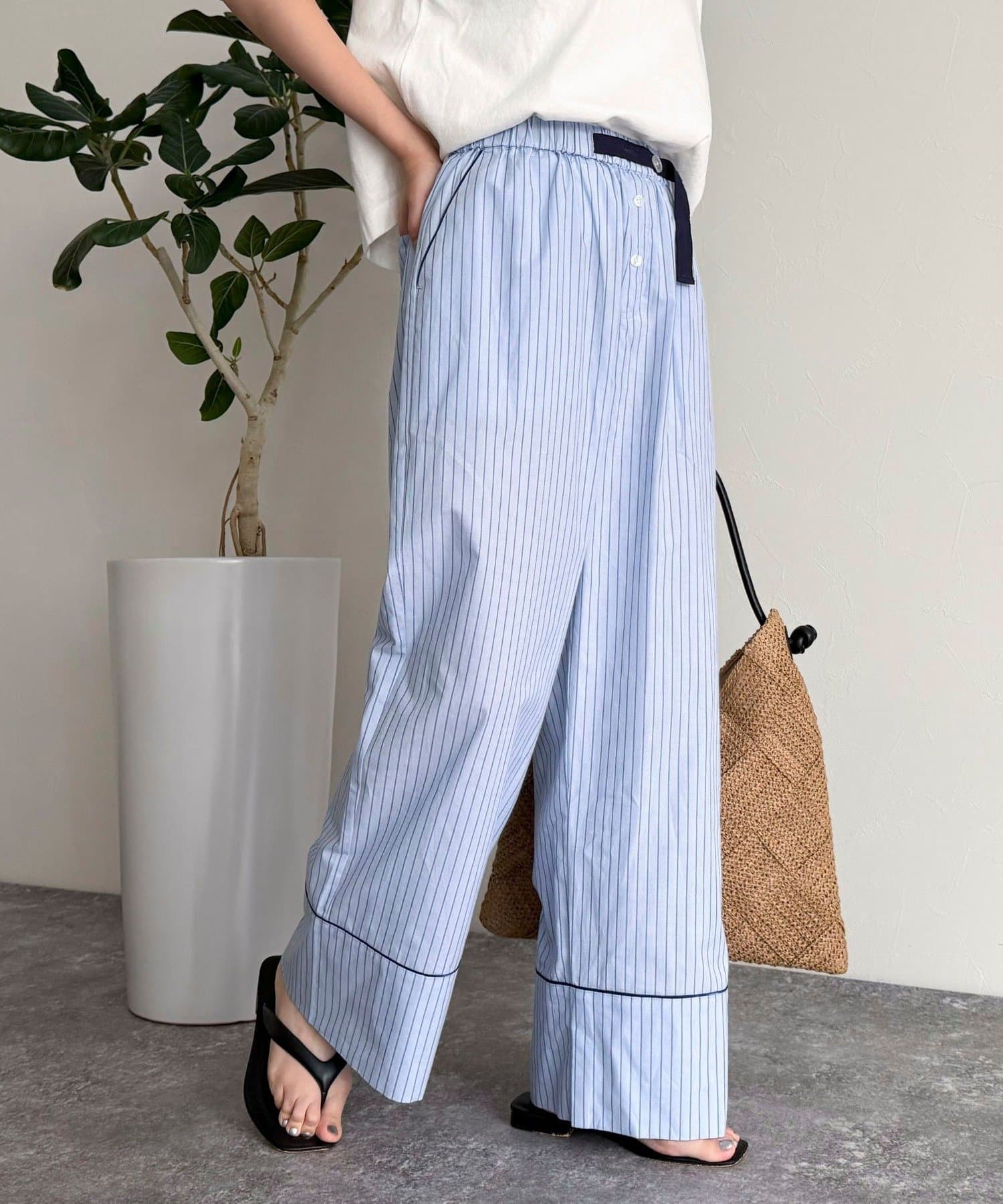 ・程よくゆったりとしたシルエットと、爽やかなストライプ柄が魅力のパジャマパンツです