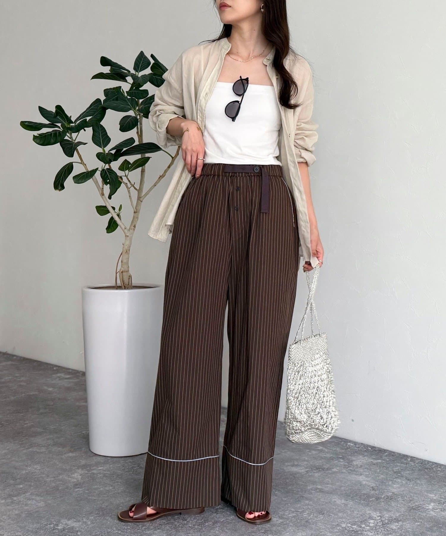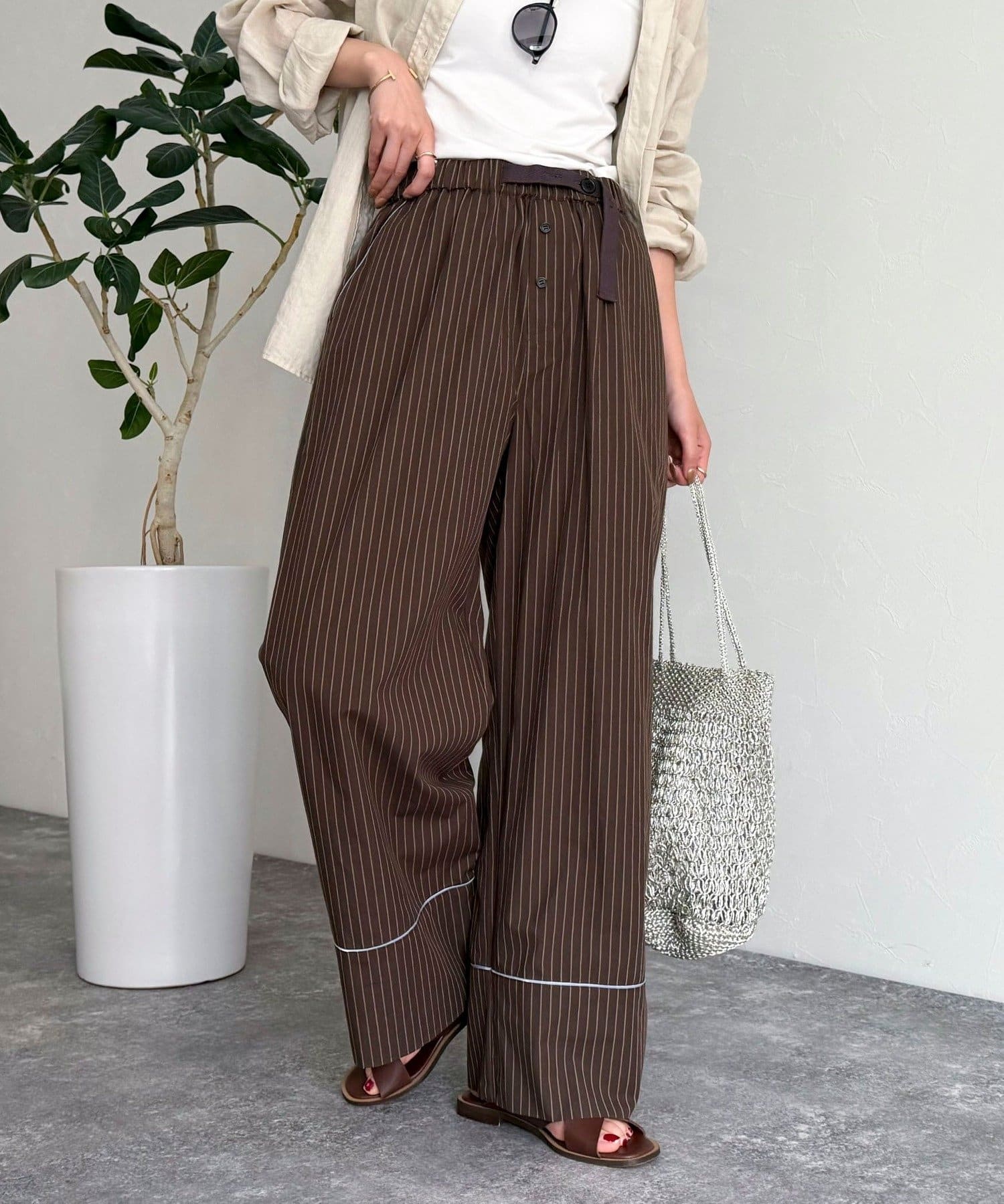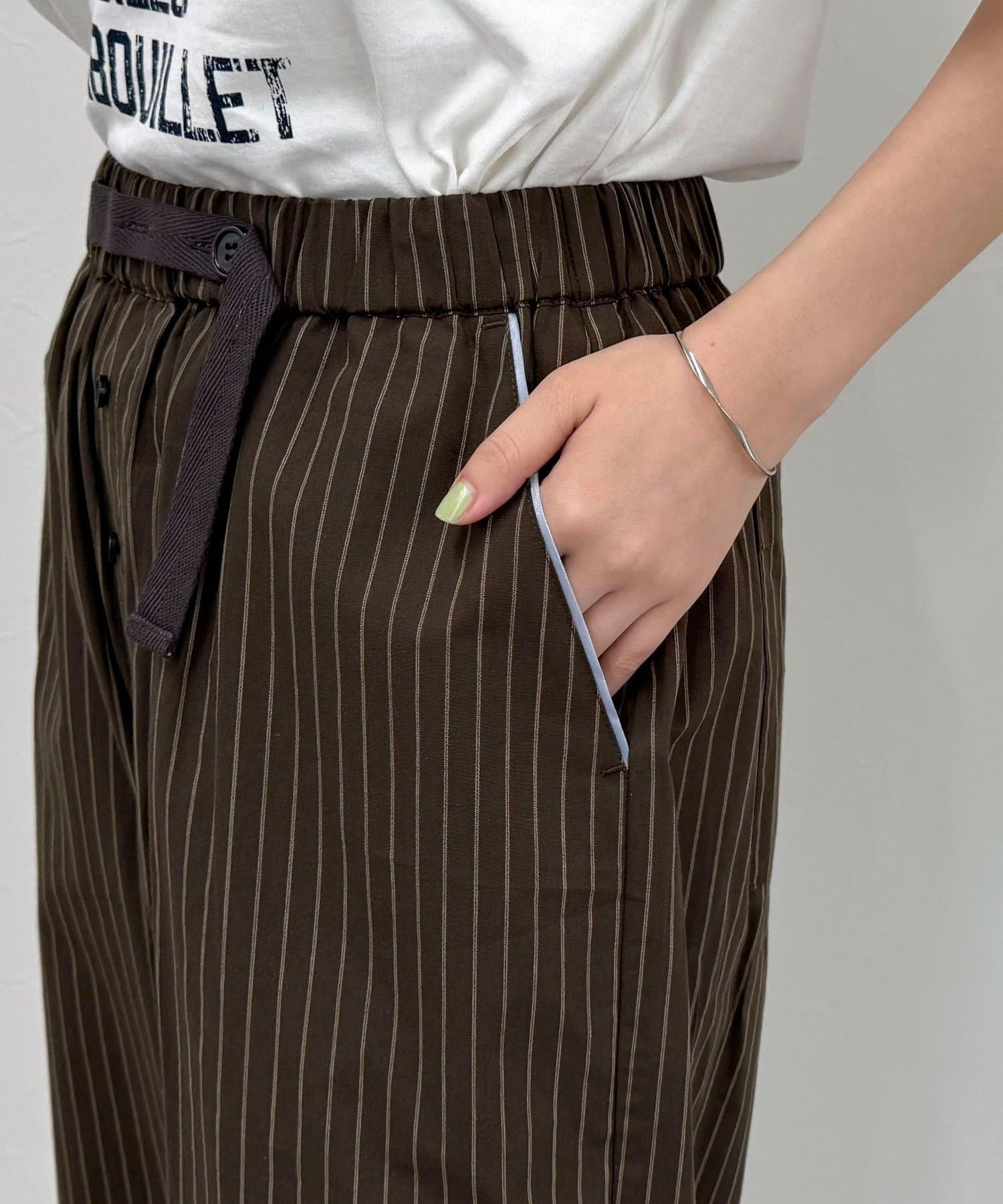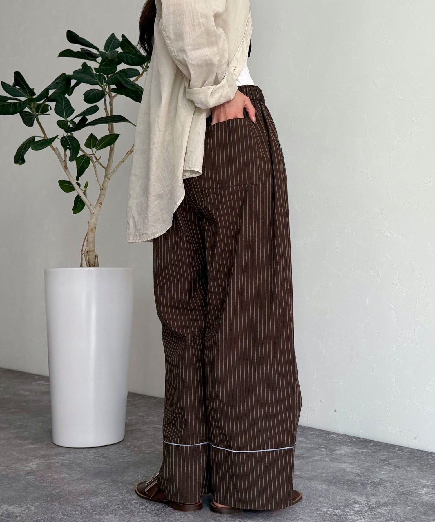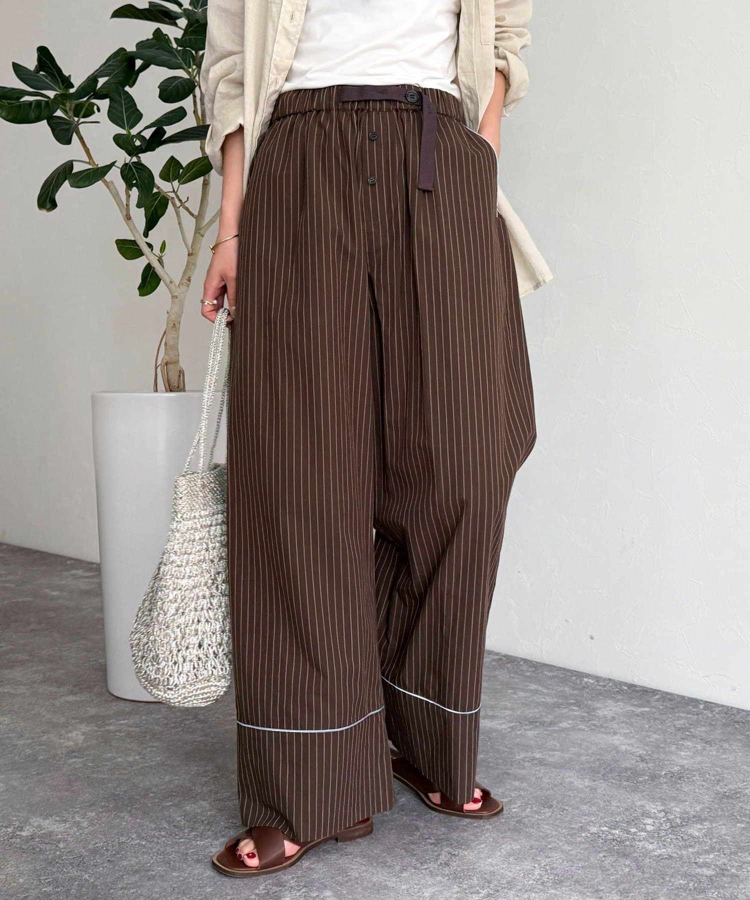 ・程よくゆったりとしたシルエットと、爽やかなストライプ柄が魅力のパジャマパンツです