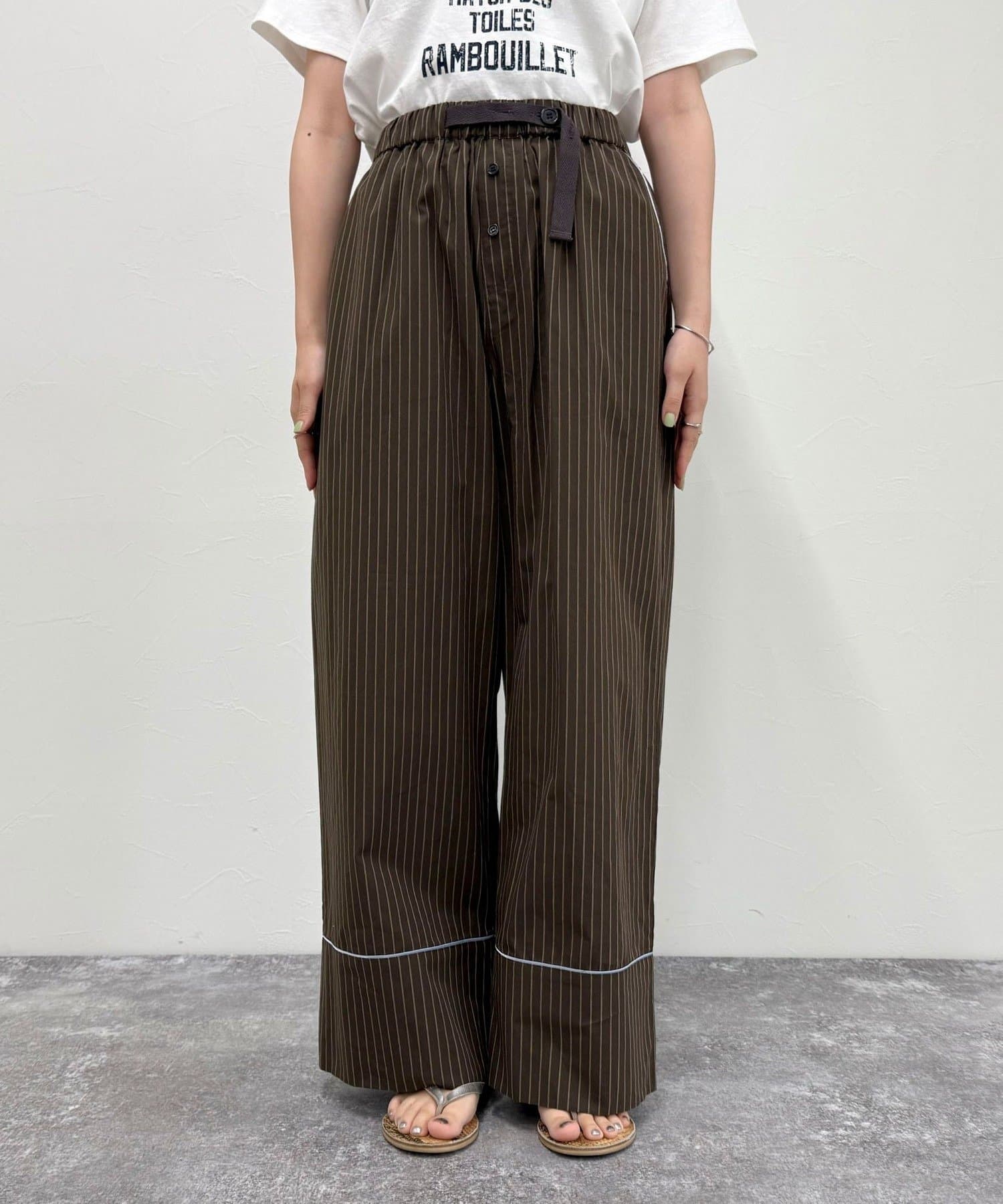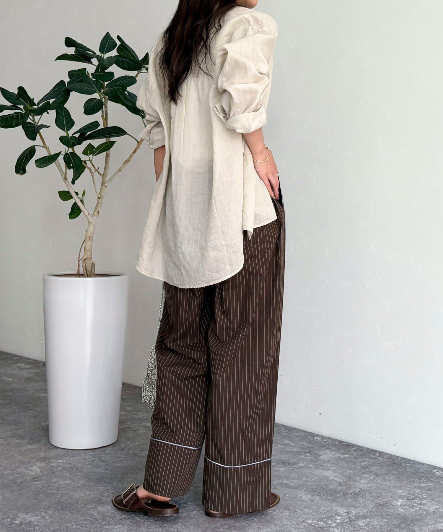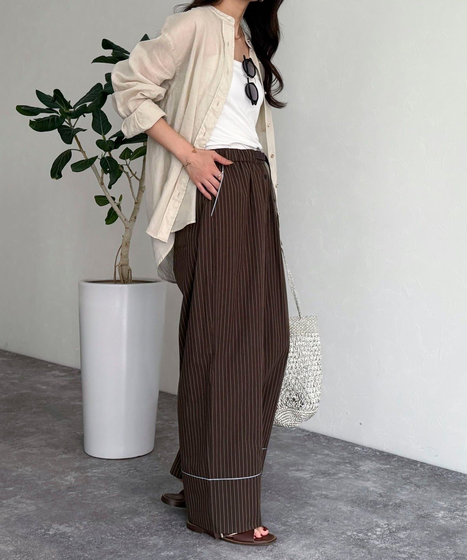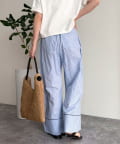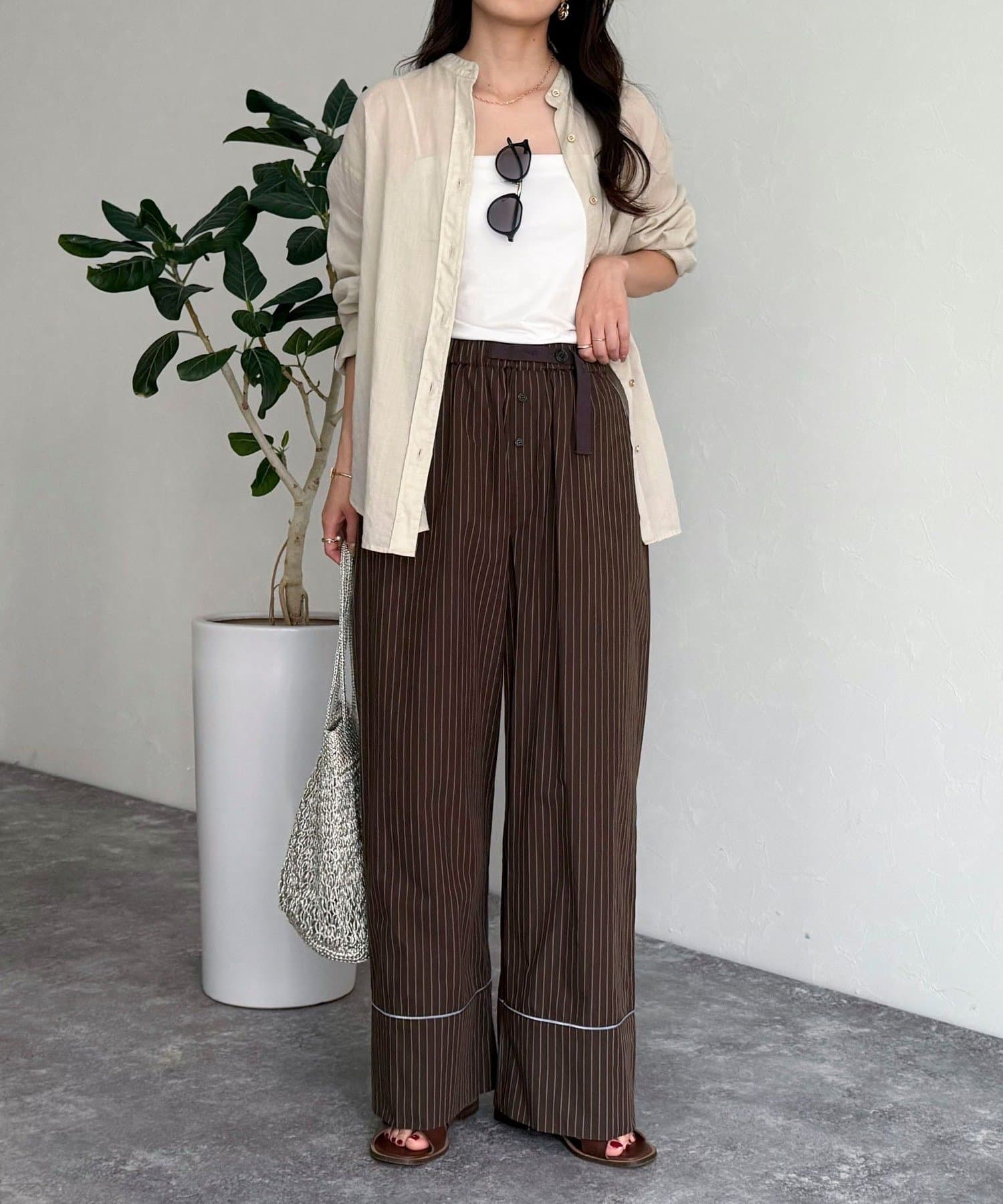 ・程よくゆったりとしたシルエットと、爽やかなストライプ柄が魅力のパジャマパンツです