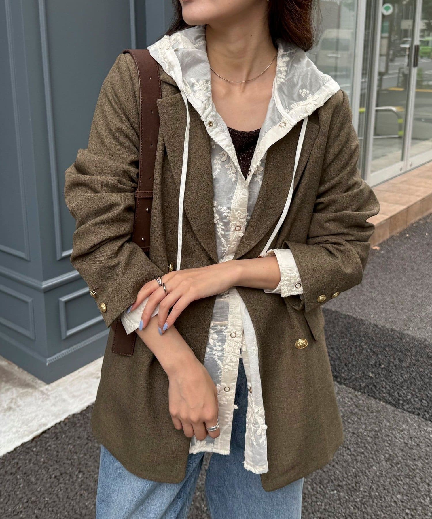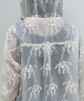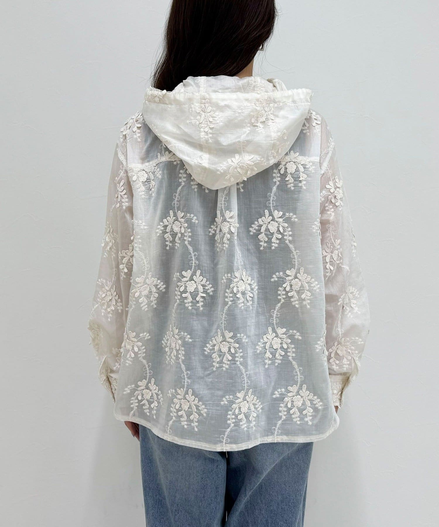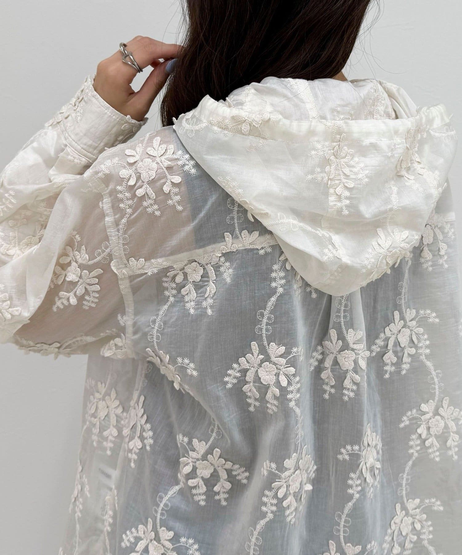 ・カジュアルなフードデザインに、程よい透け感と繊細な刺繍を掛け合わせて、大人のこなれ感を演出