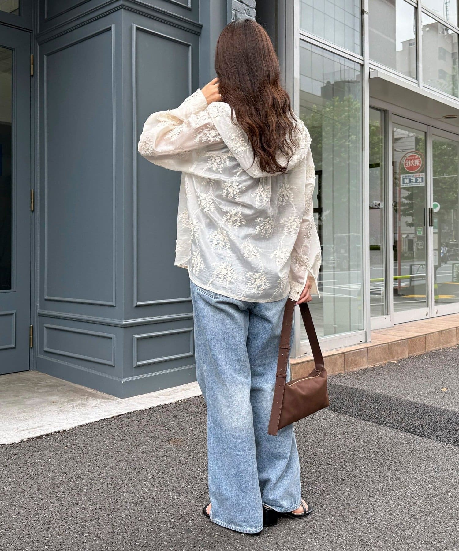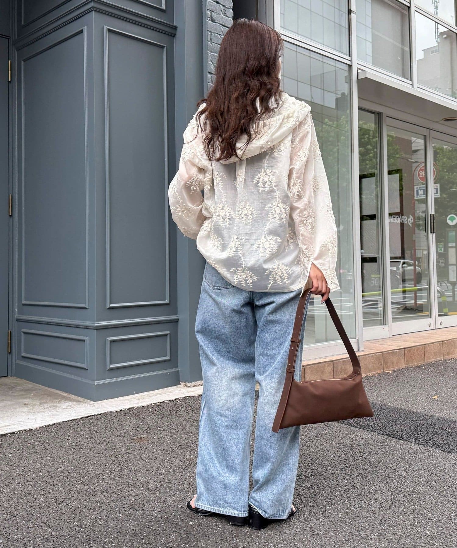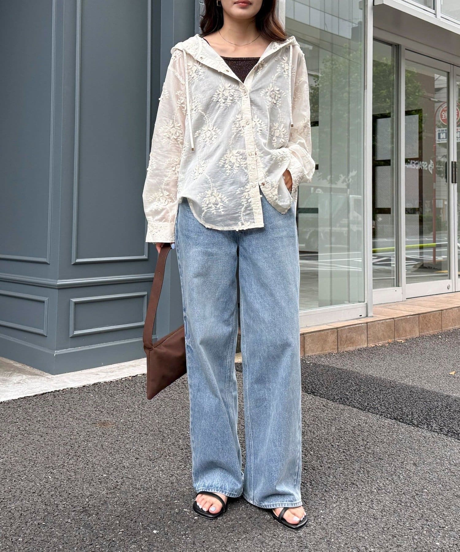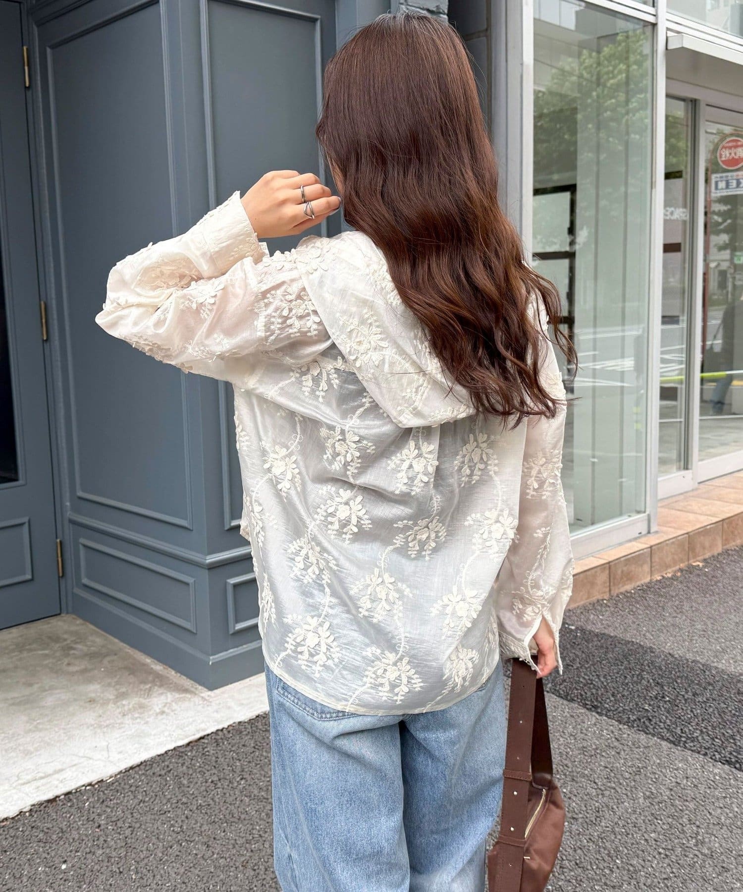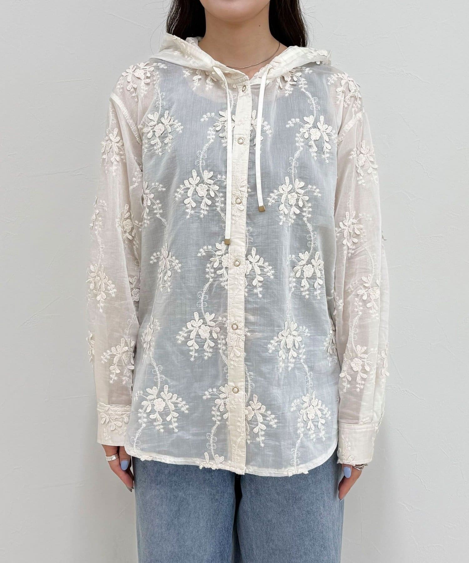 繊細な刺繍と透け感で魅せる、大人のフードシャツ