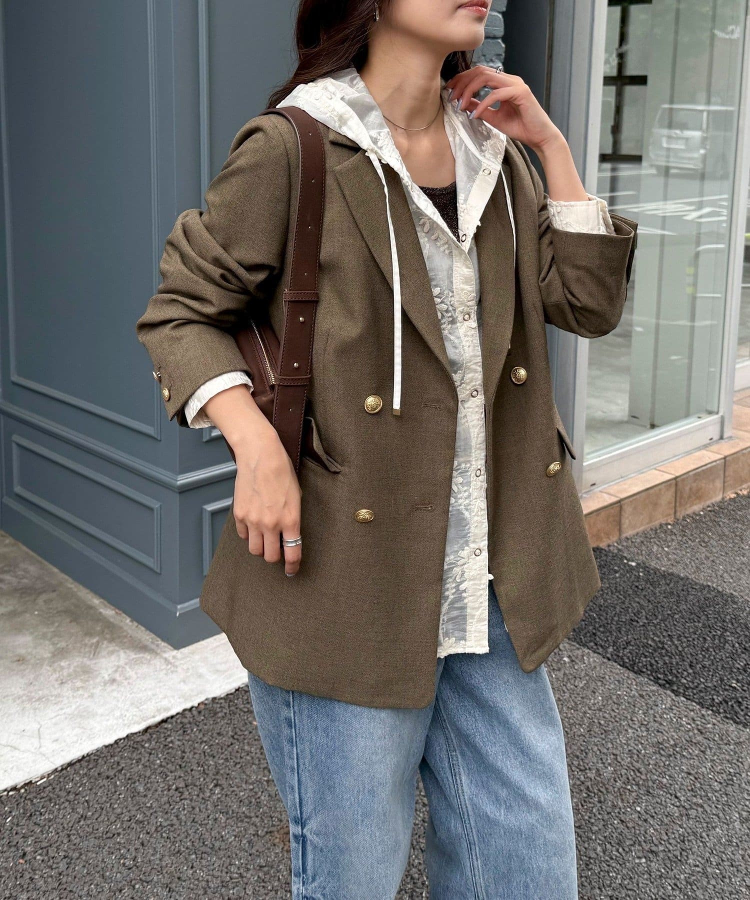 ・前開き仕様で羽織りとしても使え、レイヤードスタイルにもぴったり