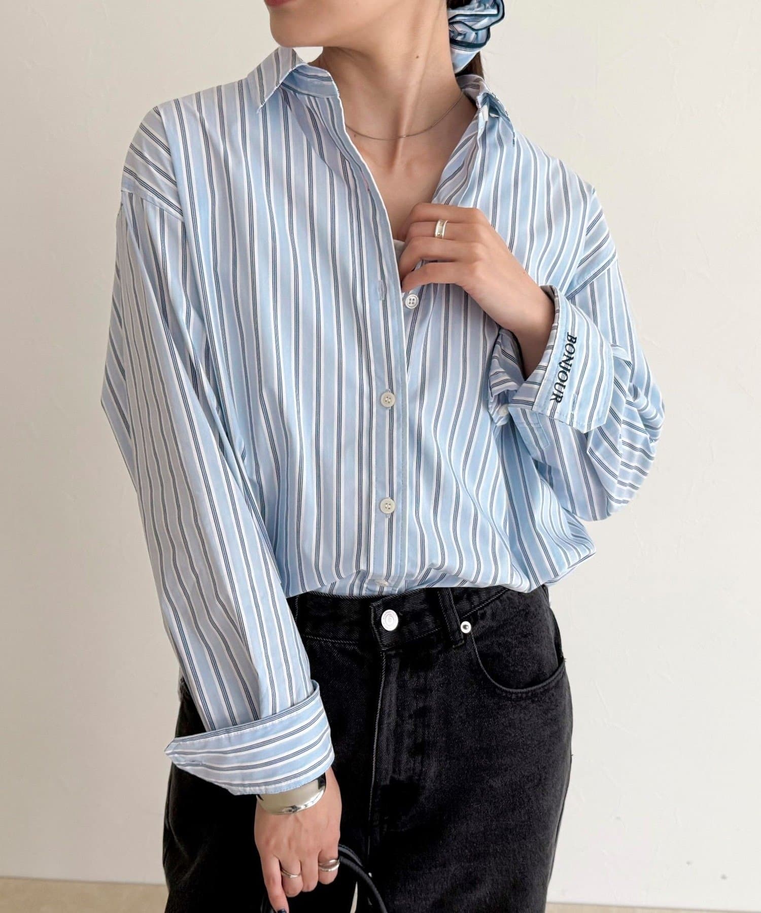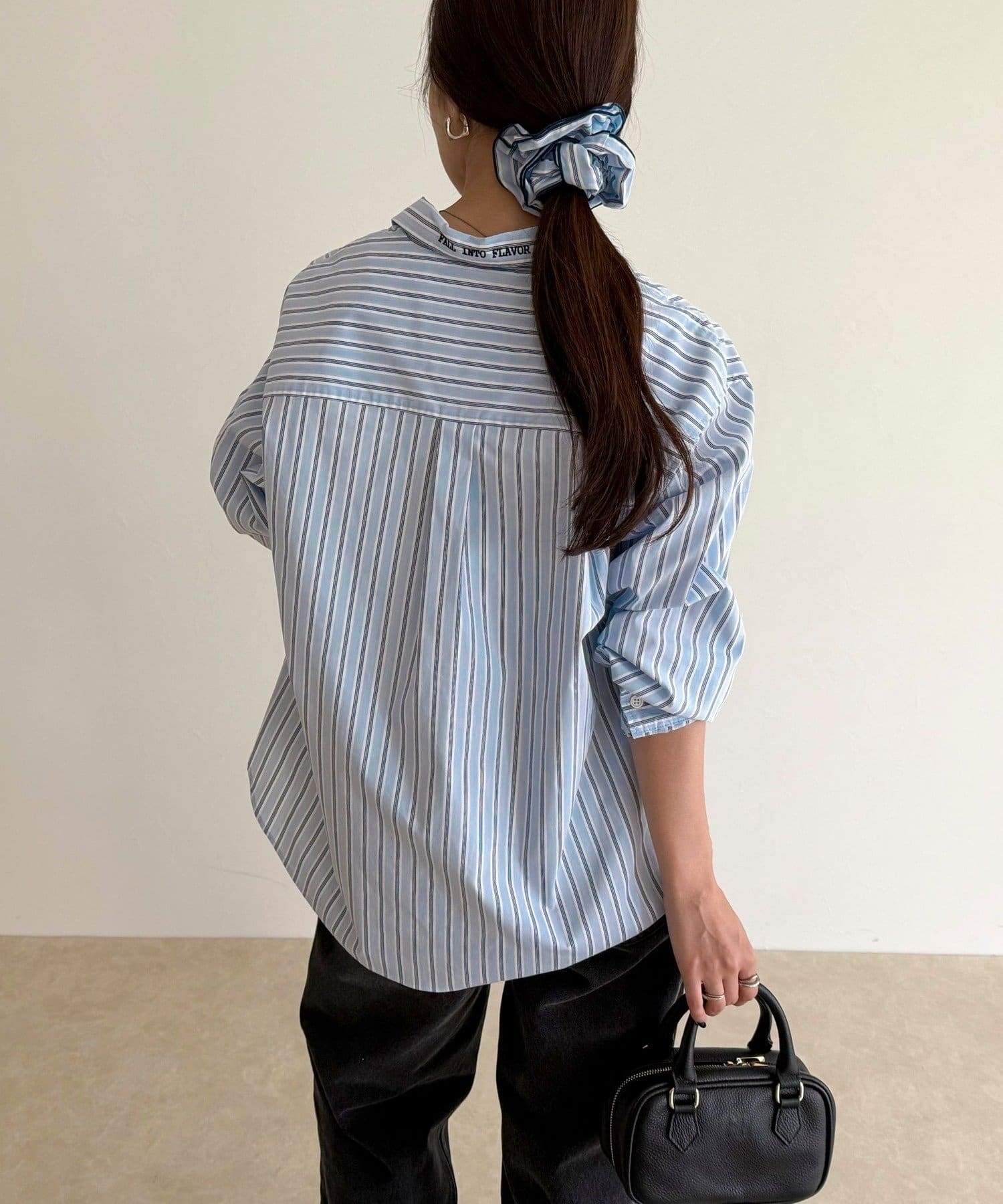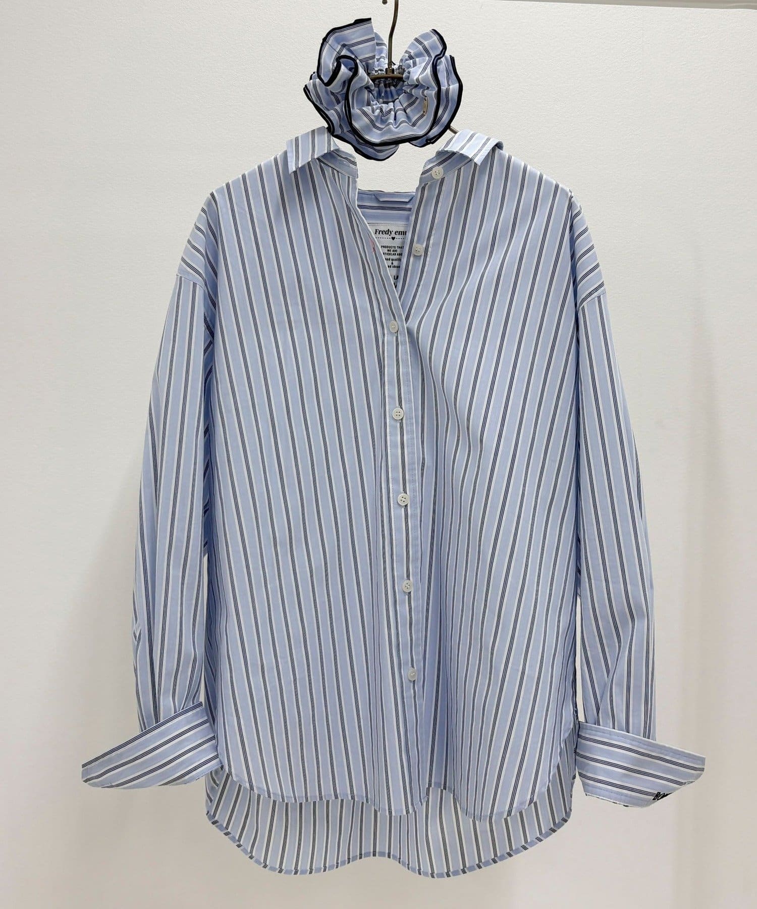 ・柔らかなブルーが目を引く、刺繍入りシャツとシュシュがセットになったWEB限定アイテム!