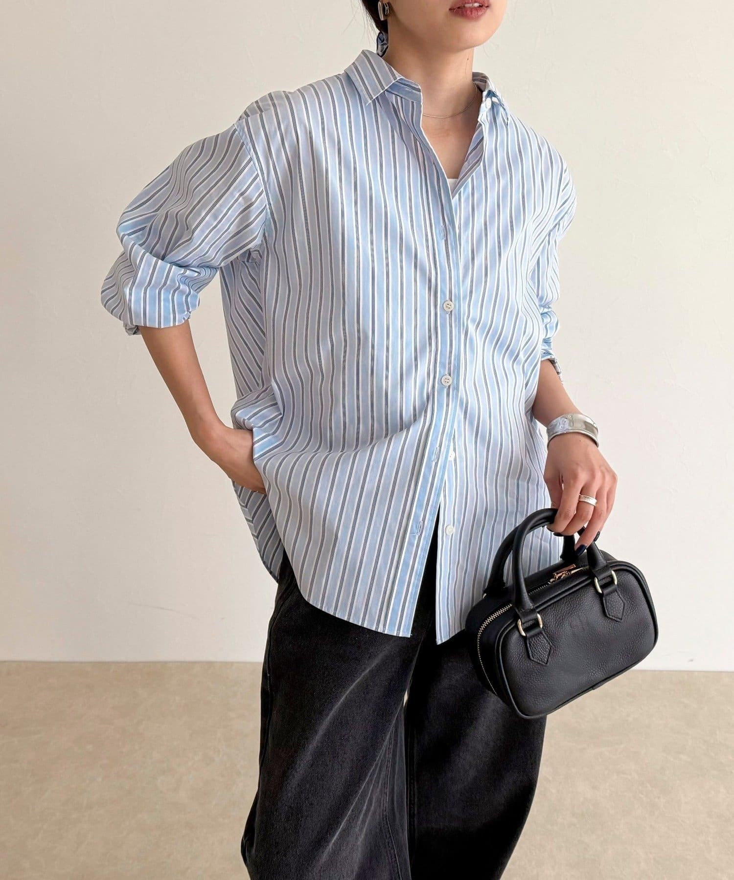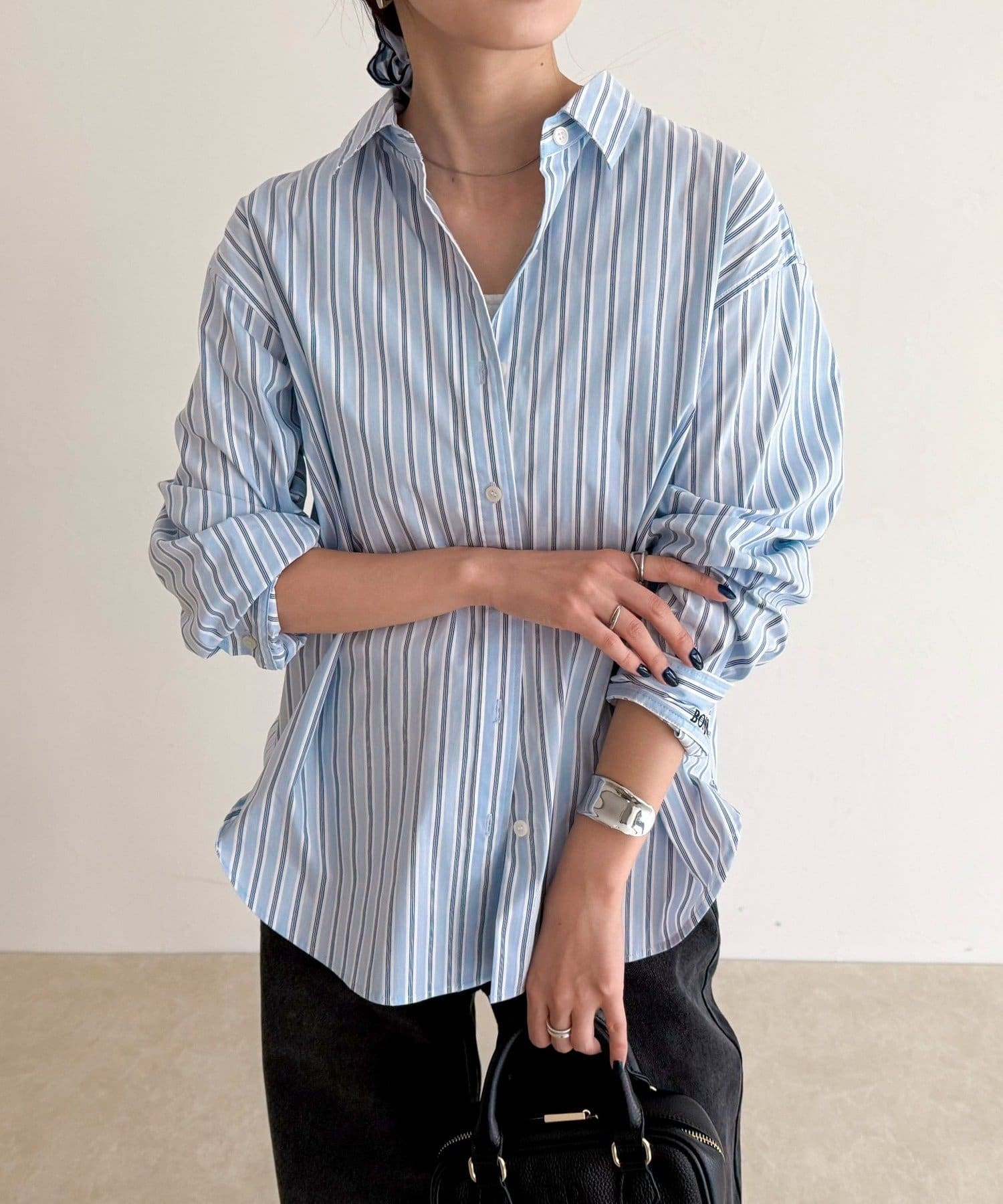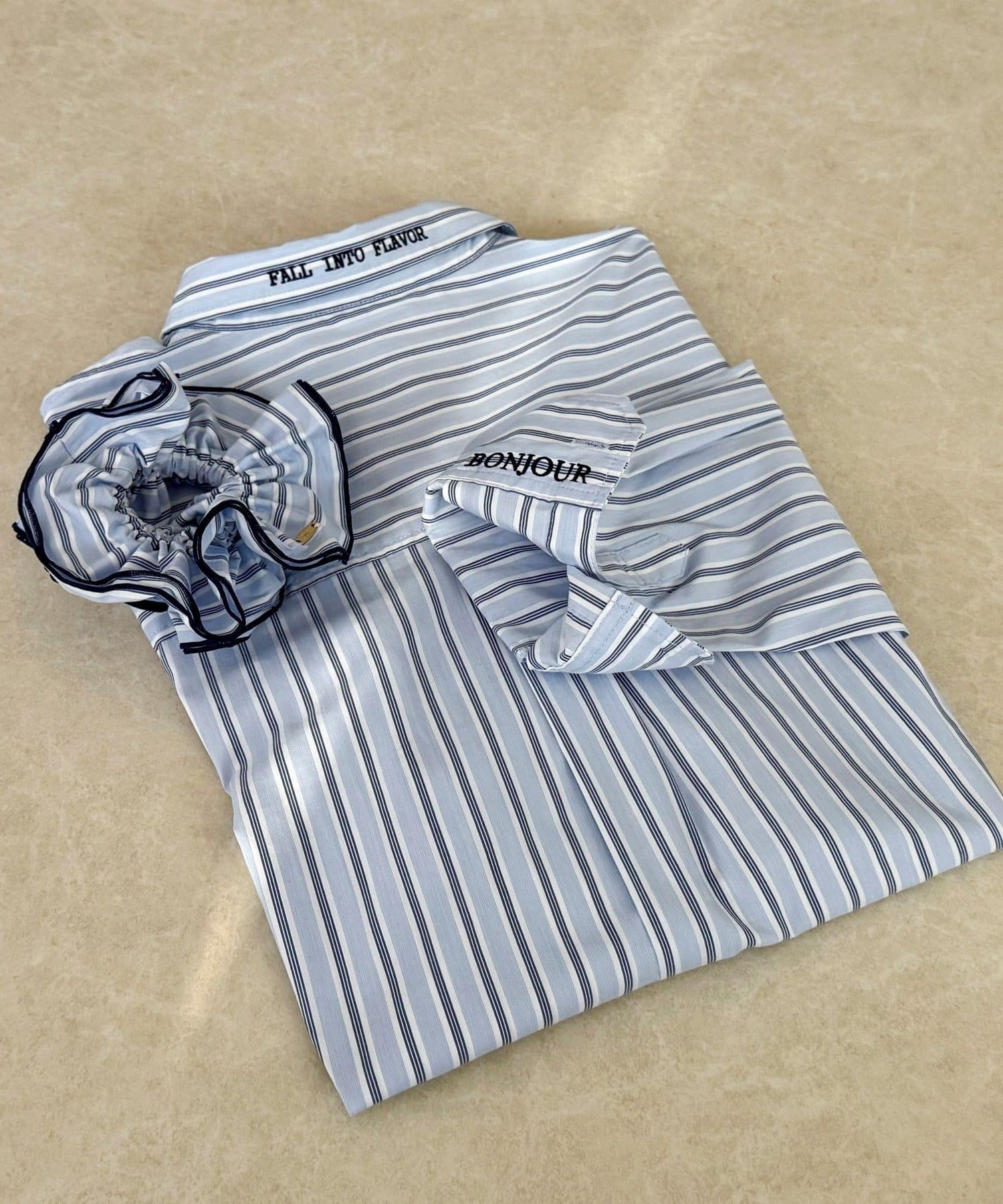 ・柔らかなブルーが目を引く、刺繍入りシャツとシュシュがセットになったWEB限定アイテム!