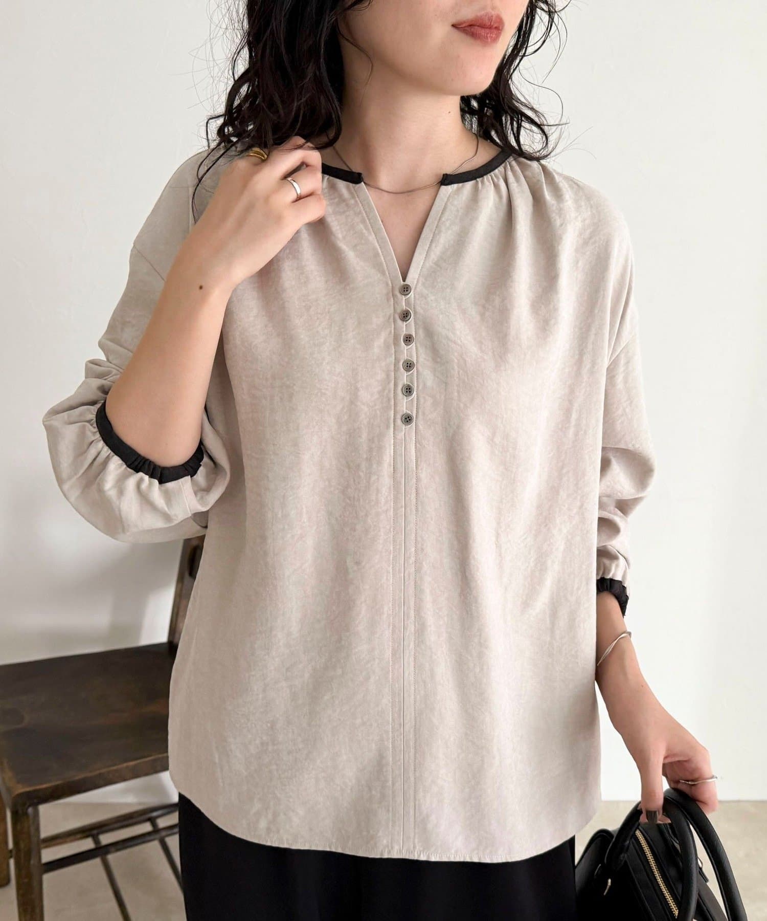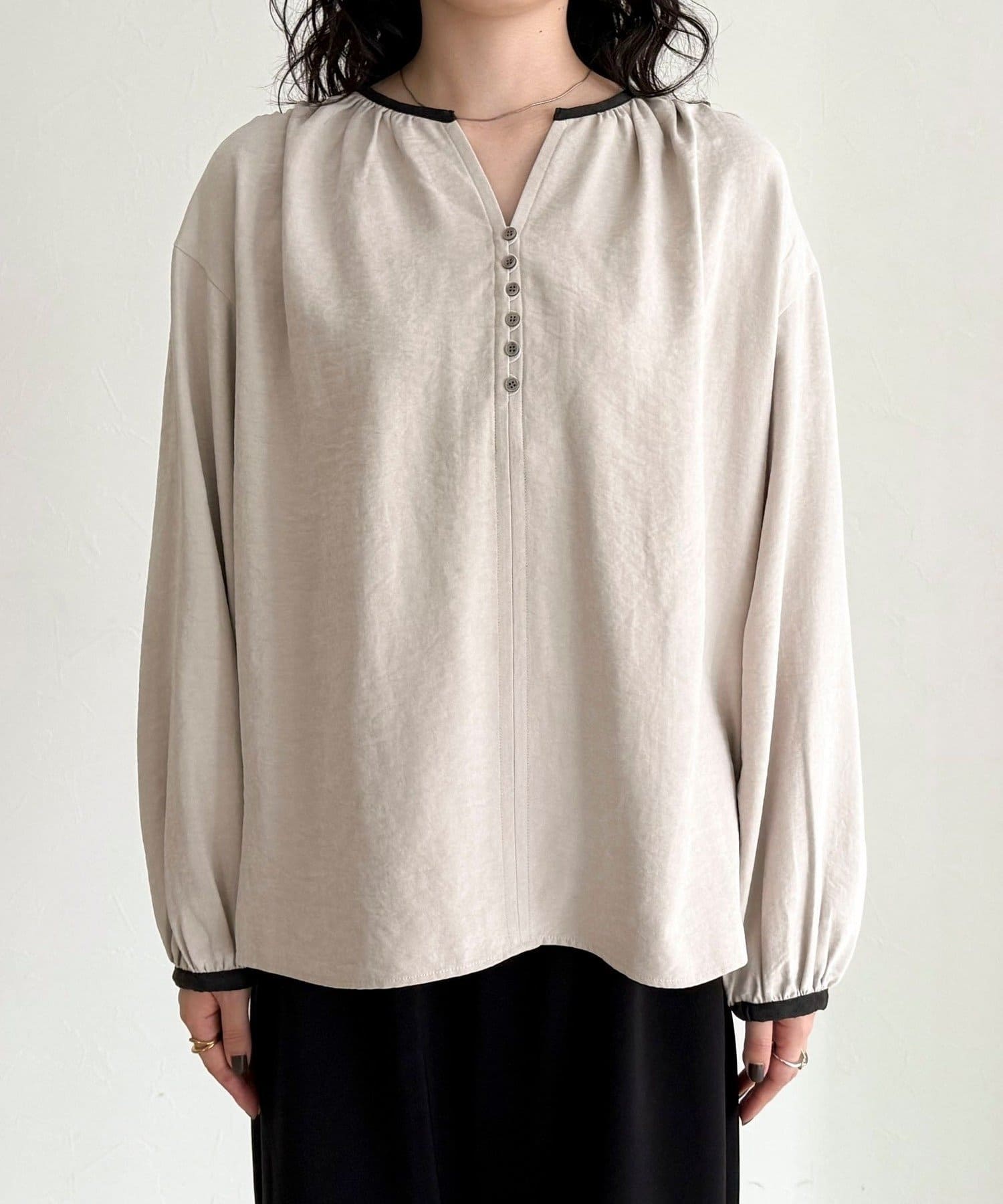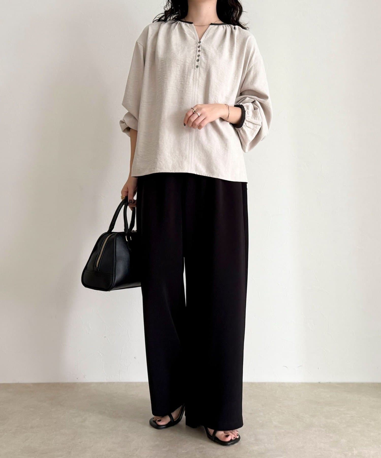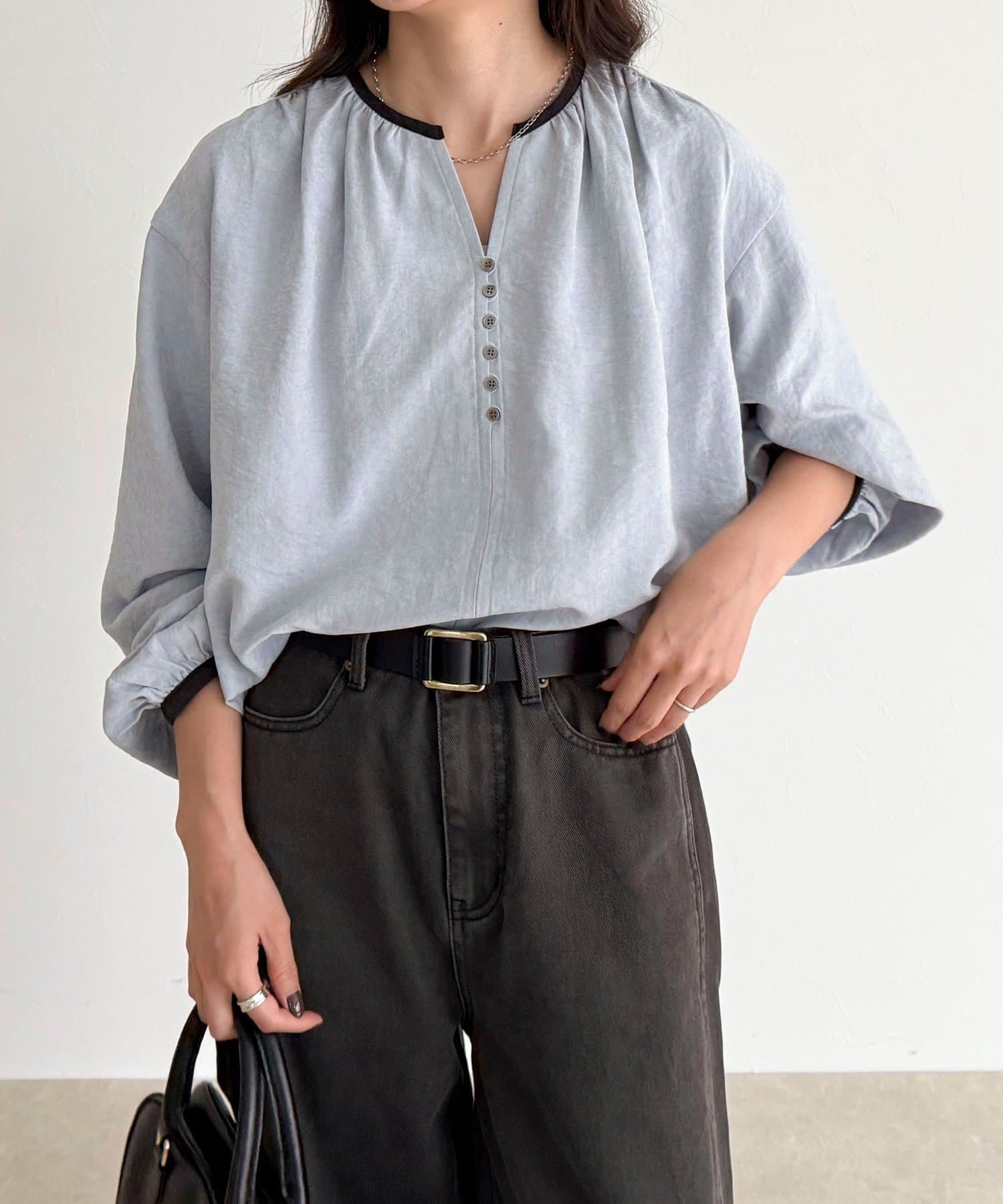 ・顔周りをすっきり見せるスキッパーネックで、タートルとのレイヤードもおすすめ