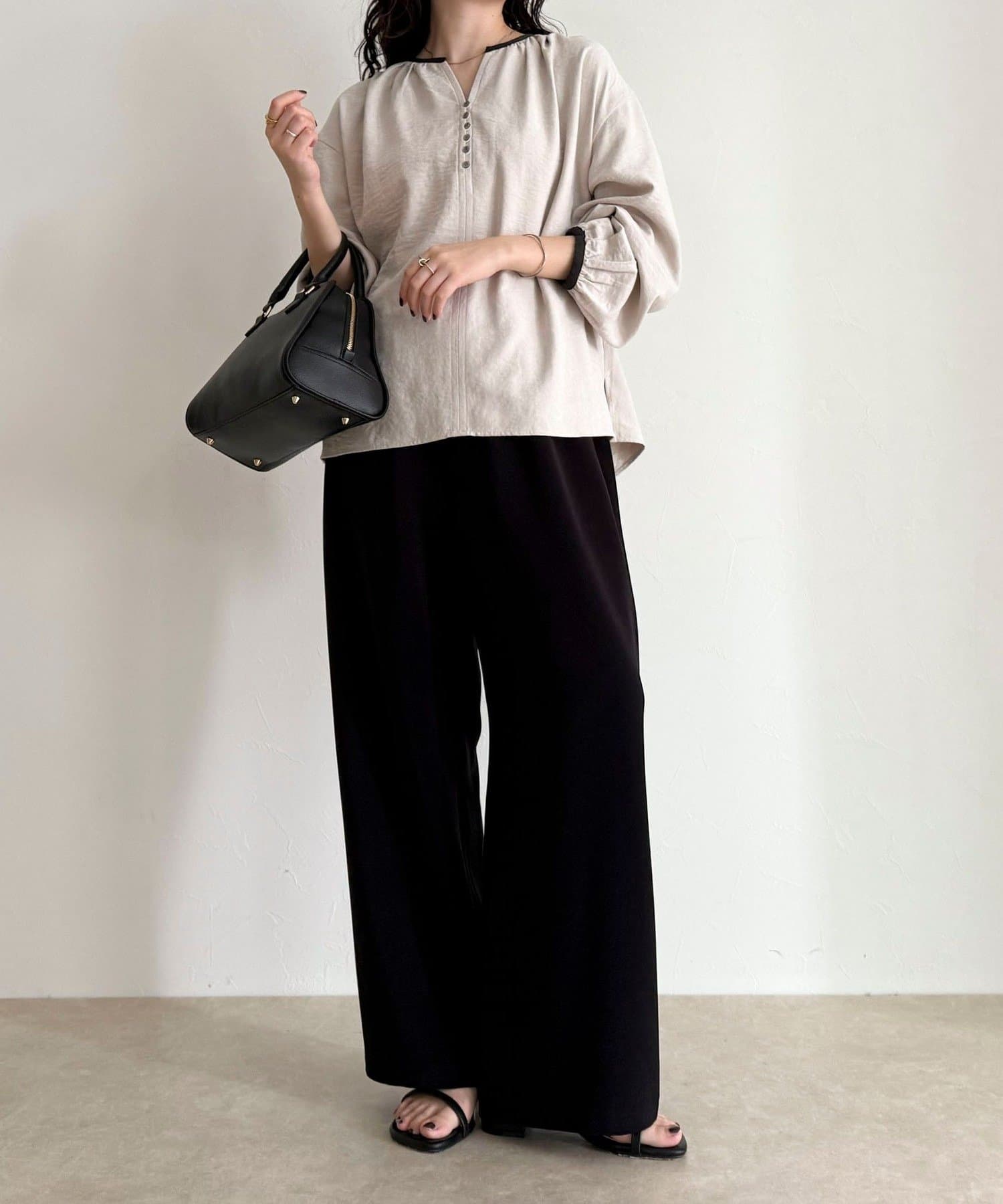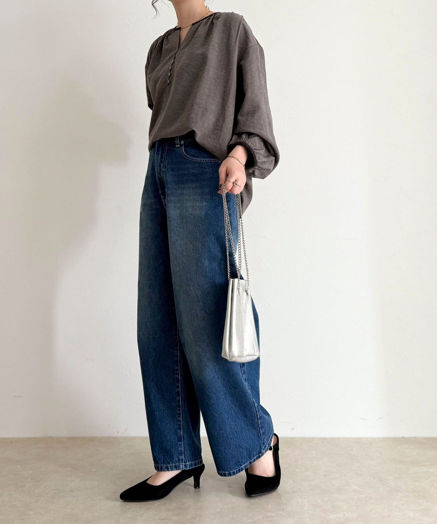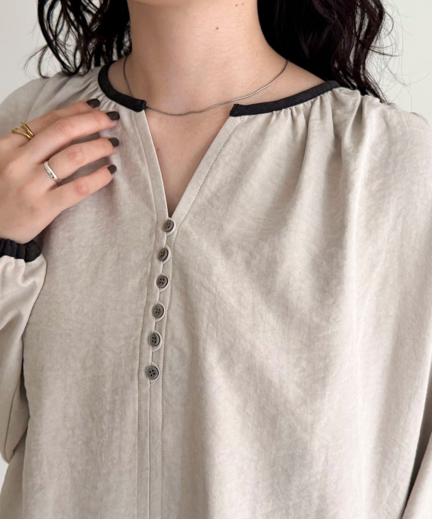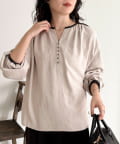 ・顔周りをすっきり見せるスキッパーネックで、タートルとのレイヤードもおすすめ
