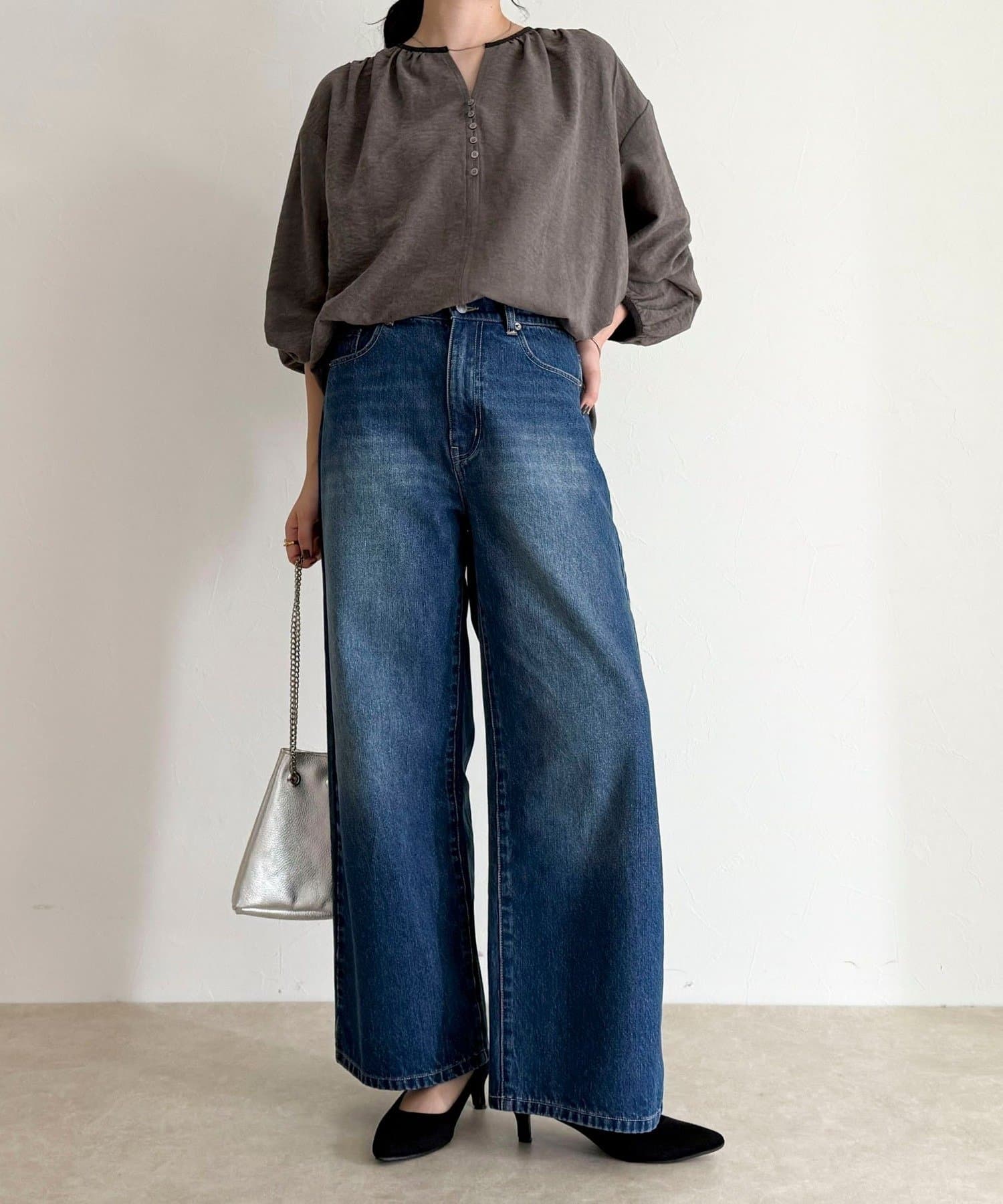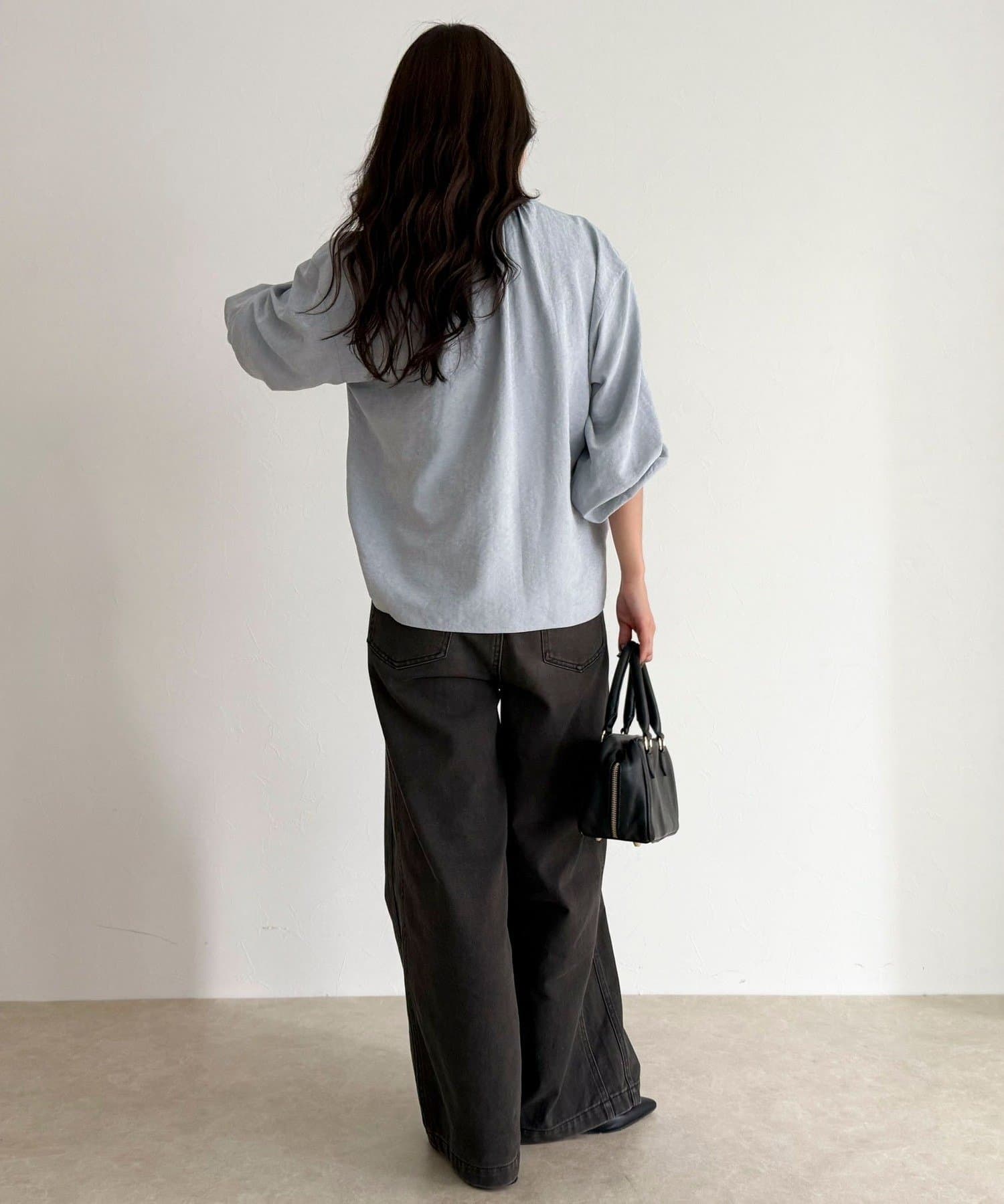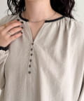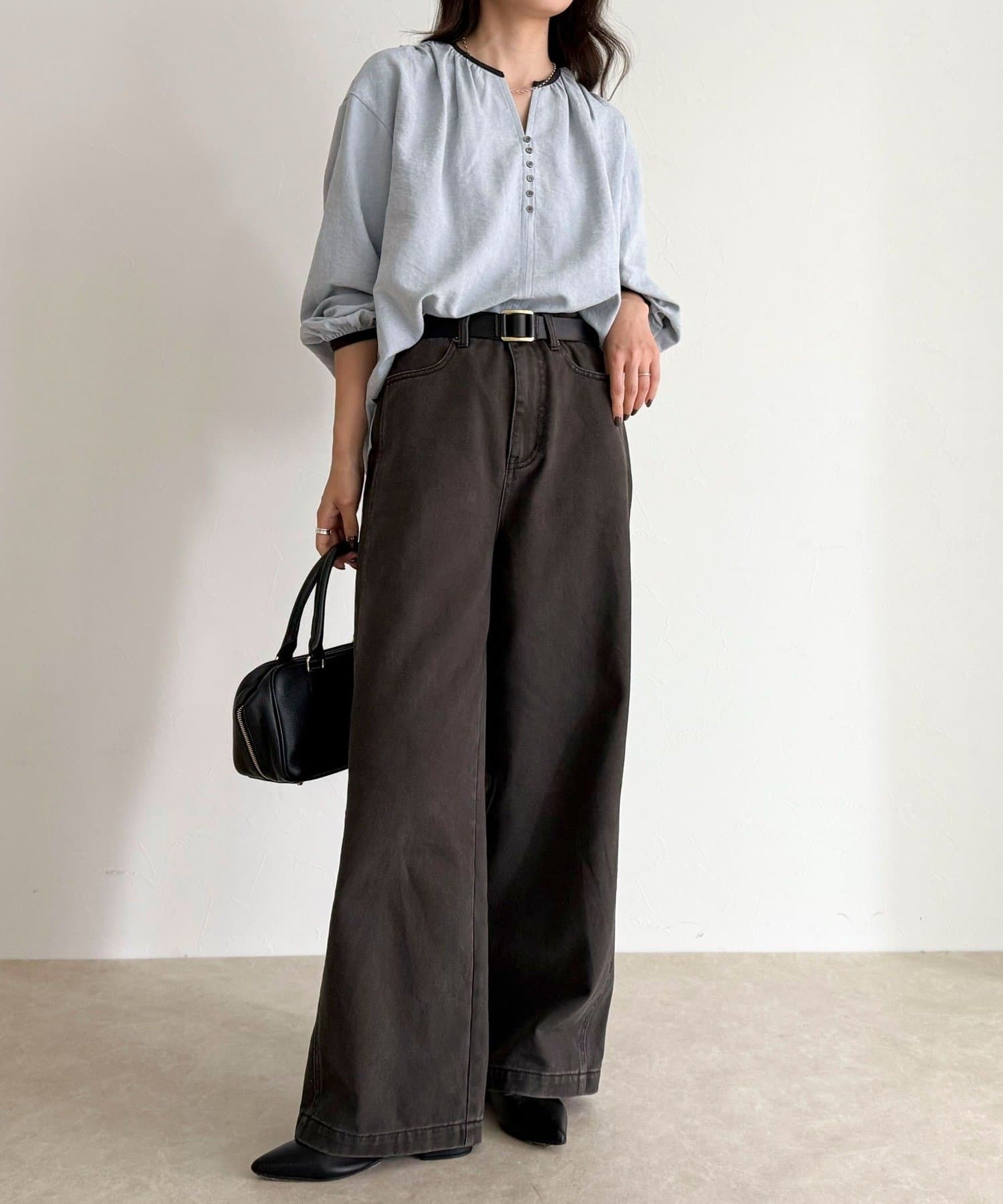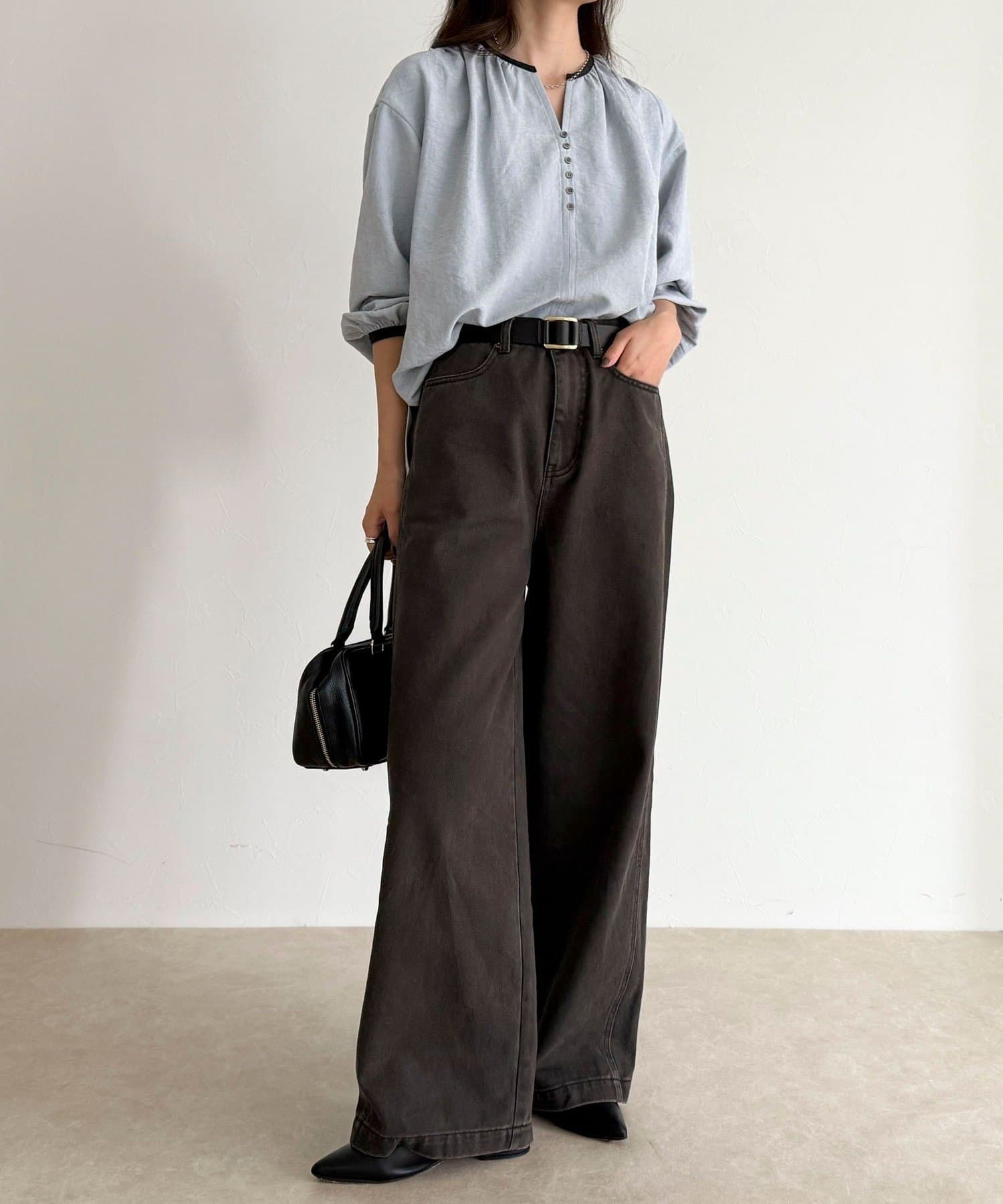 ・顔周りをすっきり見せるスキッパーネックで、タートルとのレイヤードもおすすめ