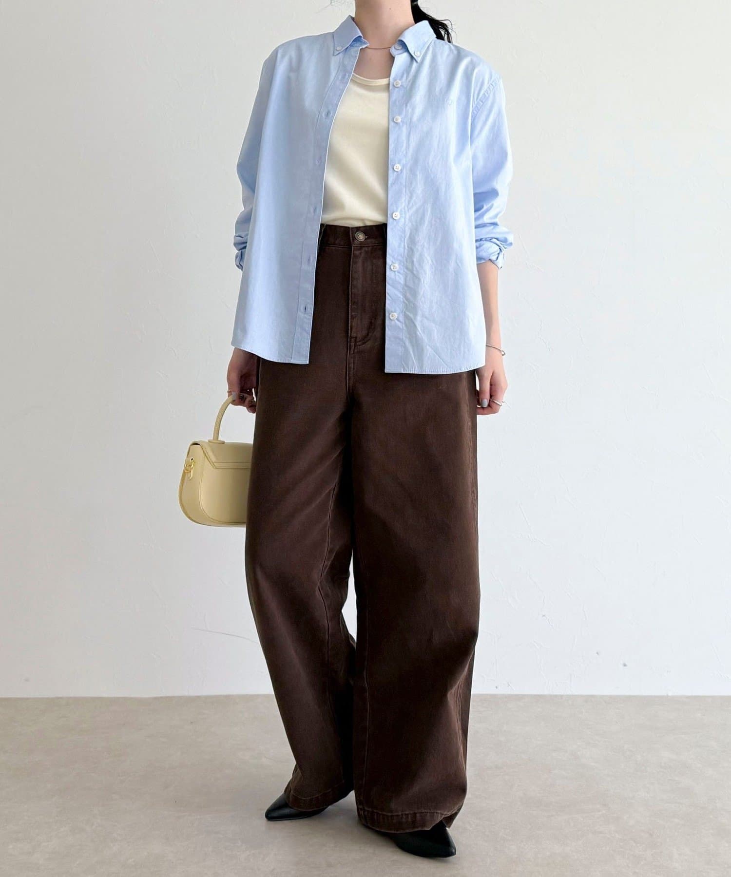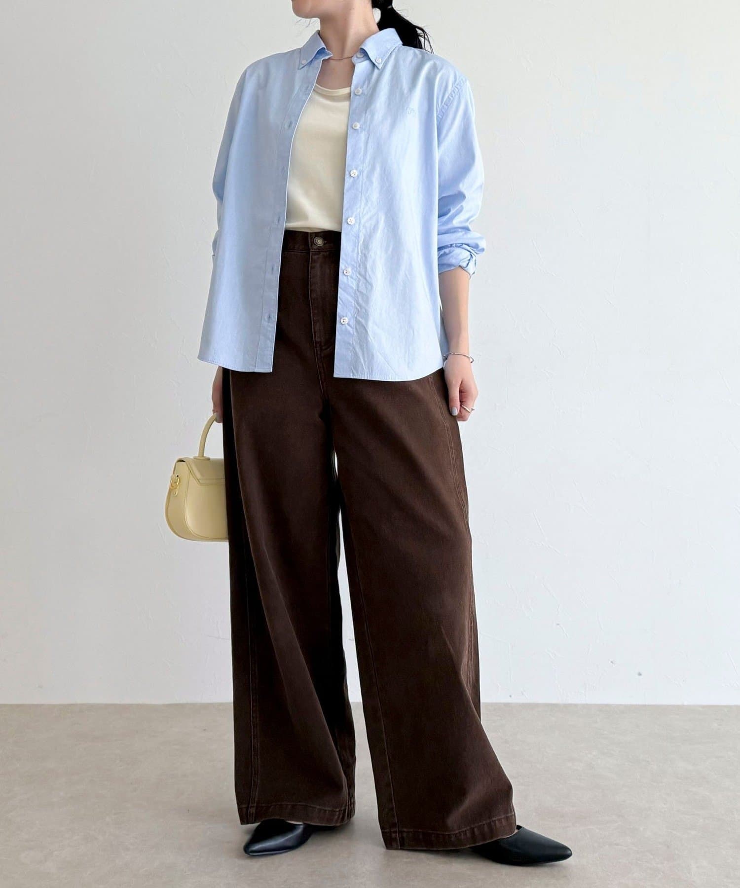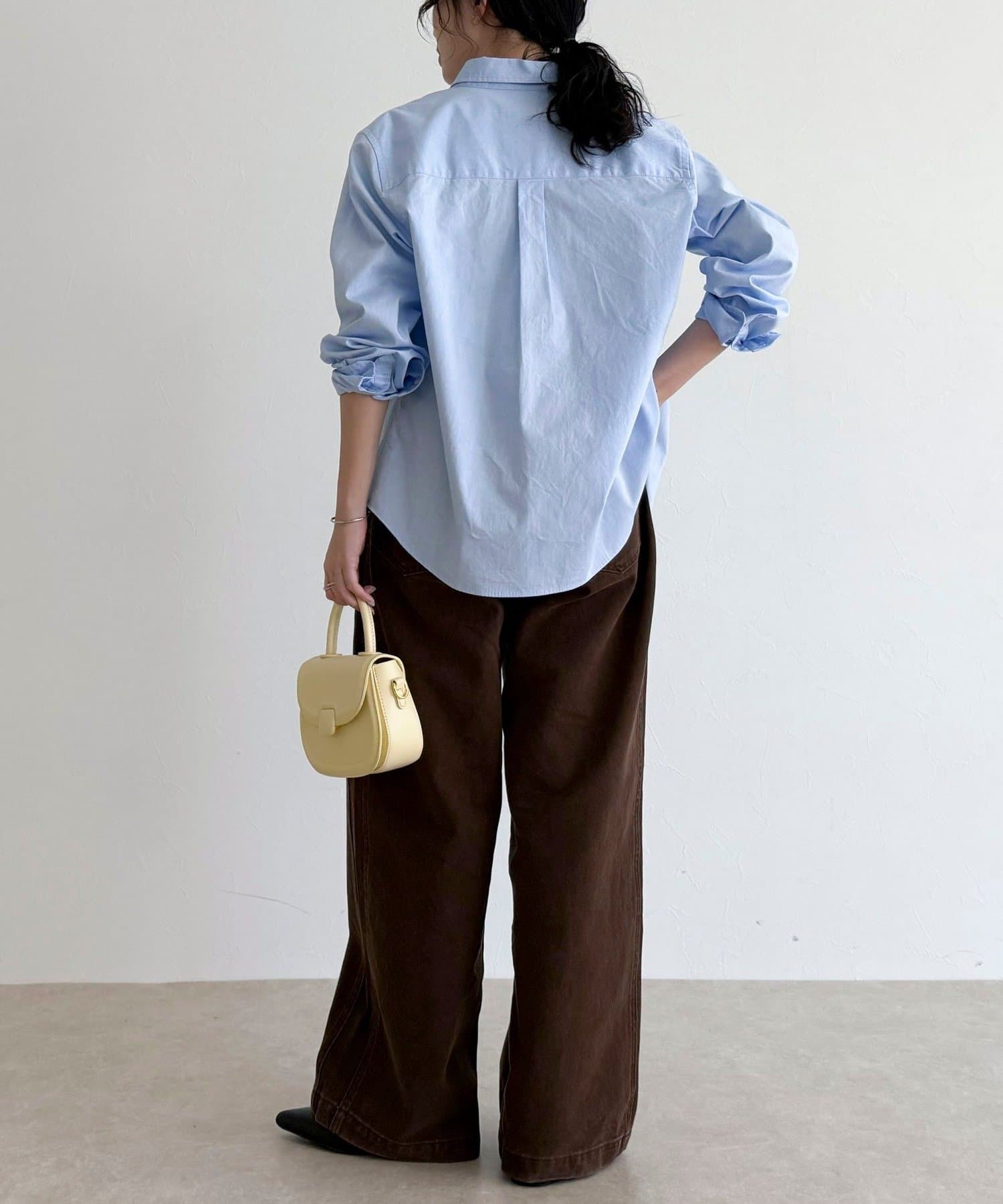 ・コンパクトなサイズ感で、1枚でもレイヤードでも着こなしやすいオックスシャツ