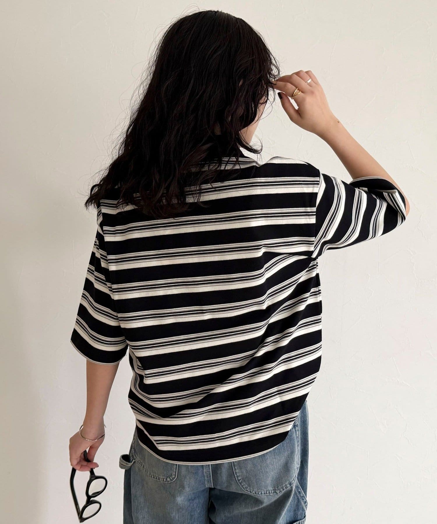 156cmスタッフ:ヒップに少しかかる丈感で、バランスよく着られました。二の腕もしっかり隠れて安心感あり◎肌ざわりも柔らかく、1枚でもシャツと重ね着でも着回ししやすいです!
