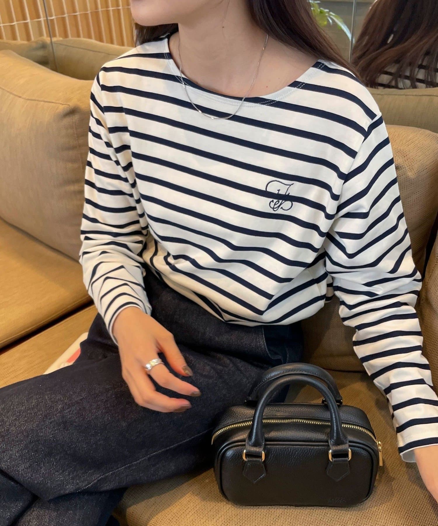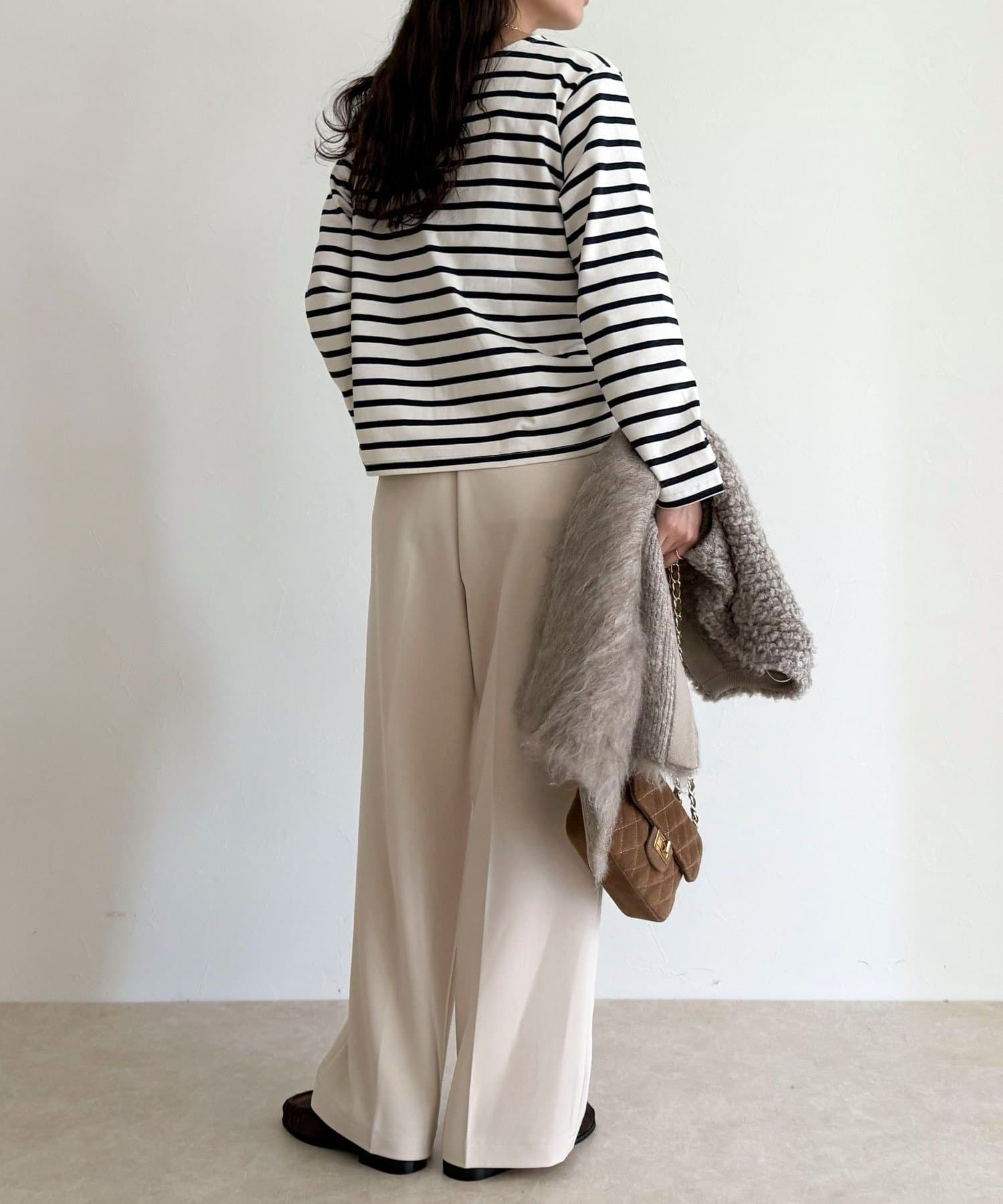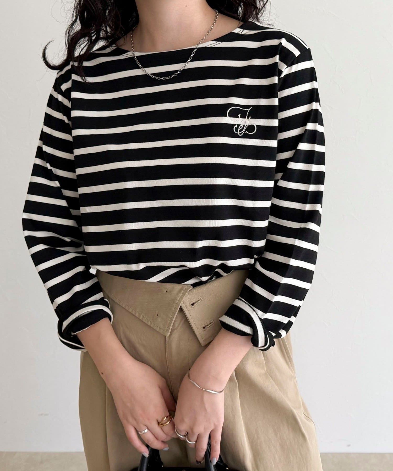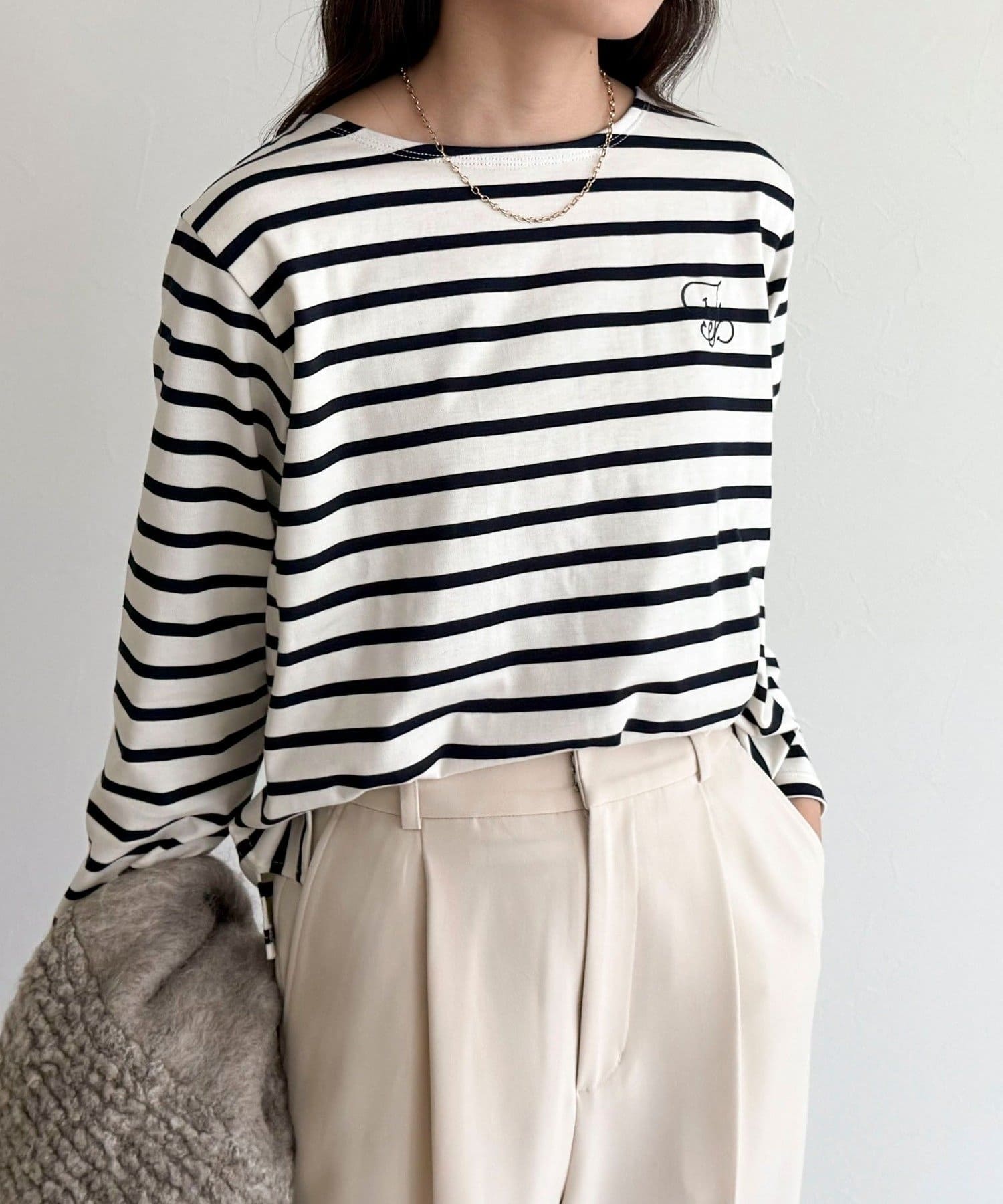 ・カジュアルになりすぎず、きれいめスタイルにもマッチするボーダーロンT