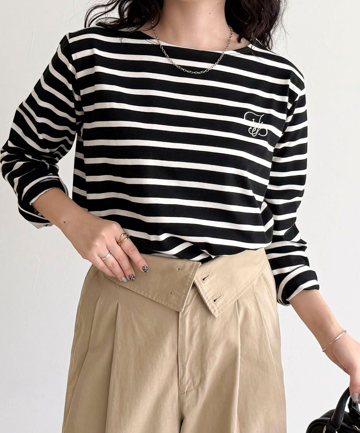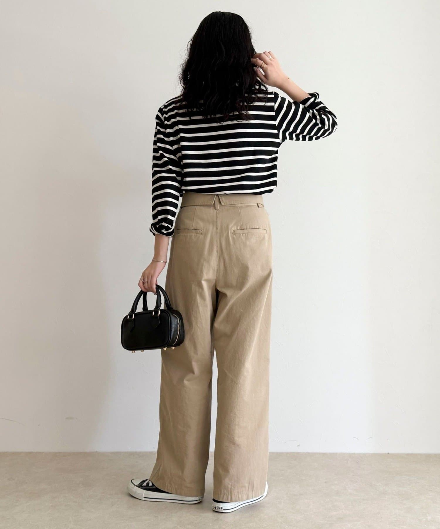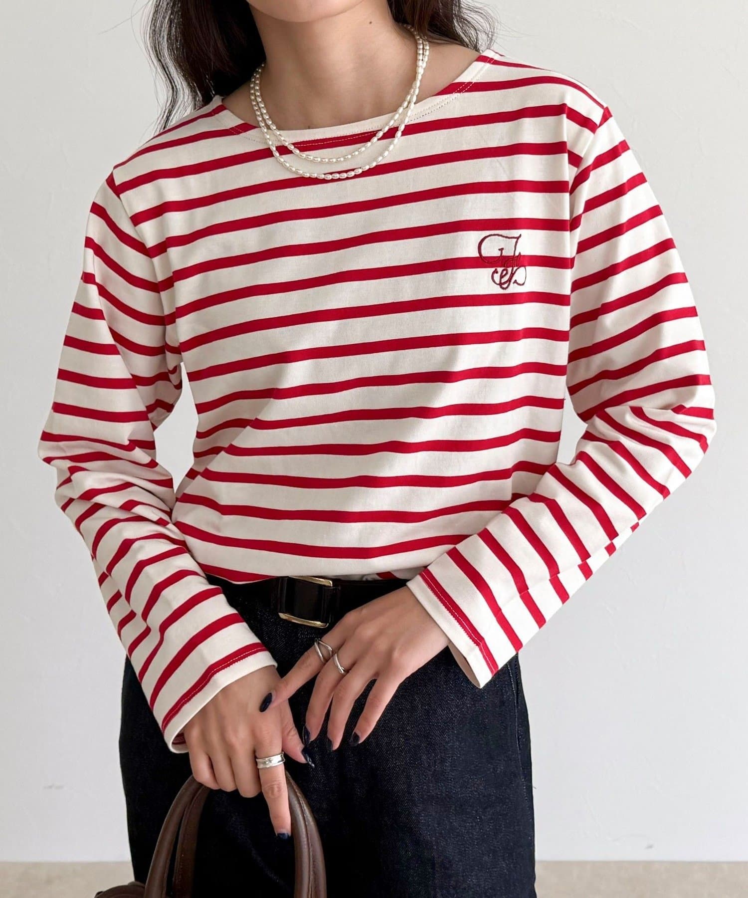 ・カジュアルになりすぎず、きれいめスタイルにもマッチするボーダーロンT