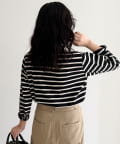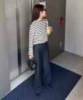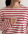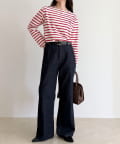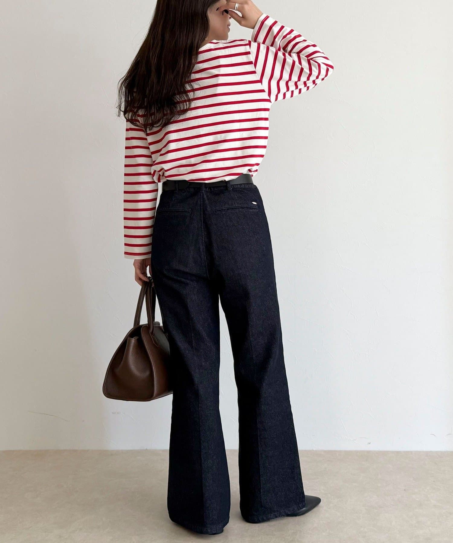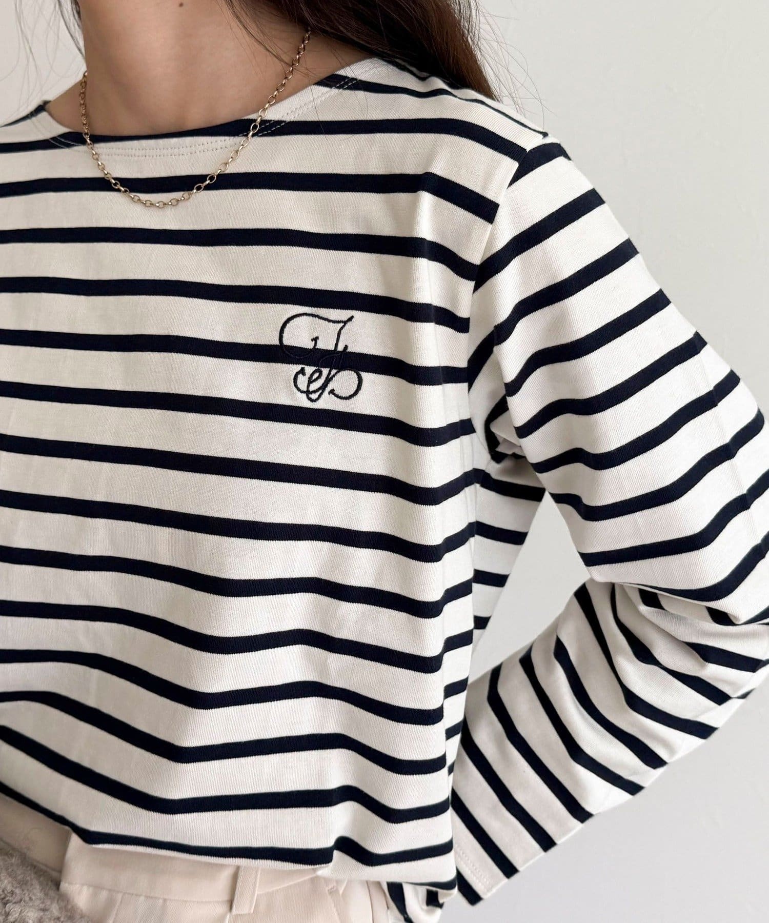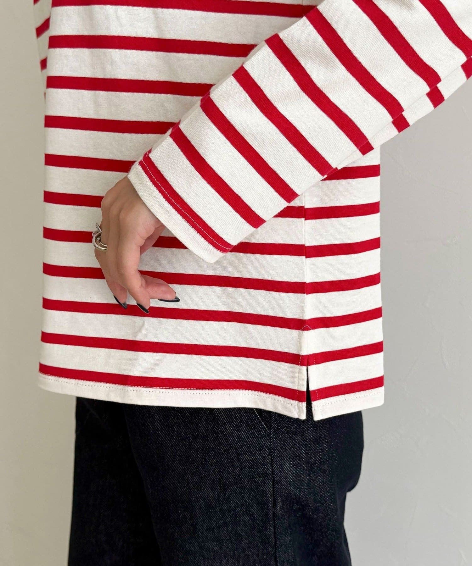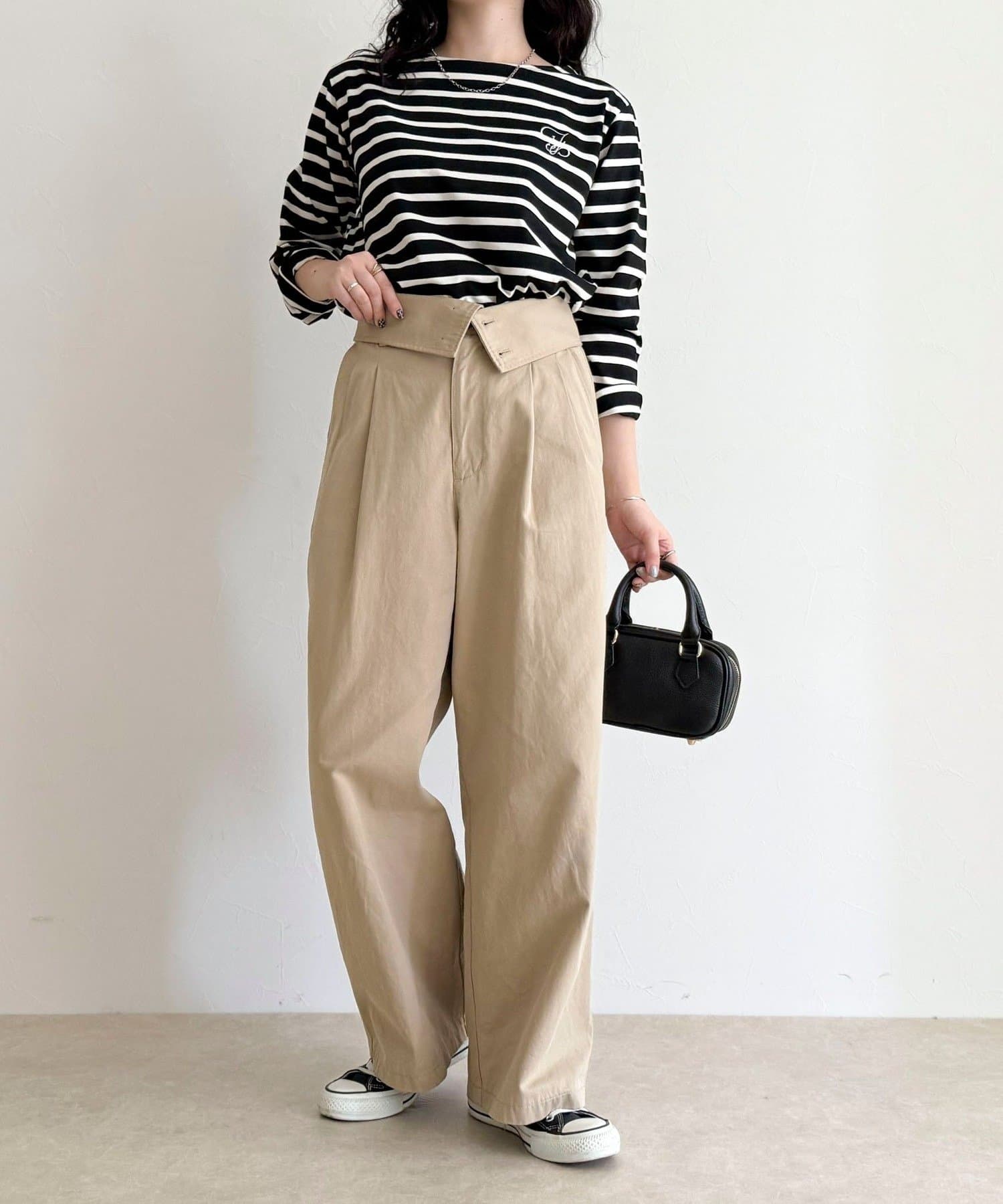 ・カジュアルになりすぎず、きれいめスタイルにもマッチするボーダーロンT