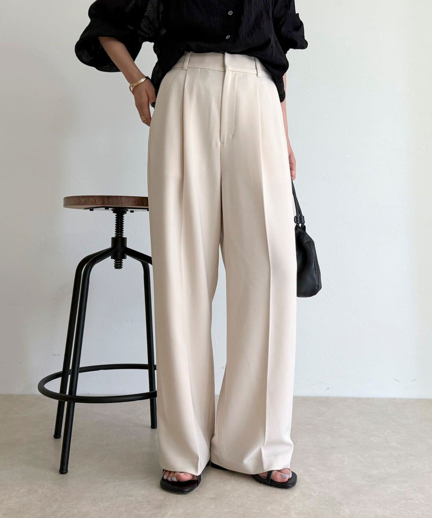 ・タック入りのシルエットが脚長効果を発揮し、スタイルアップを叶えます
