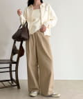 ・ 身長156cm/38サイズ着用:カーディガンは程よくコンパクトで、パンツやスカートに合わせやすいサイズ感!バブーシュカは大判なので、腰や肩に巻いてもオシャレに決まり、アレンジが楽しいです◎