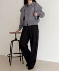 *この製品は、生地の特性上引っかかると糸が飛び出しやすい傾向があります。着用時にはベルトやバック、周囲の壁など表面の粗いものとの摩擦や引っかかりにご注意ください。