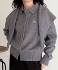 ・程良くコンパクトめの衿付きカーディガンと、同素材で編地ちがいのバブーシュカのセットアイテム
