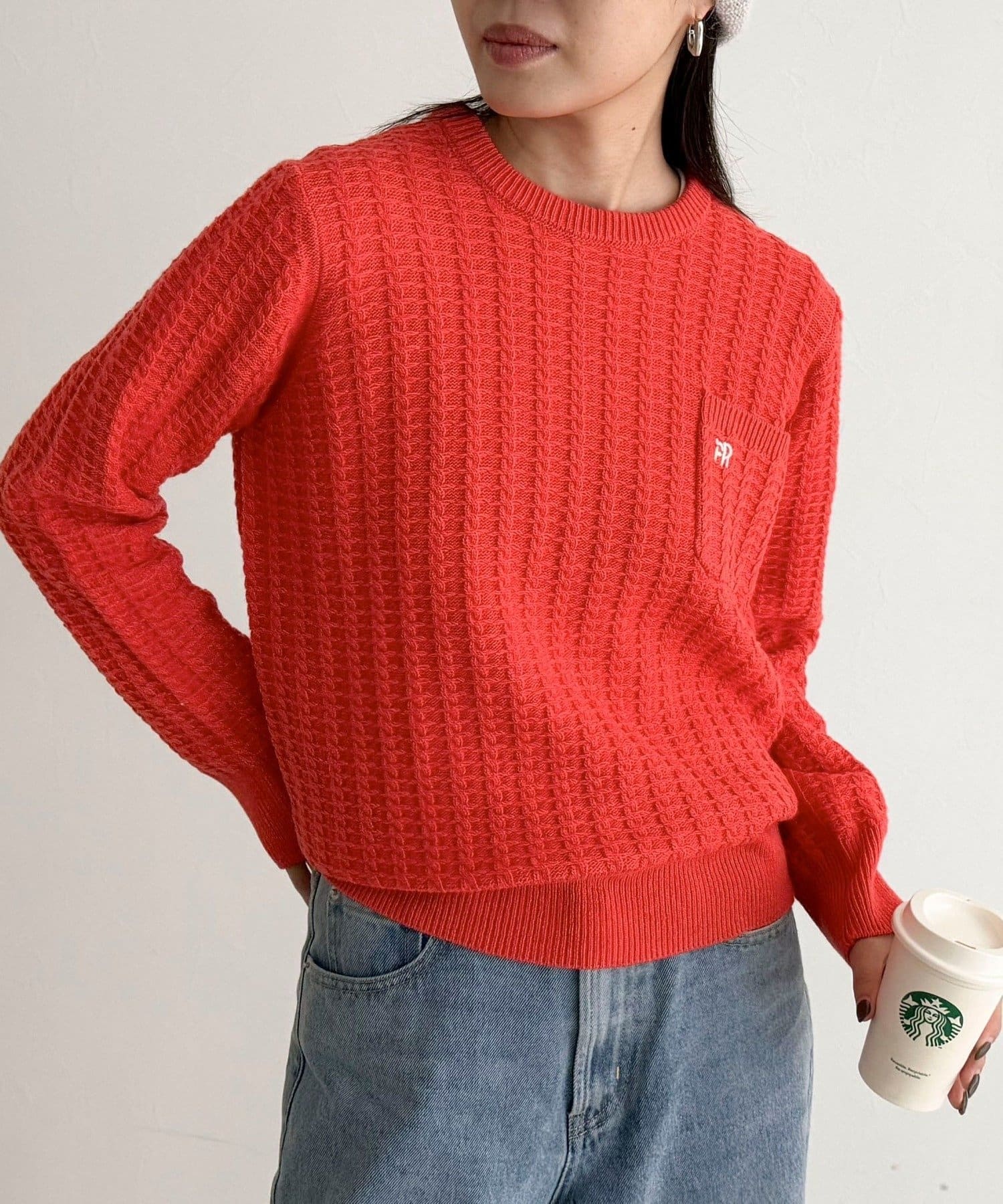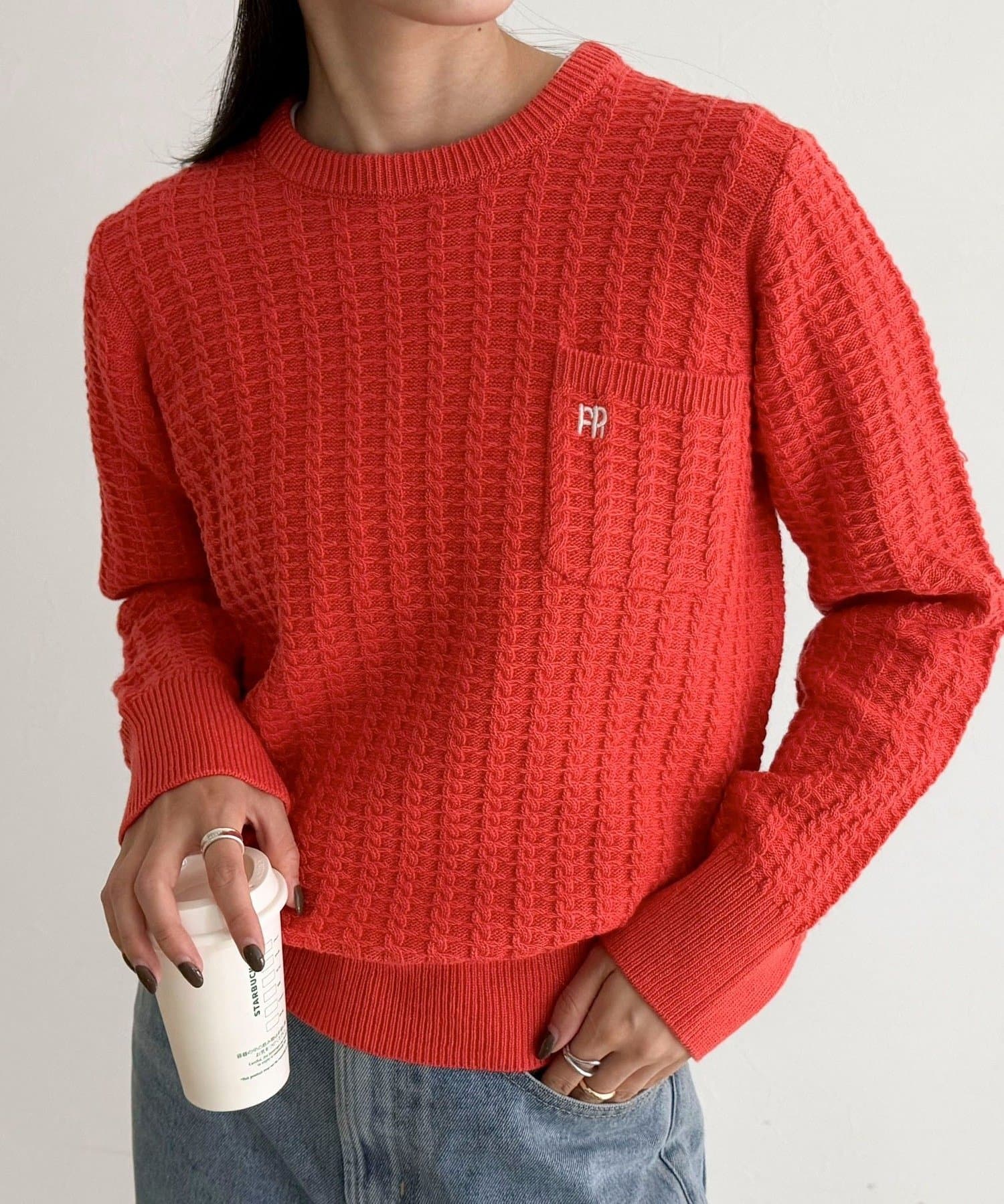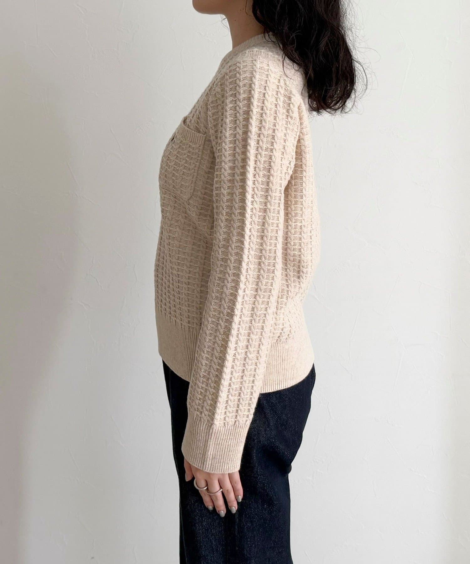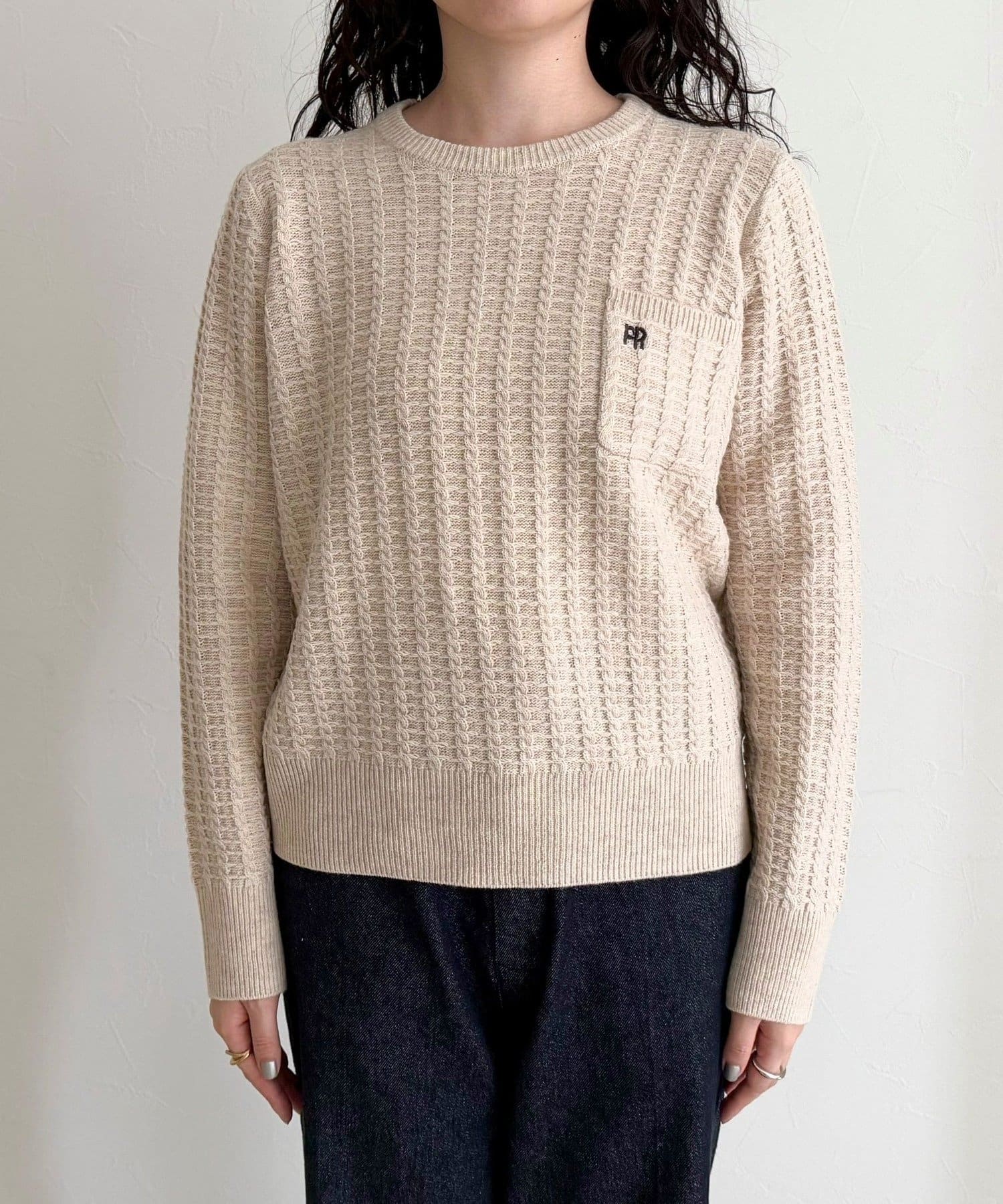 TOP > FREDY & GLOSTER > レディース > トップス > ニット/セーター > FR刺繍ケーブル柄ちびポケニットプルオーバー