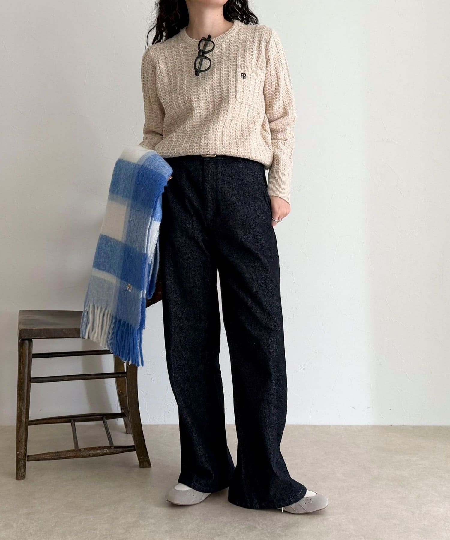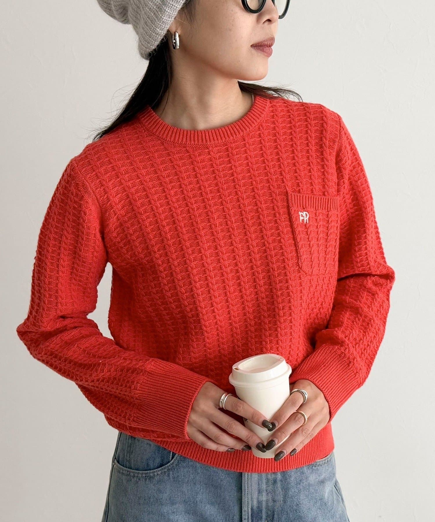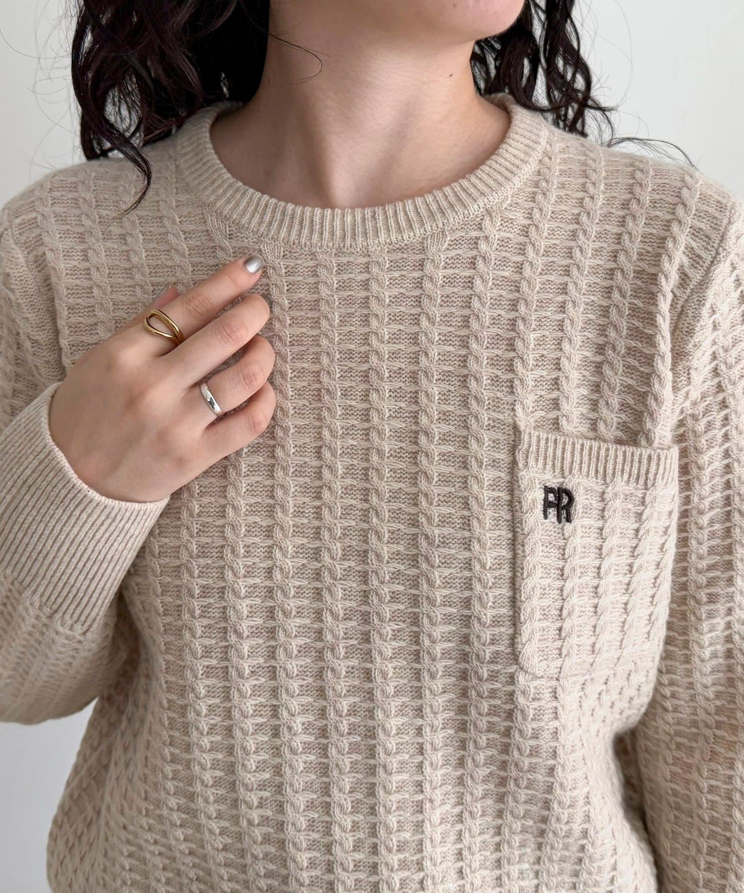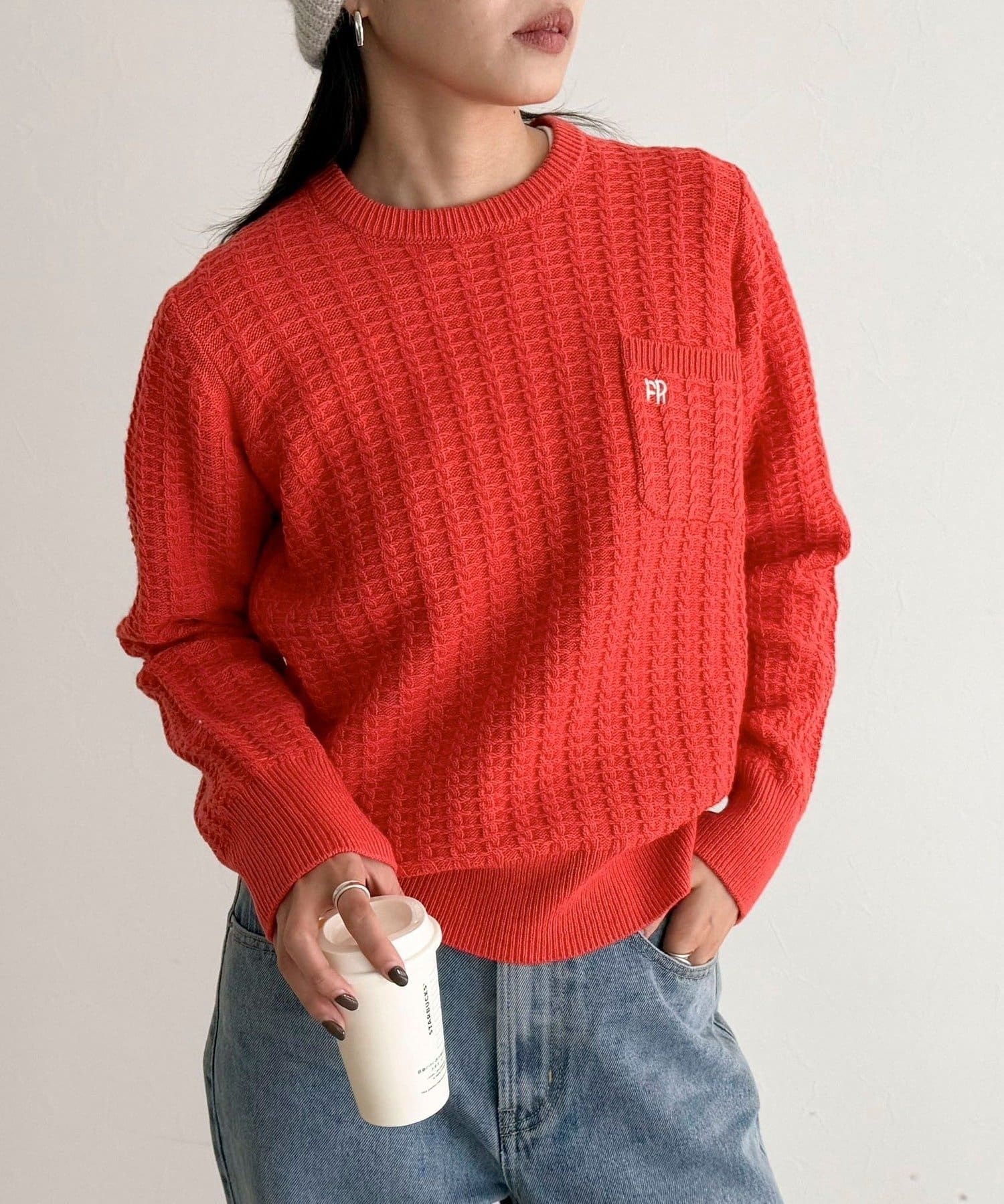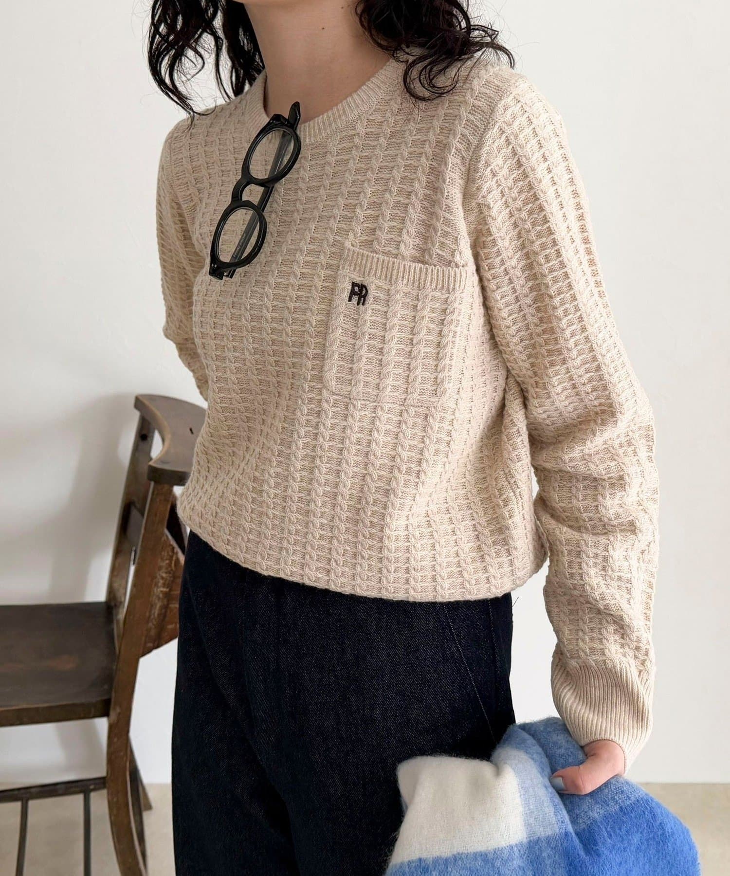 TOP > FREDY & GLOSTER > レディース > トップス > ニット/セーター > FR刺繍ケーブル柄ちびポケニットプルオーバー