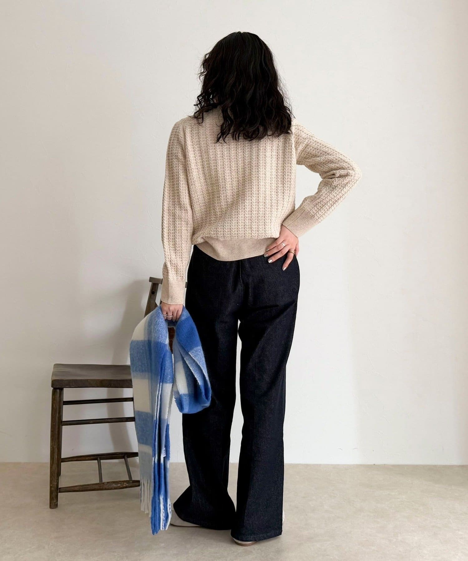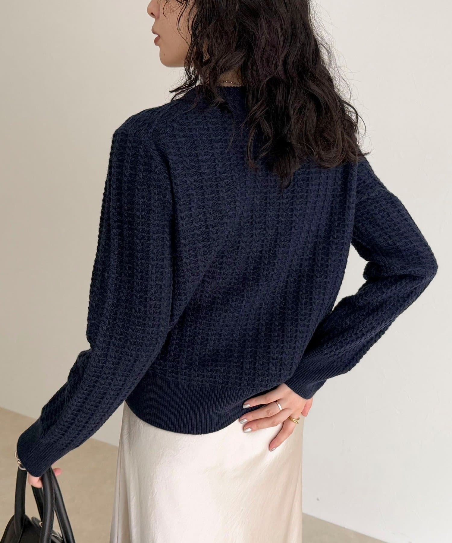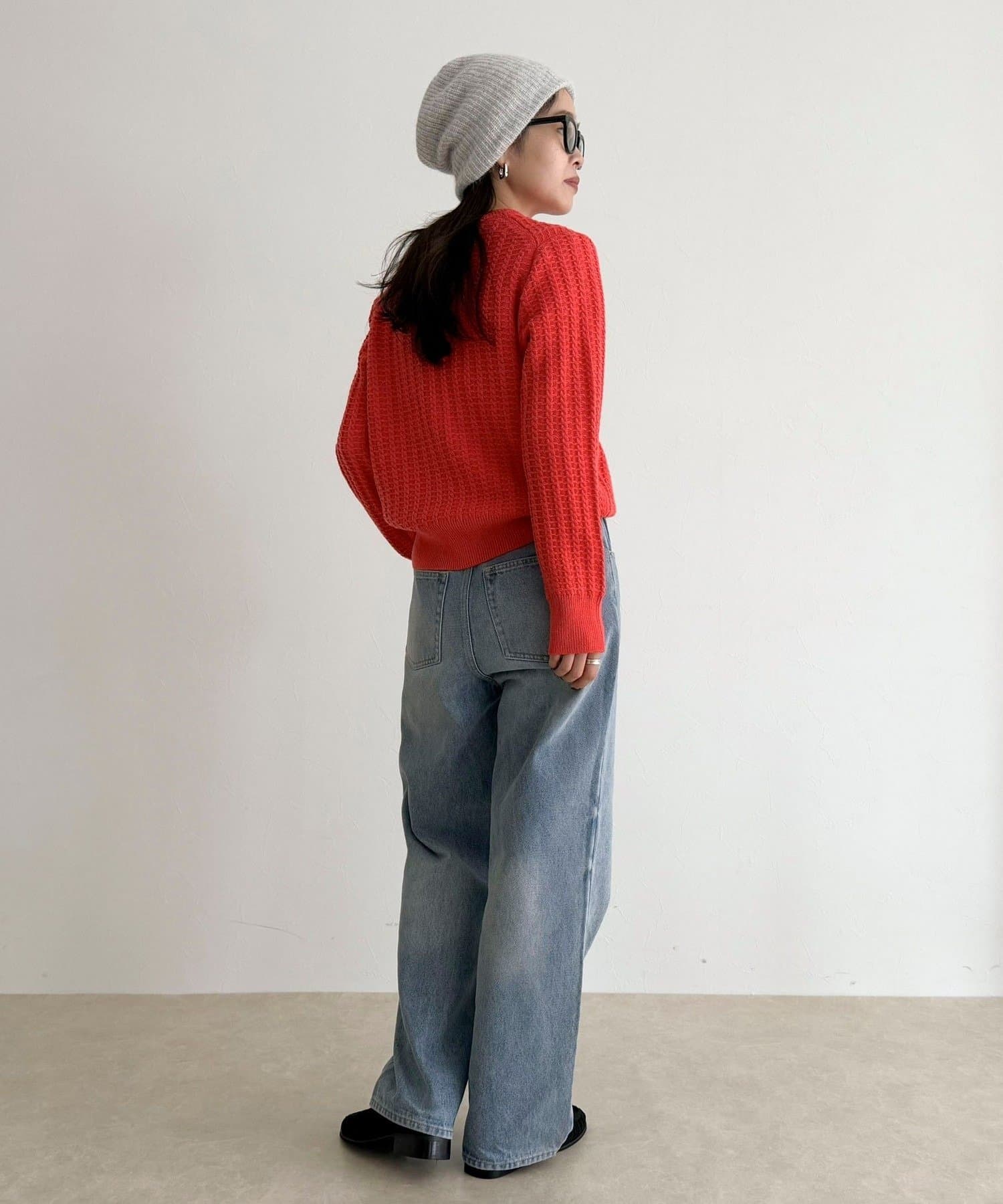 ・立体感のあるケーブル柄が冬コーデに温かみと表情をプラス