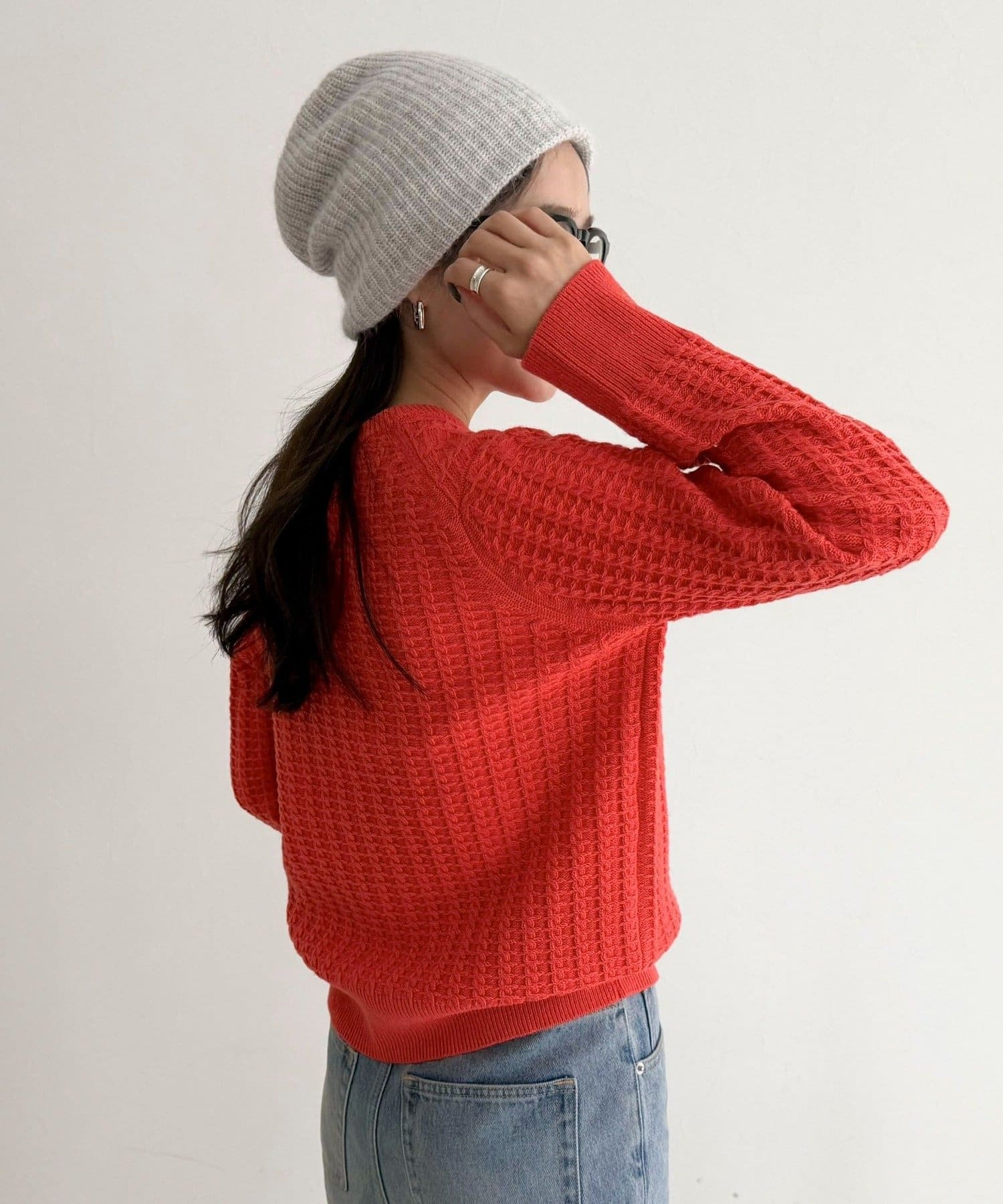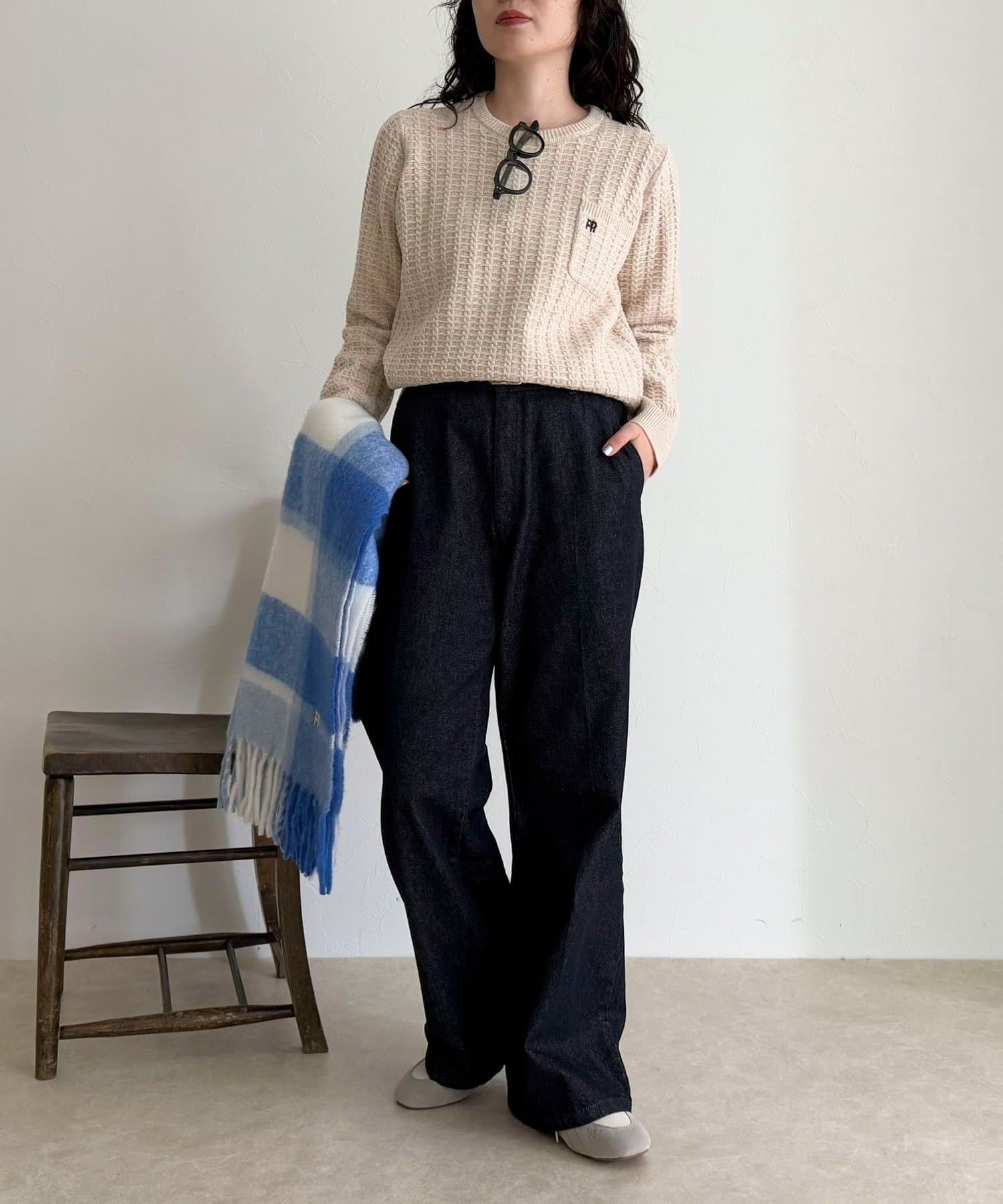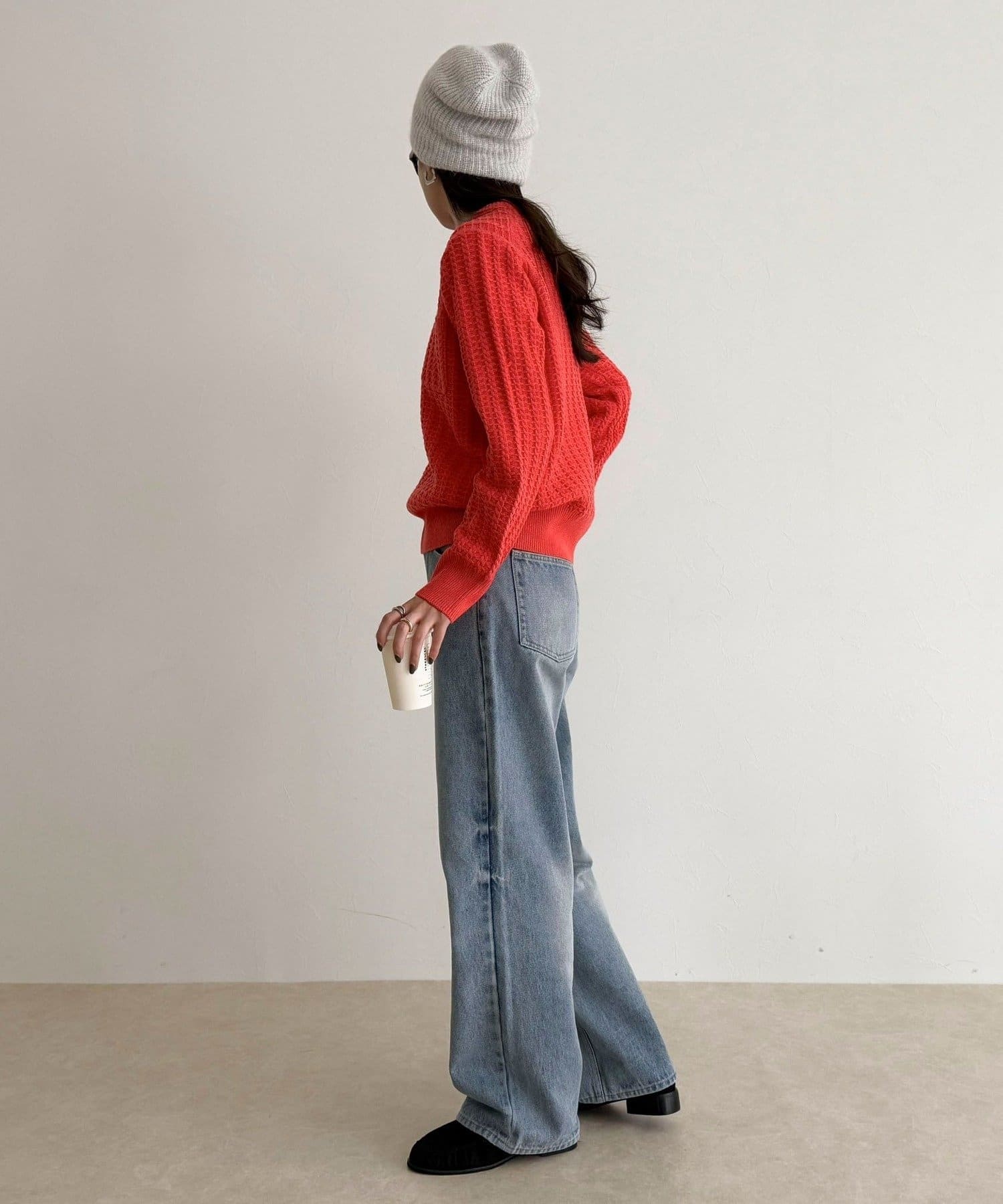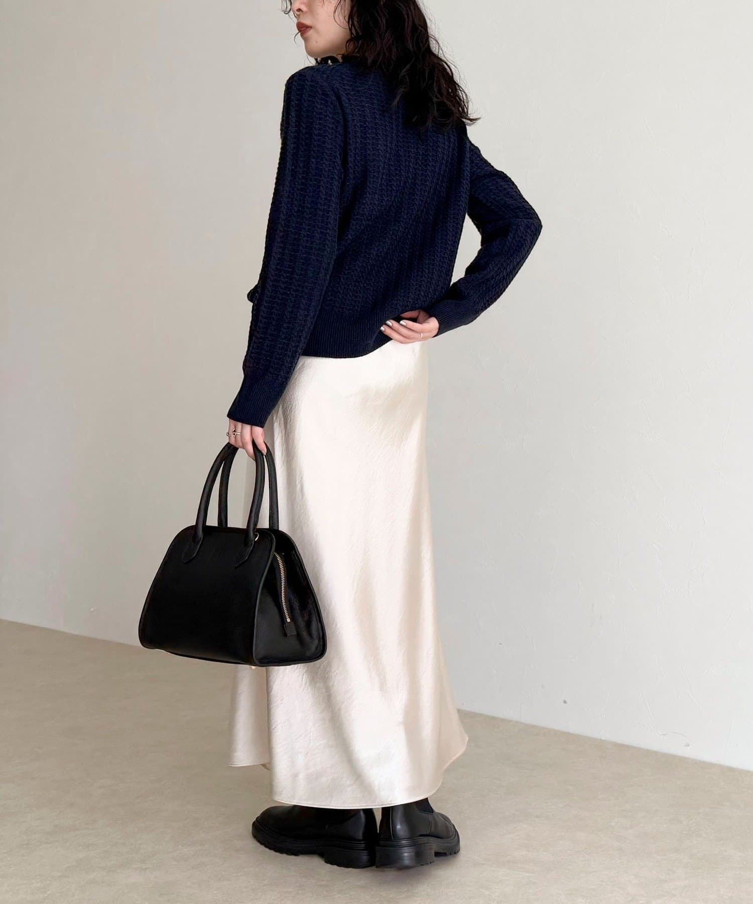 ・立体感のあるケーブル柄が冬コーデに温かみと表情をプラス