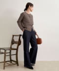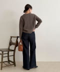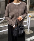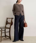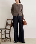 156cmスタッフ(38サイズ着用):ヒップに軽くかかる丈感でバランスよく着られました。前を閉じてプルオーバー風にも、羽織りとしても使えるので着回し力が高いです!