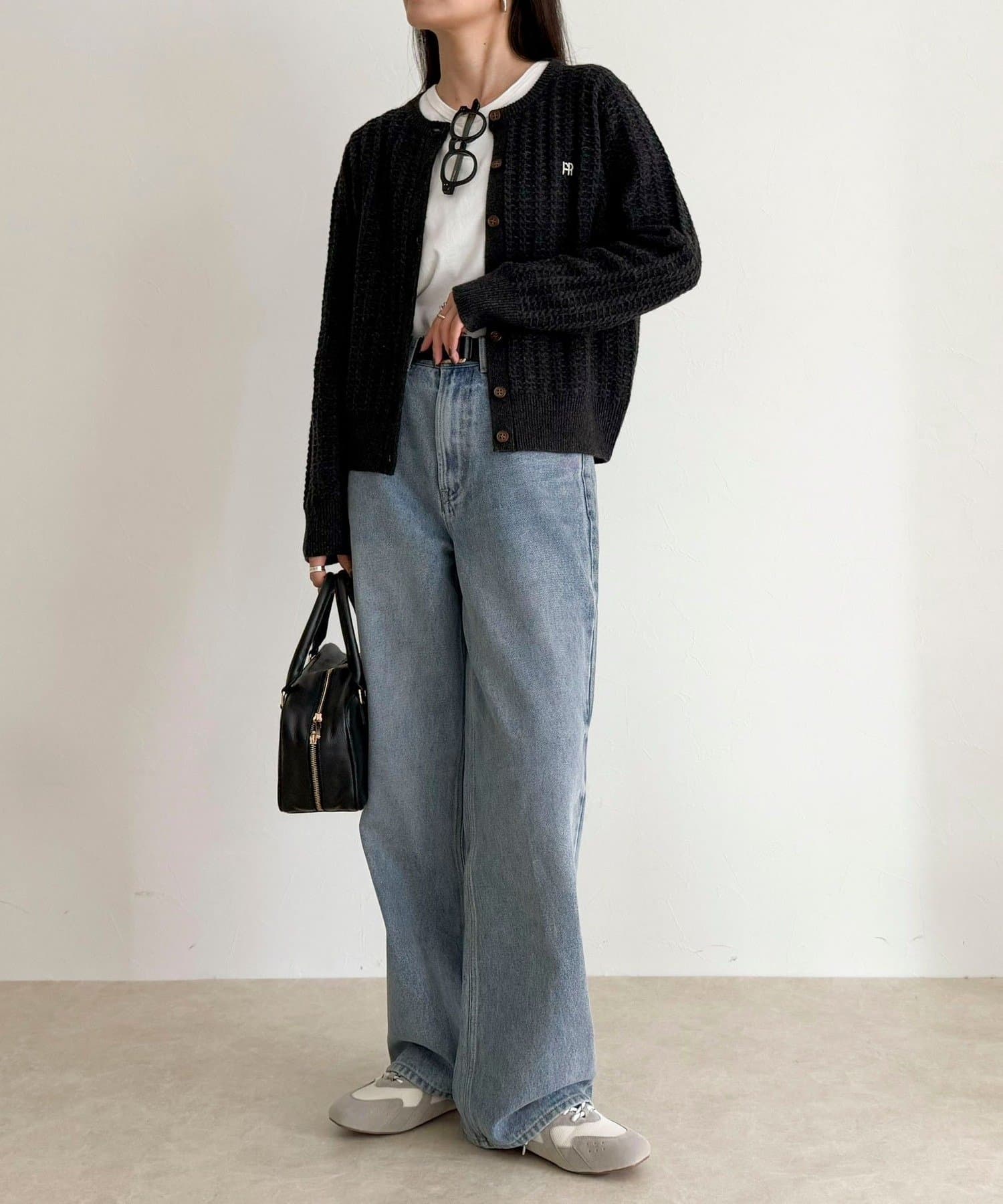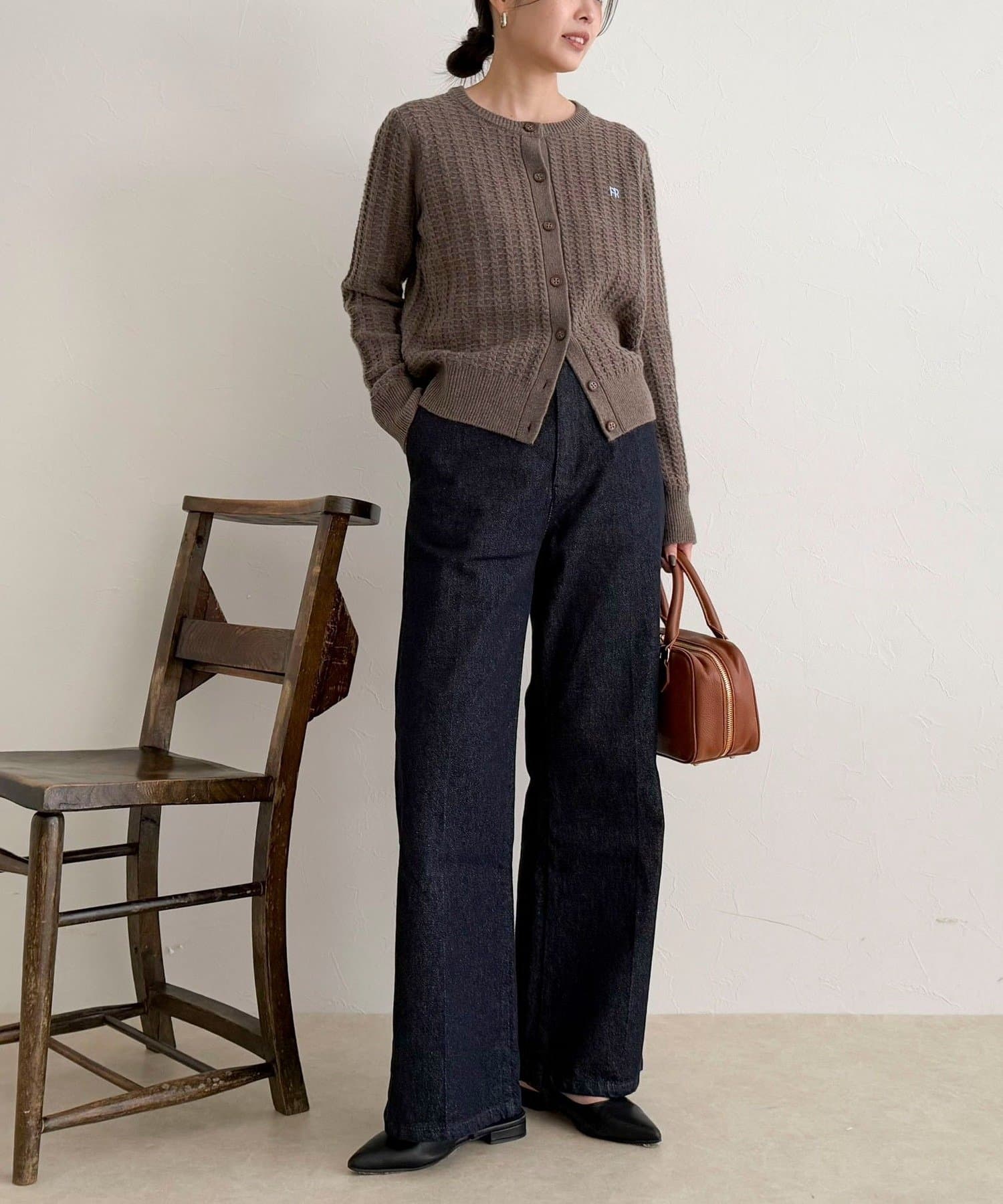 • FREDY & GLOSTER(フレディ アンド グロスター) FR刺繍ケーブル柄ニットカーディガン