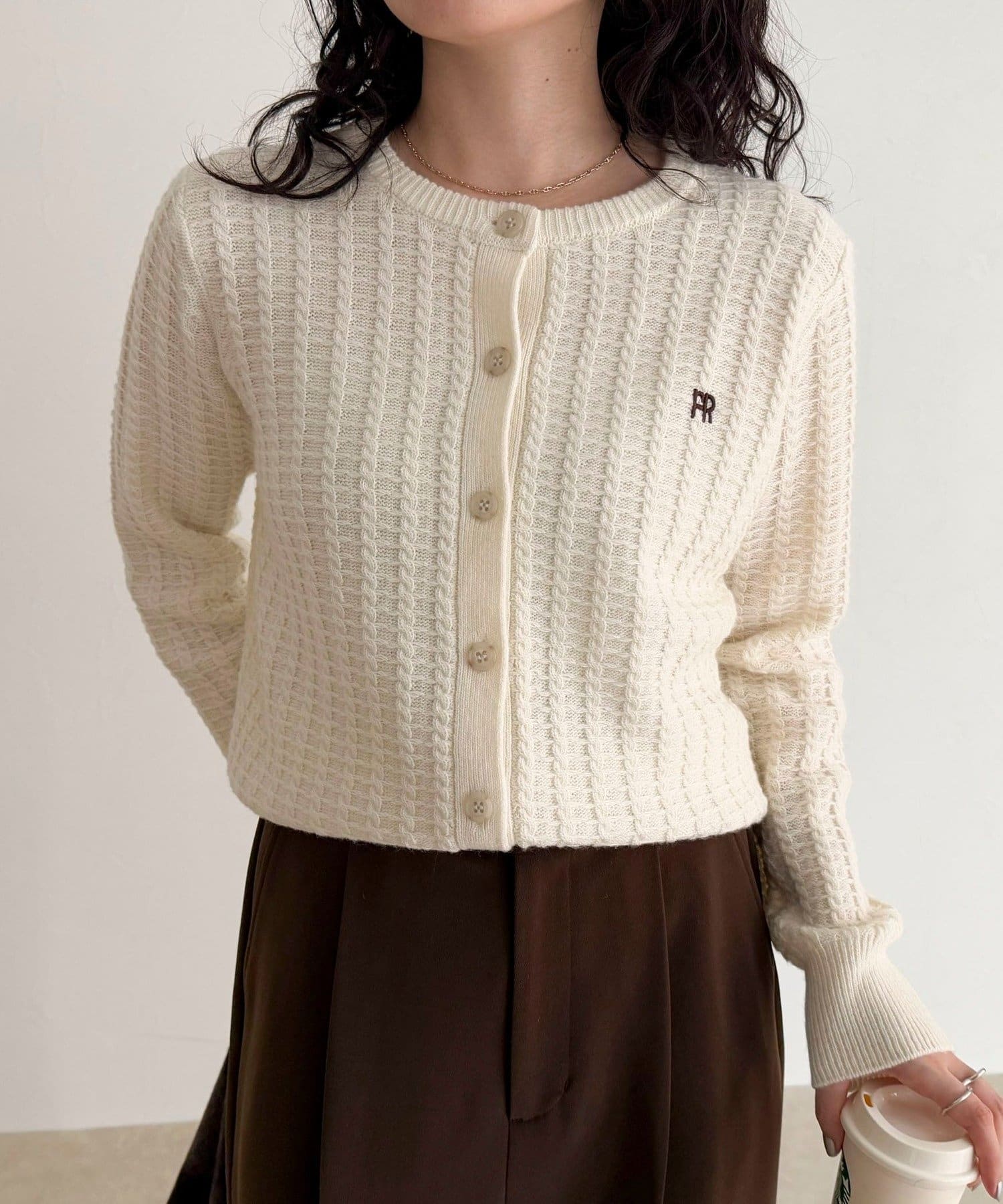 TOP > FREDY & GLOSTER > レディース > トップス > カーディガン/ボレロ > FR刺繍ケーブル柄ニットカーディガン
