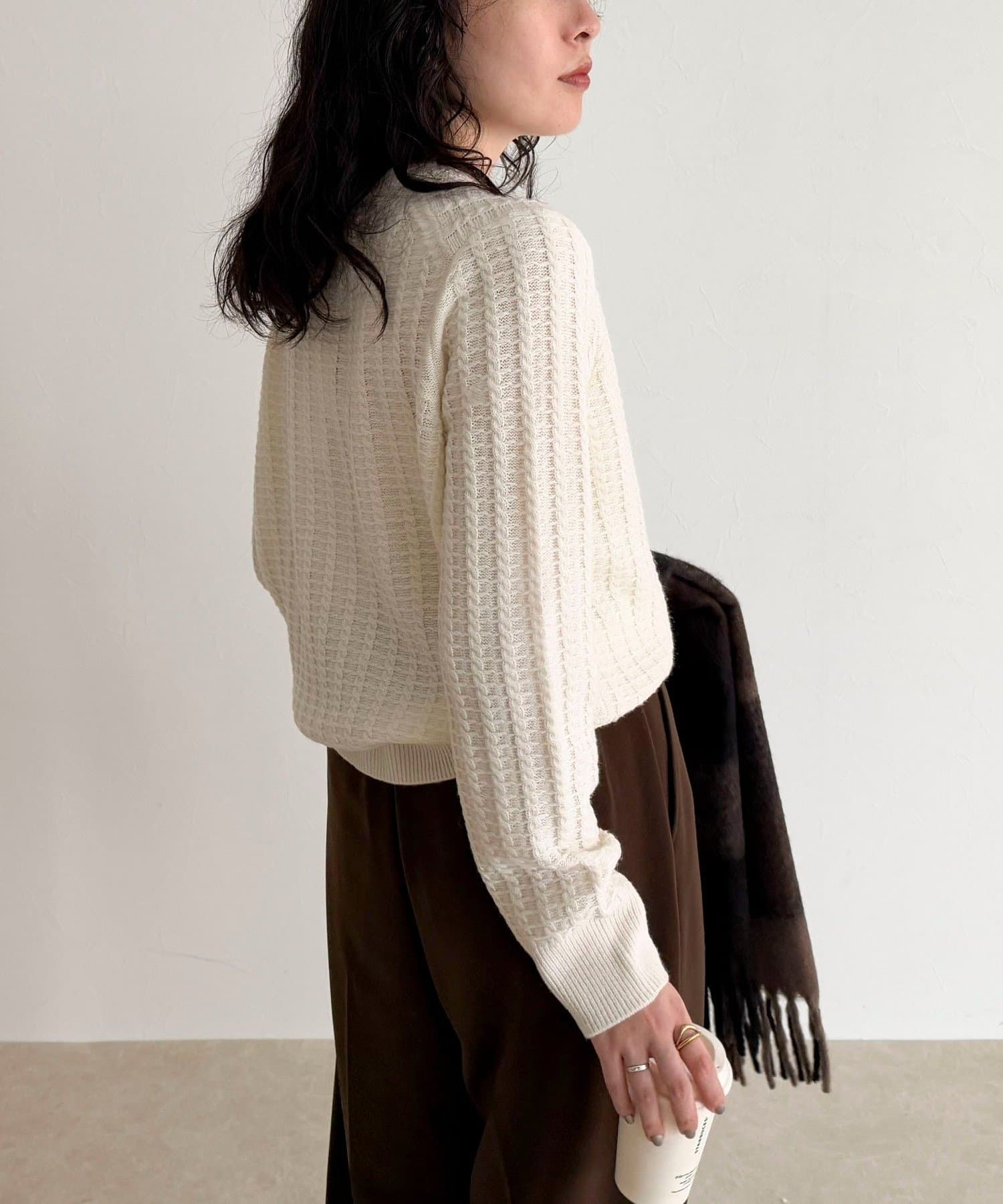 暖かく着心地抜群なケーブル柄カーディガン