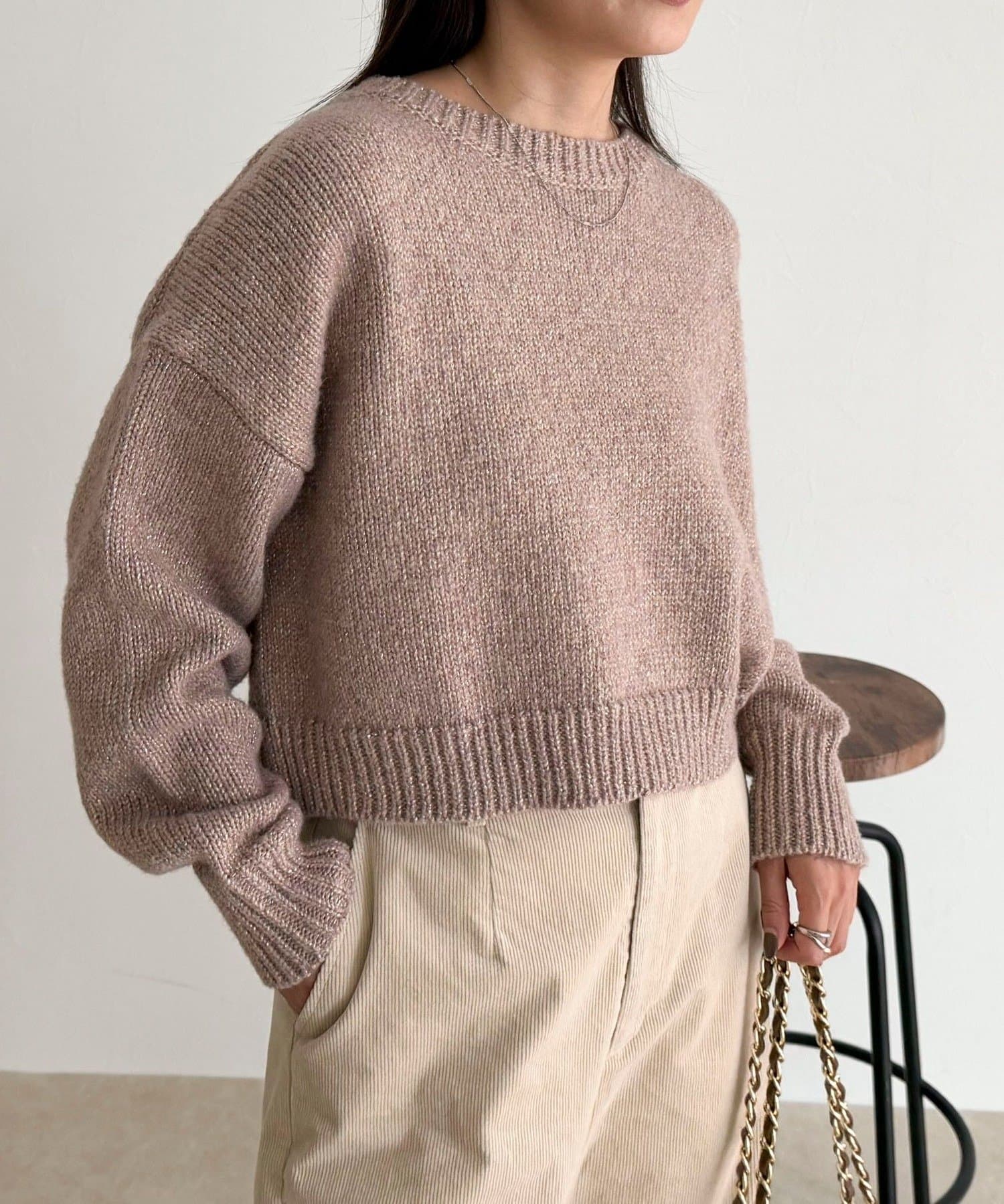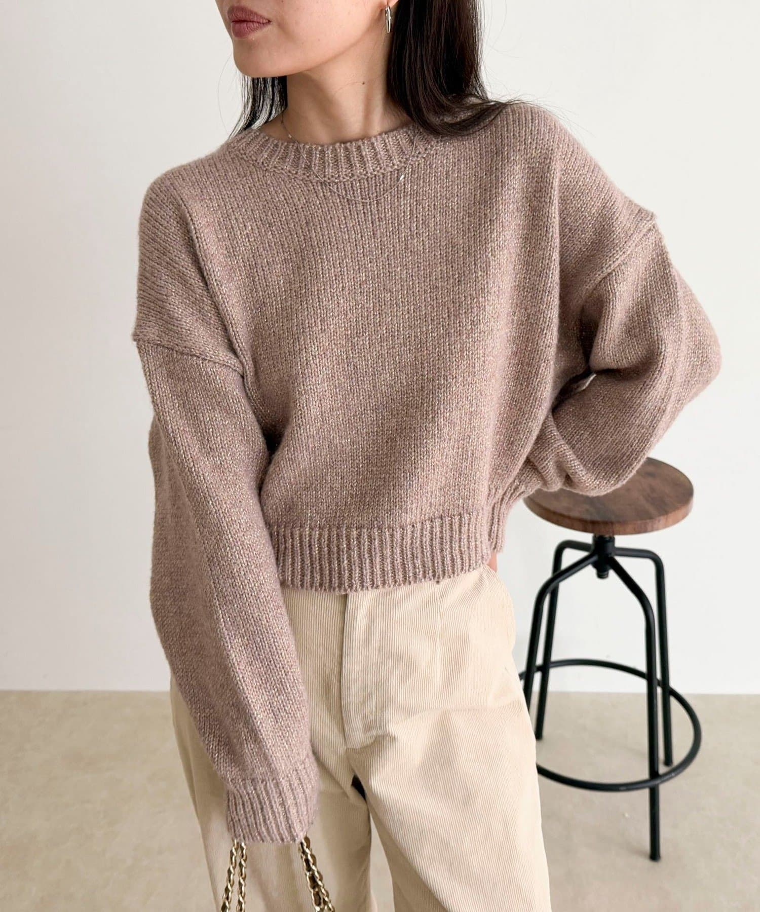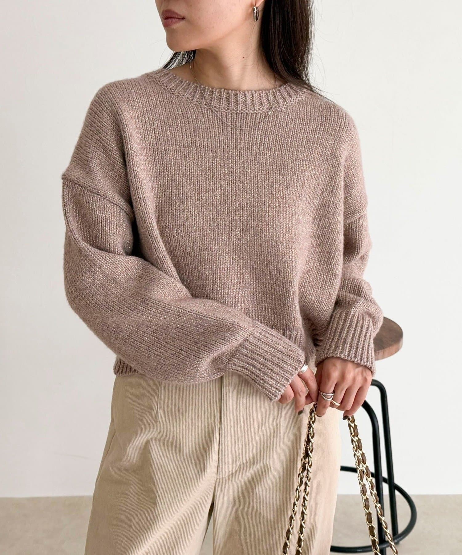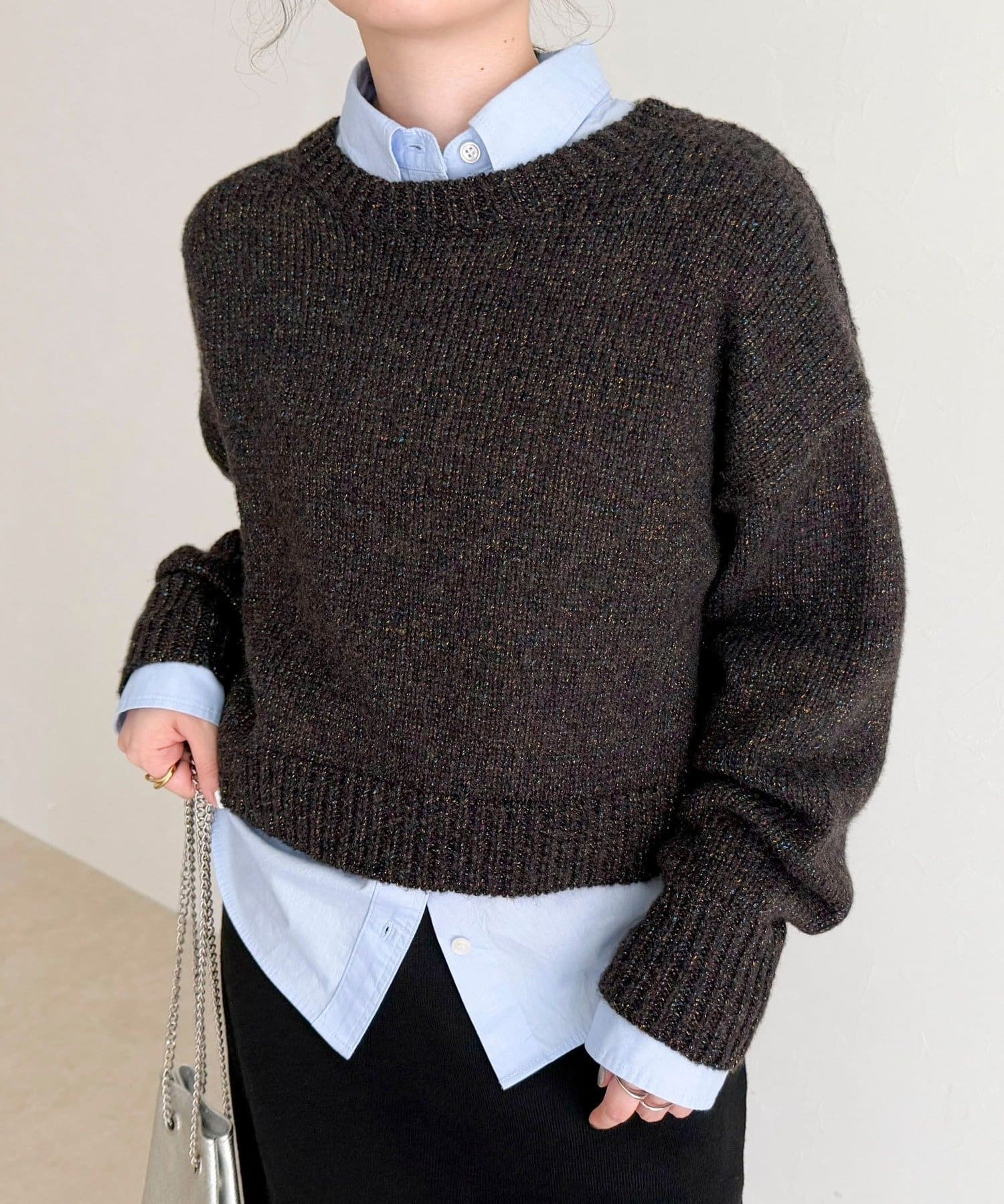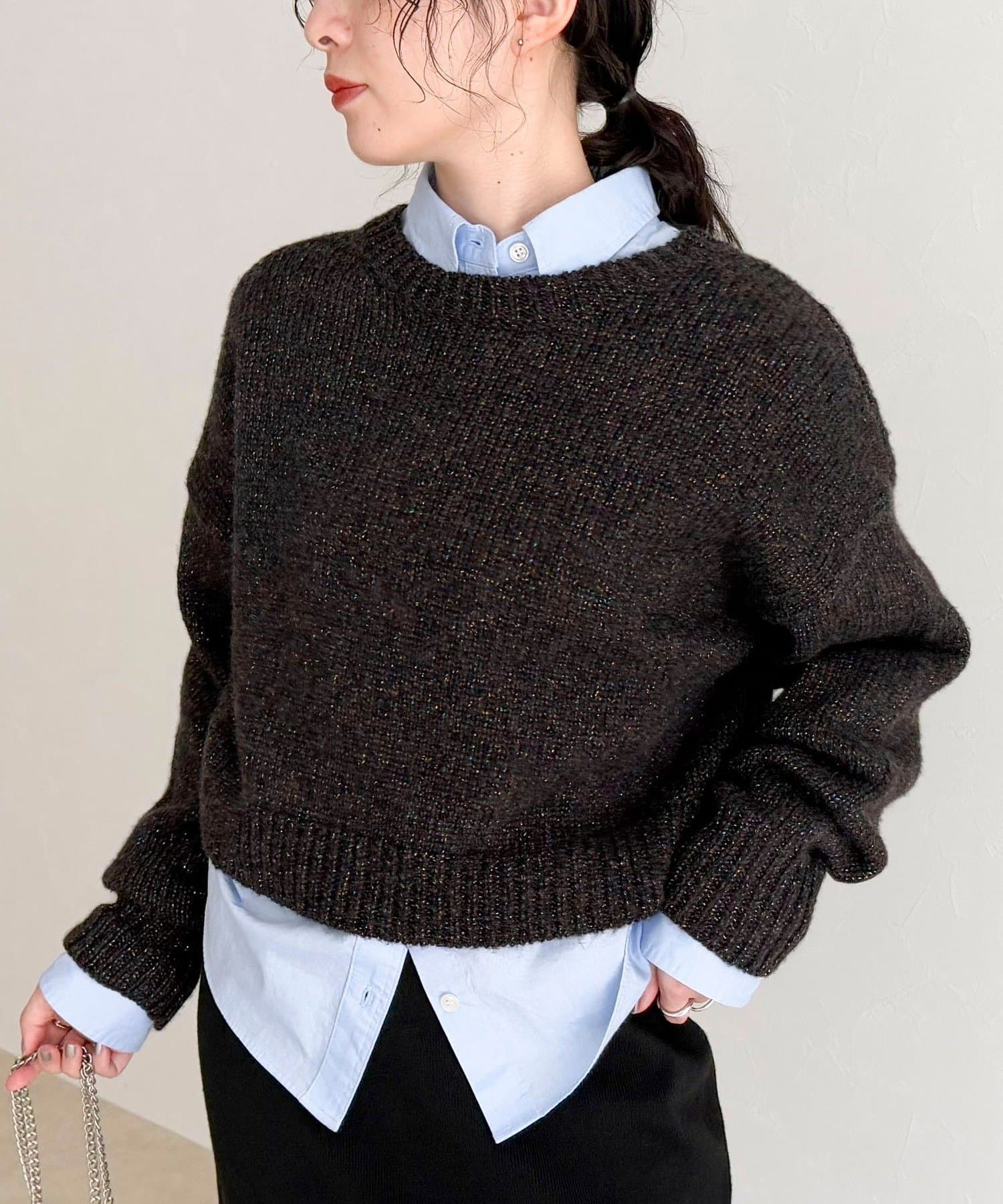 ・多彩なカラーのラメ糸を編み込んだキラキラニットプルオーバー