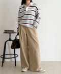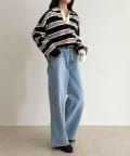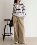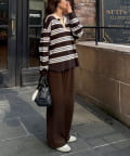 ・ 身長156cm/38サイズ着用:ゆったりとしたオーバーサイズで肩や腕まわりに余裕があり、動きやすいです。ボーダーがアクセントになり、1枚でもおしゃれに決まりました!