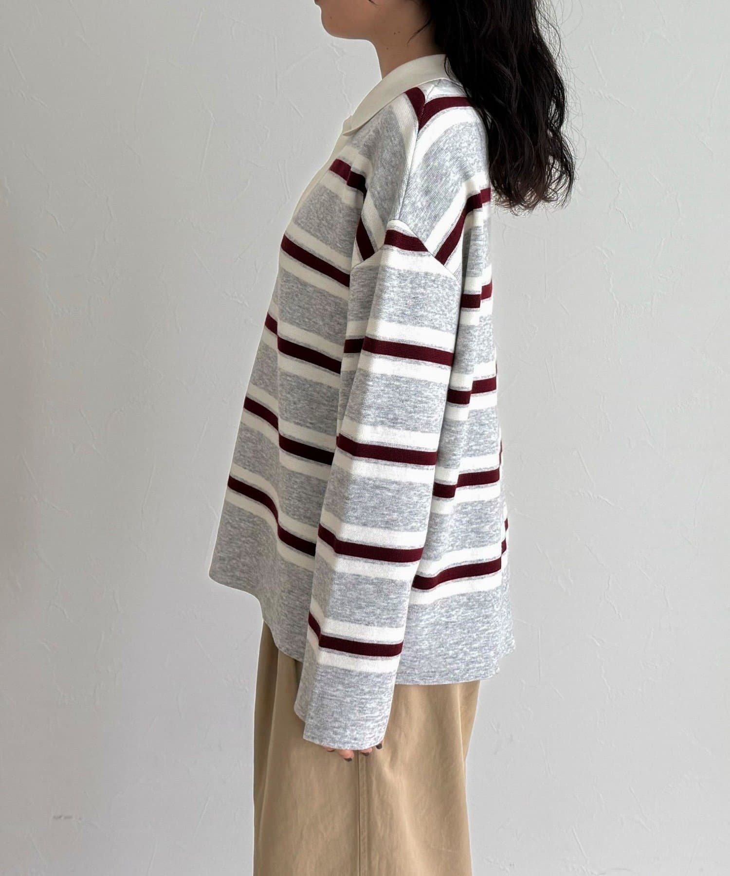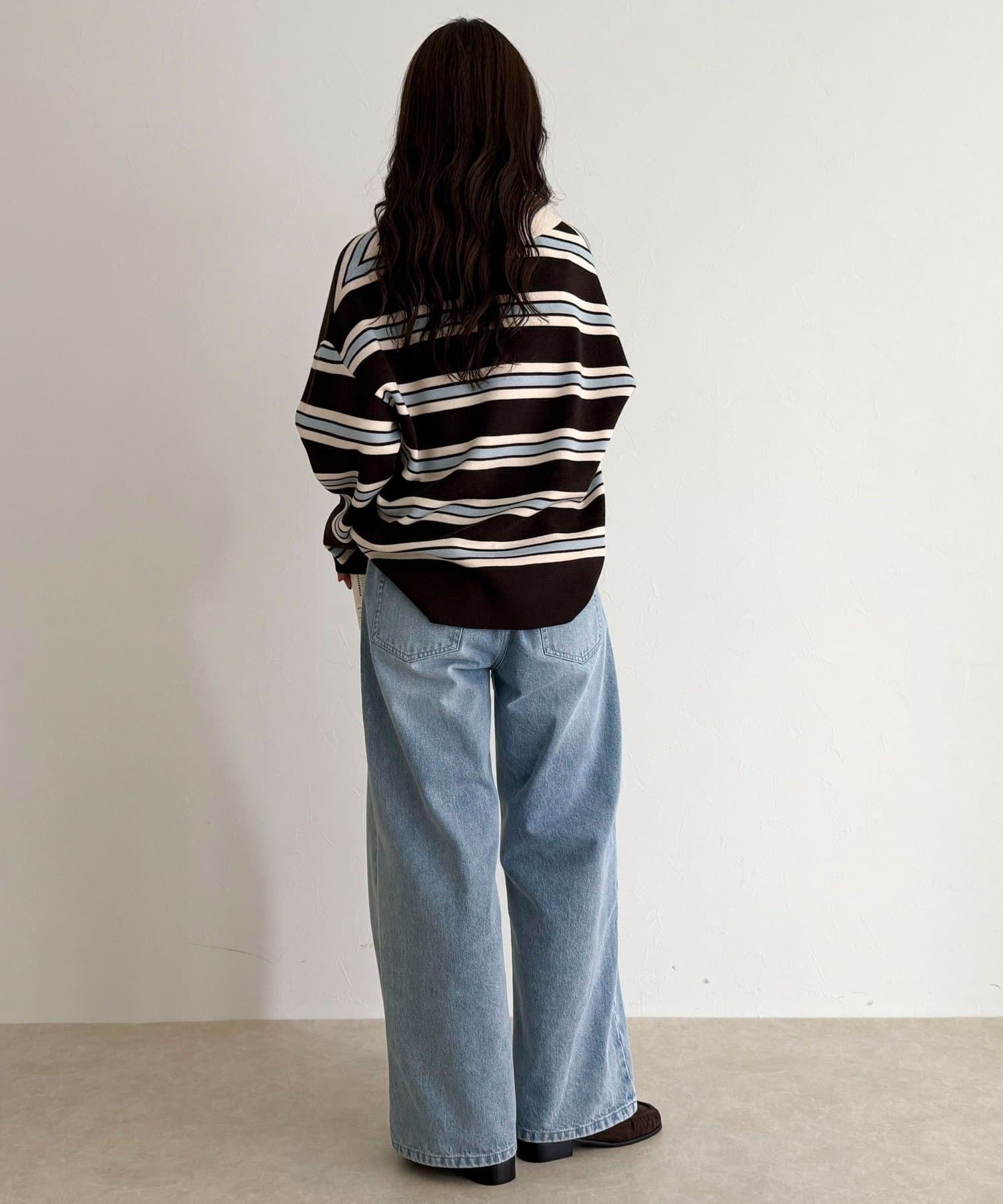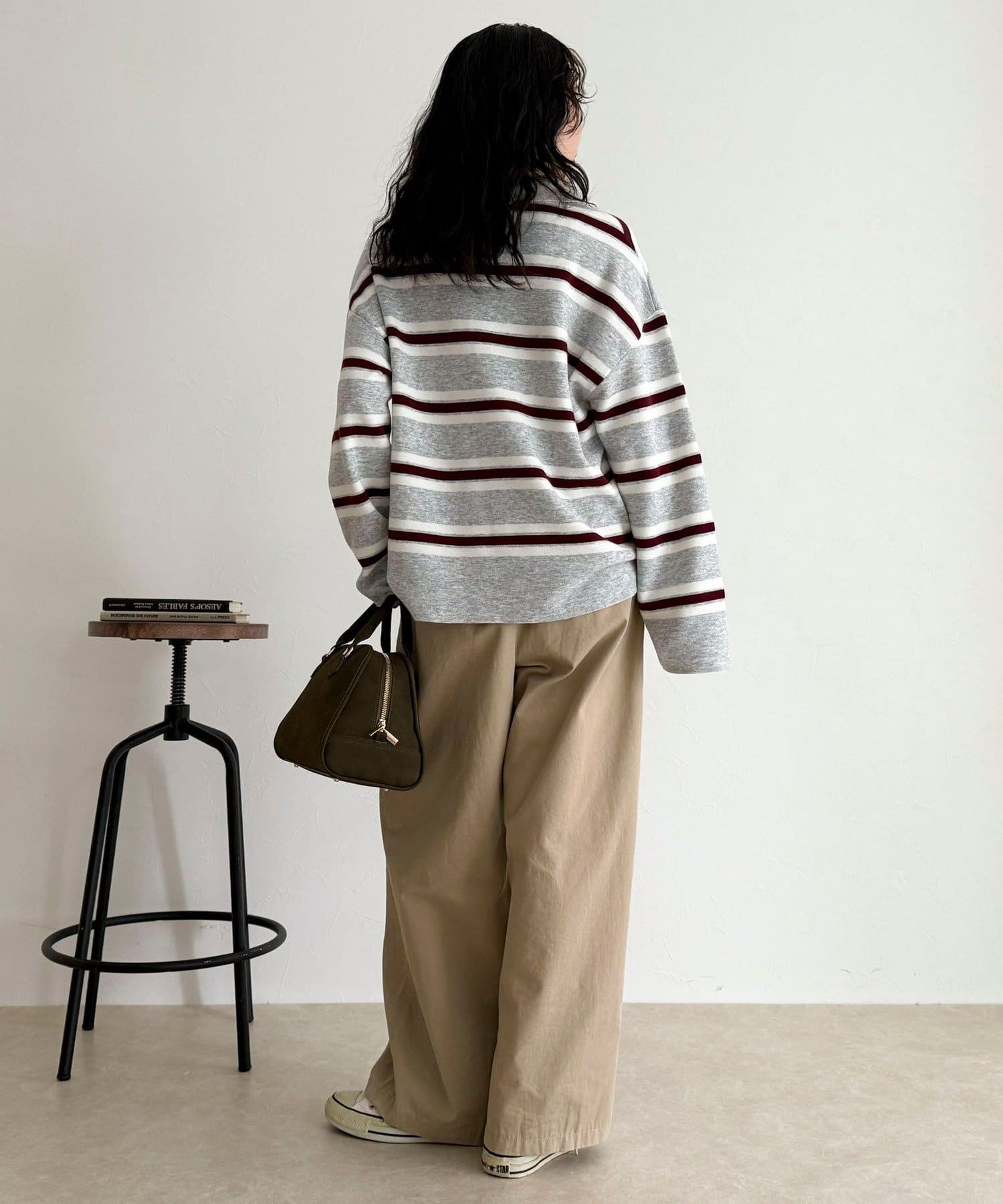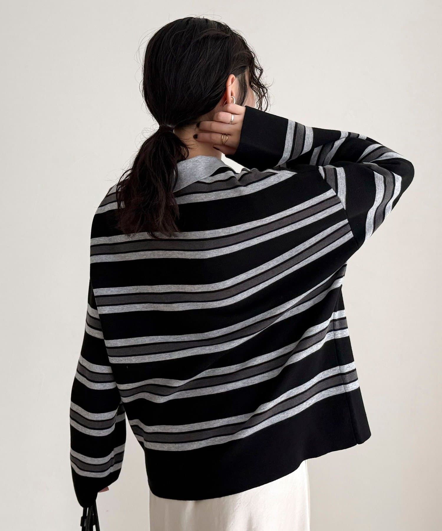 ・ 身長156cm/38サイズ着用:ゆったりとしたオーバーサイズで肩や腕まわりに余裕があり、動きやすいです。ボーダーがアクセントになり、1枚でもおしゃれに決まりました!