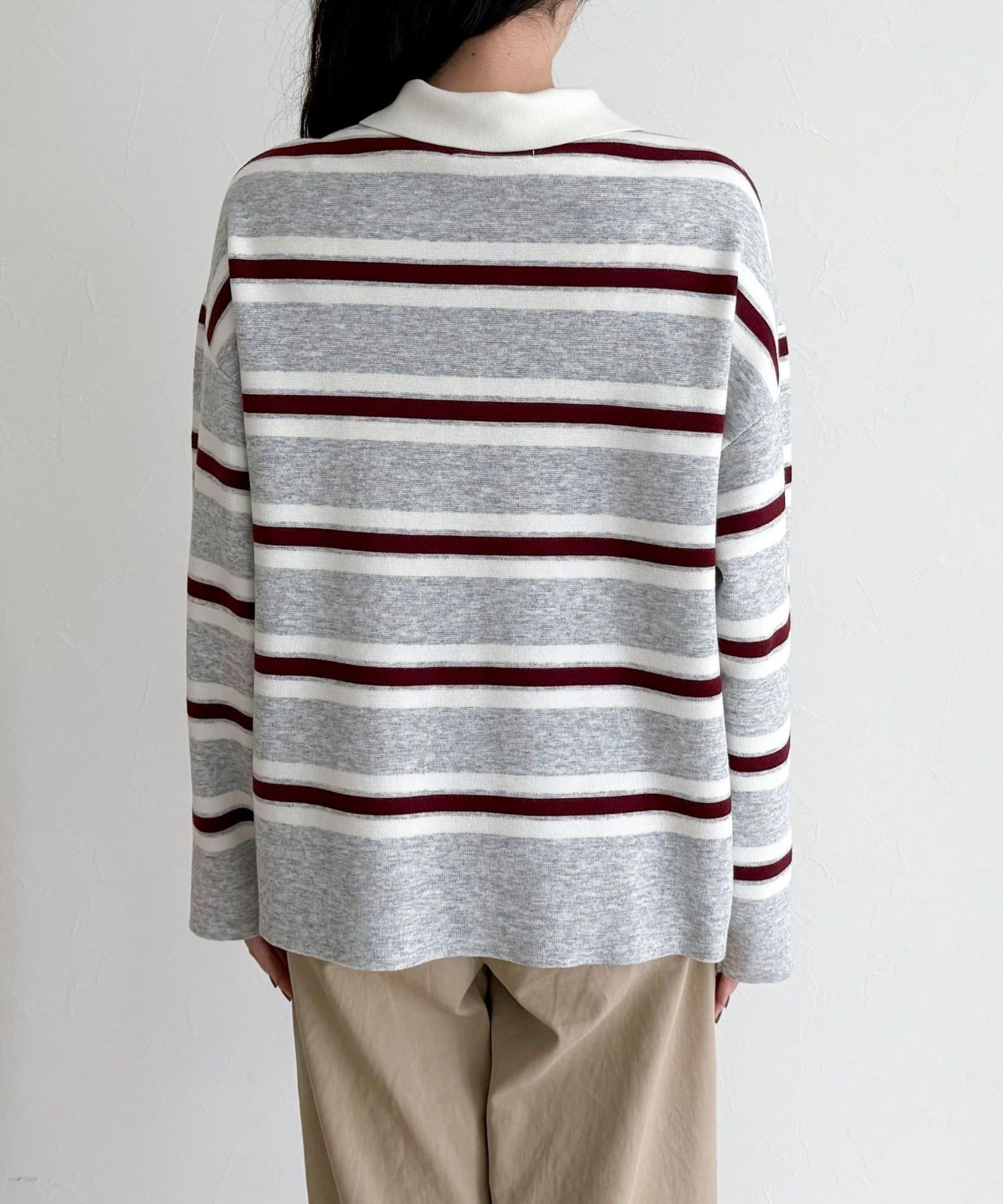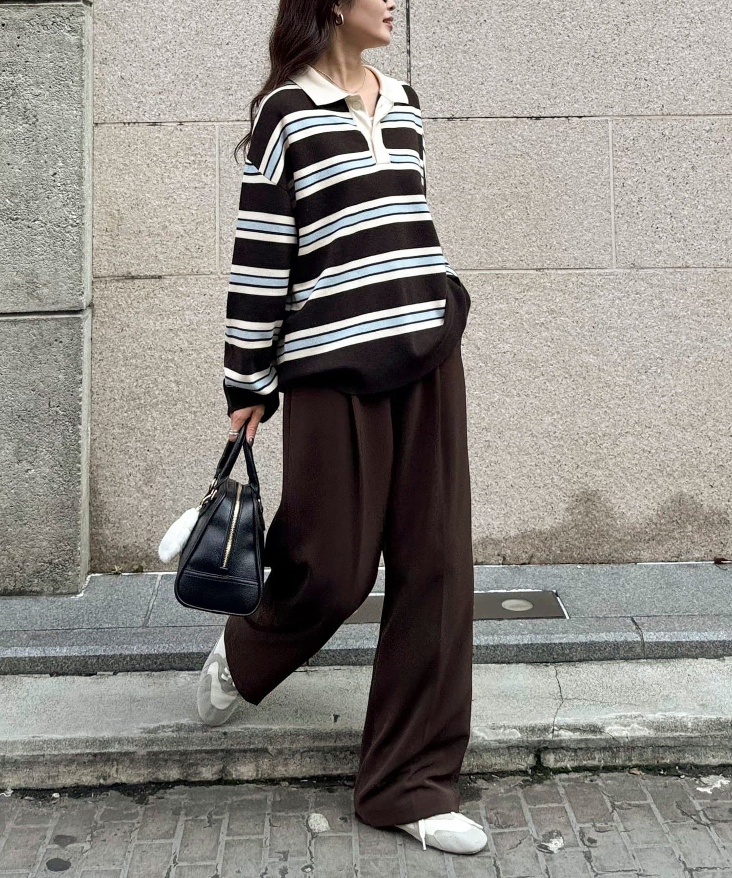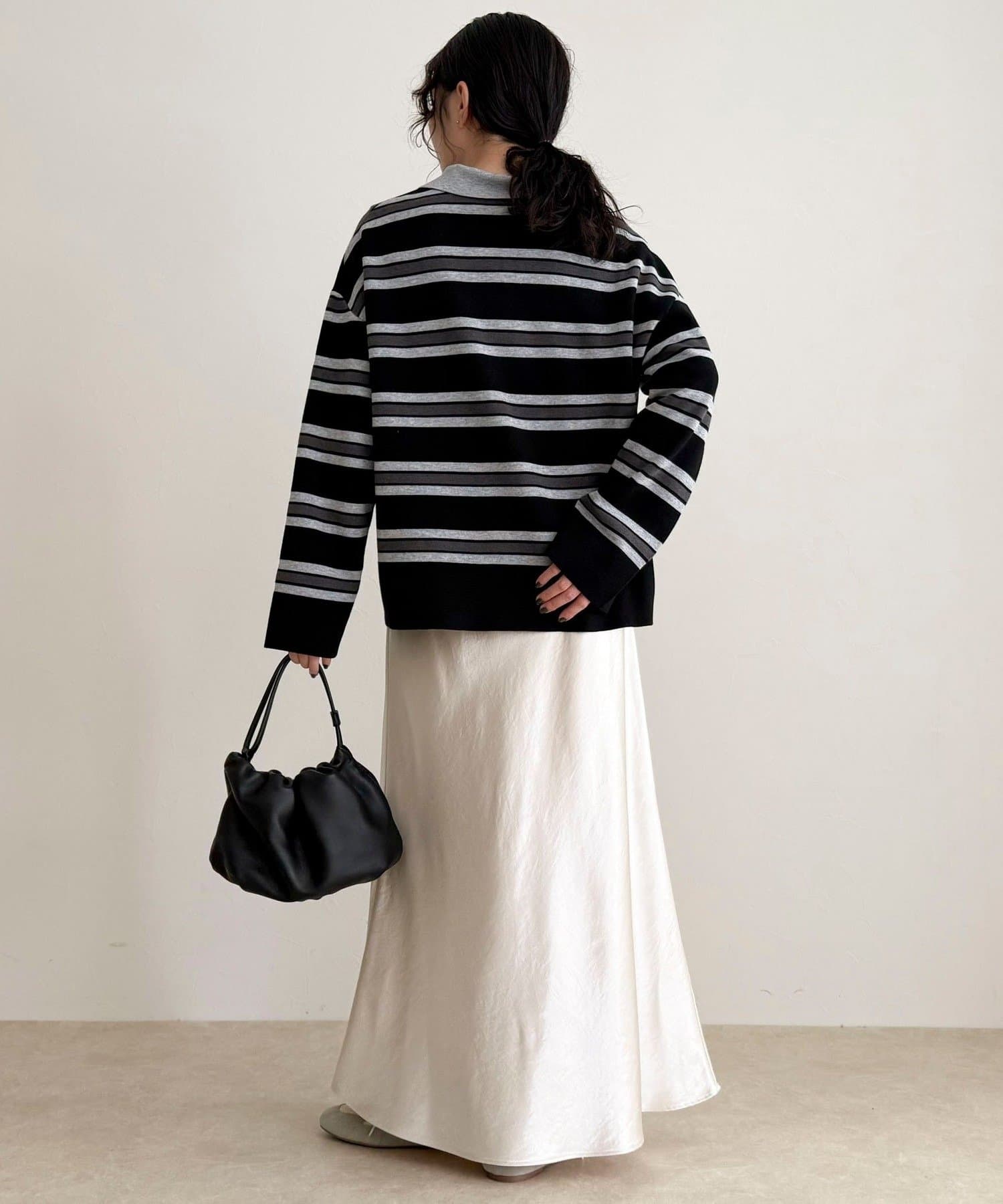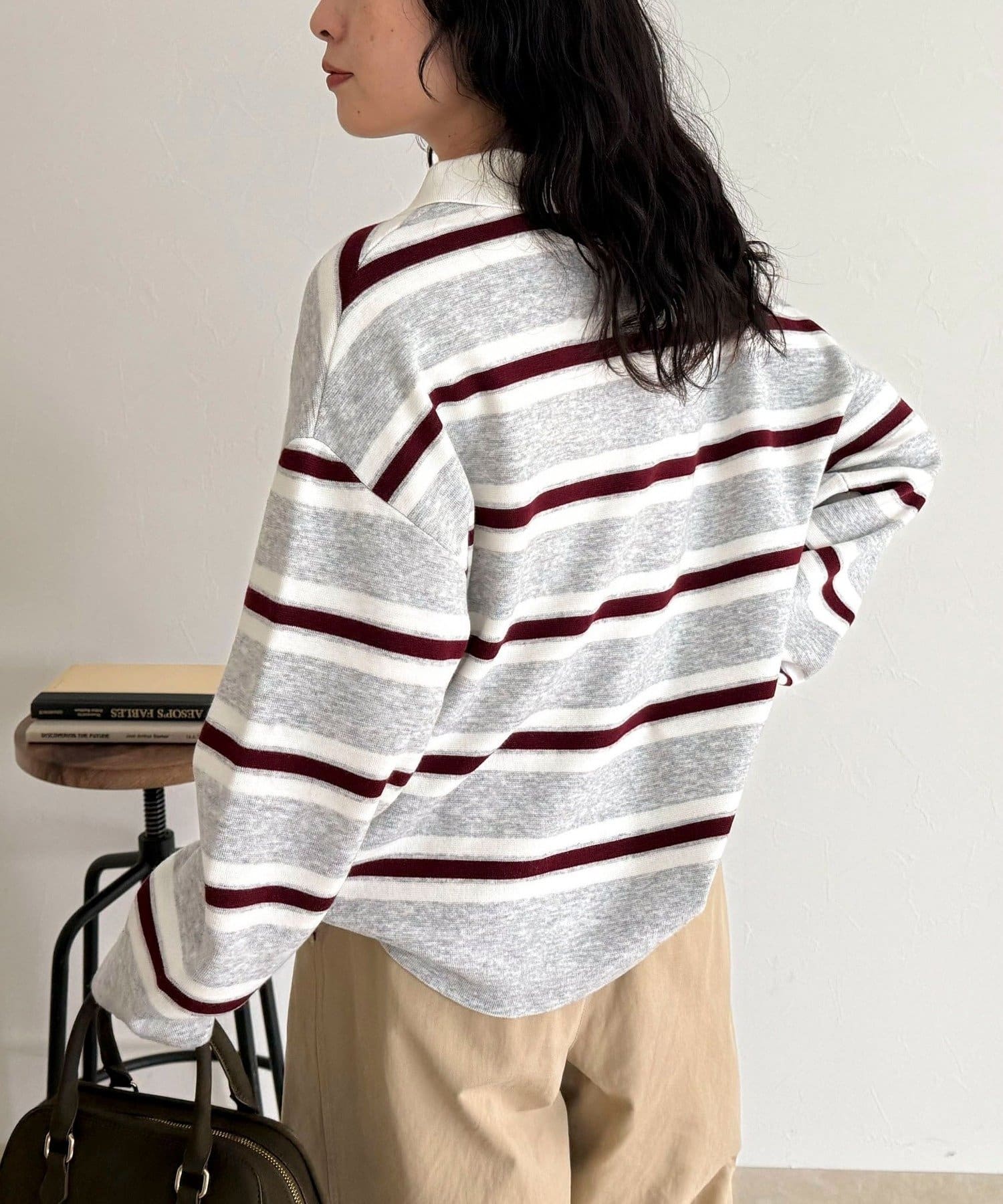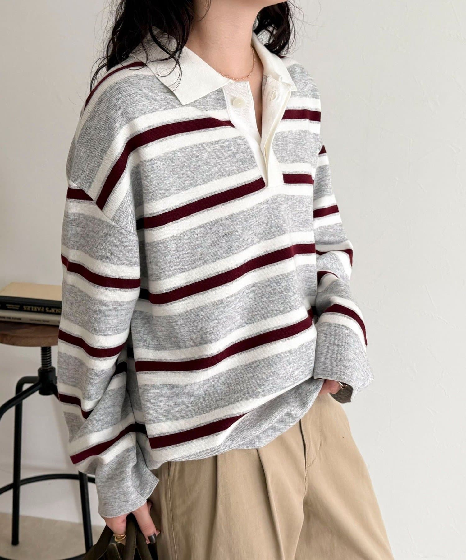 ・ 身長156cm/38サイズ着用:ゆったりとしたオーバーサイズで肩や腕まわりに余裕があり、動きやすいです。ボーダーがアクセントになり、1枚でもおしゃれに決まりました!