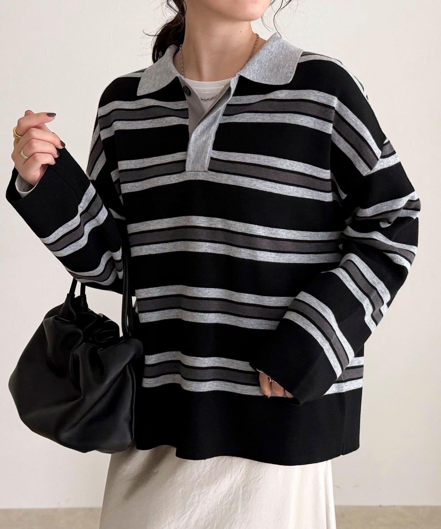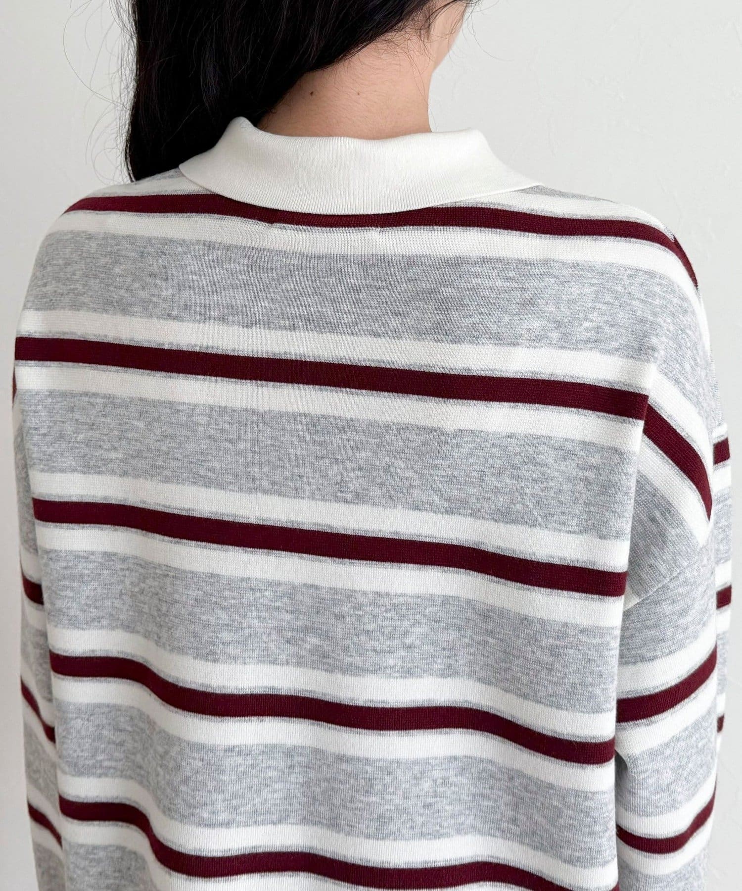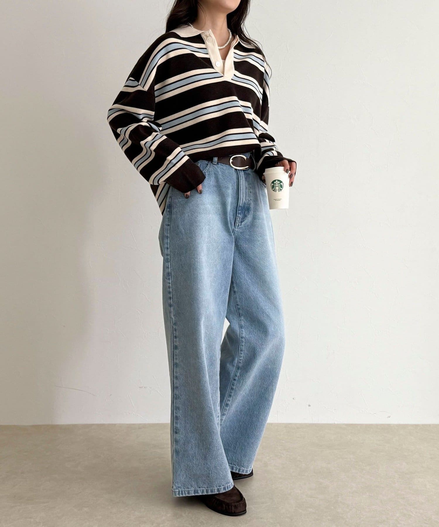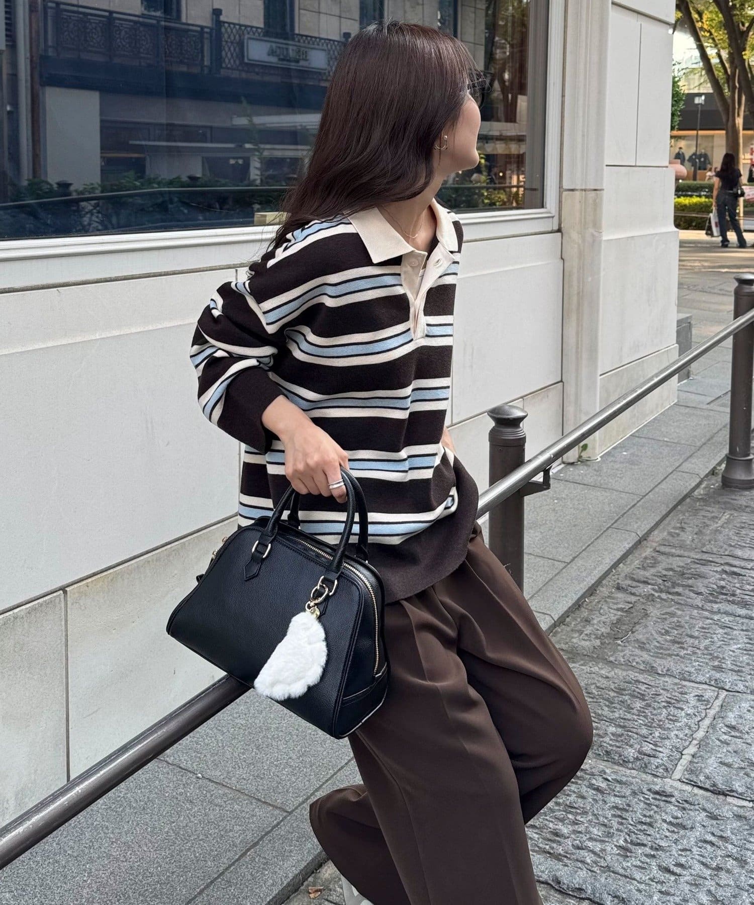・ 身長156cm/38サイズ着用:ゆったりとしたオーバーサイズで肩や腕まわりに余裕があり、動きやすいです。ボーダーがアクセントになり、1枚でもおしゃれに決まりました!