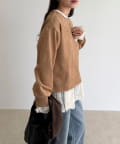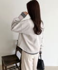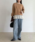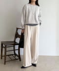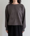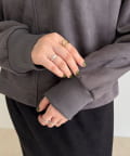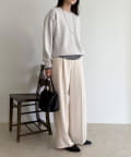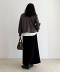 156cmスタッフ(38サイズ着用):ヒップに少しかかるくらいの丈感で、ボトムとのバランスが取りやすかったです。ゆとりのあるサイズ感ですが、落ち感のある素材でスッキリ見えします。やわらかくて軽いので、長時間着ていてもストレスがなく、つい手に取りたくなる着心地でした!