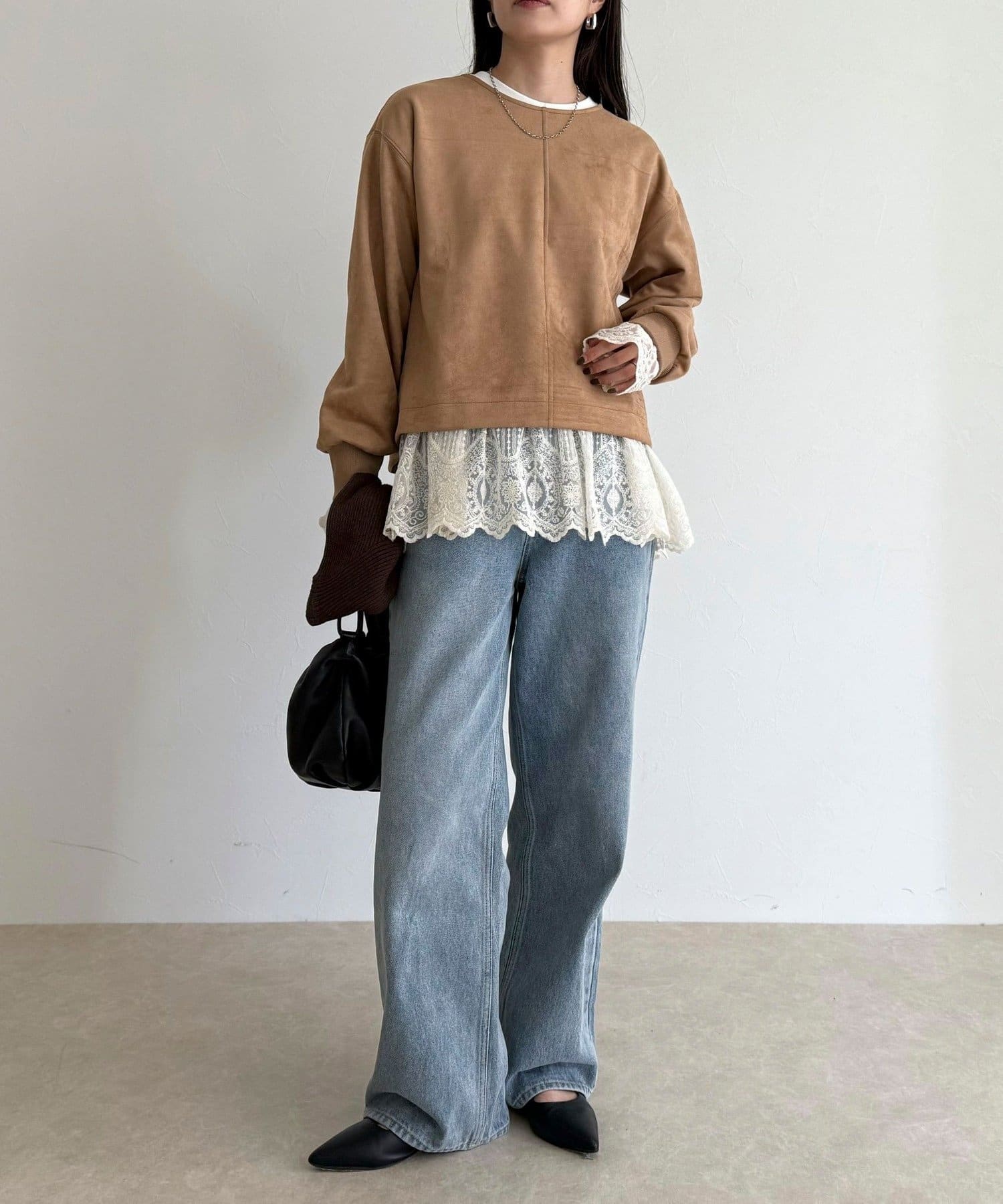 ・くたっとした風合いが魅力のフェイクスエードプルオーバー