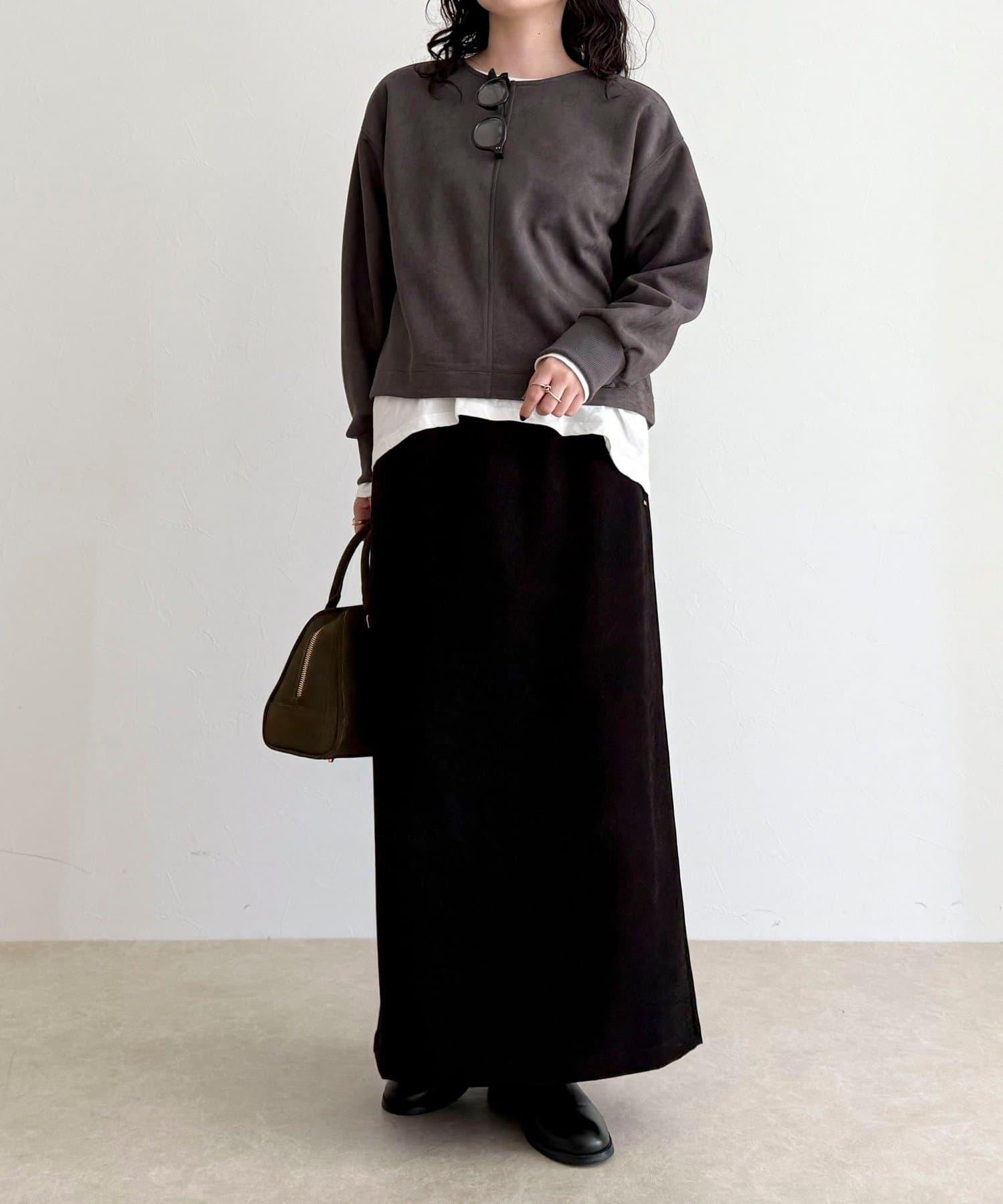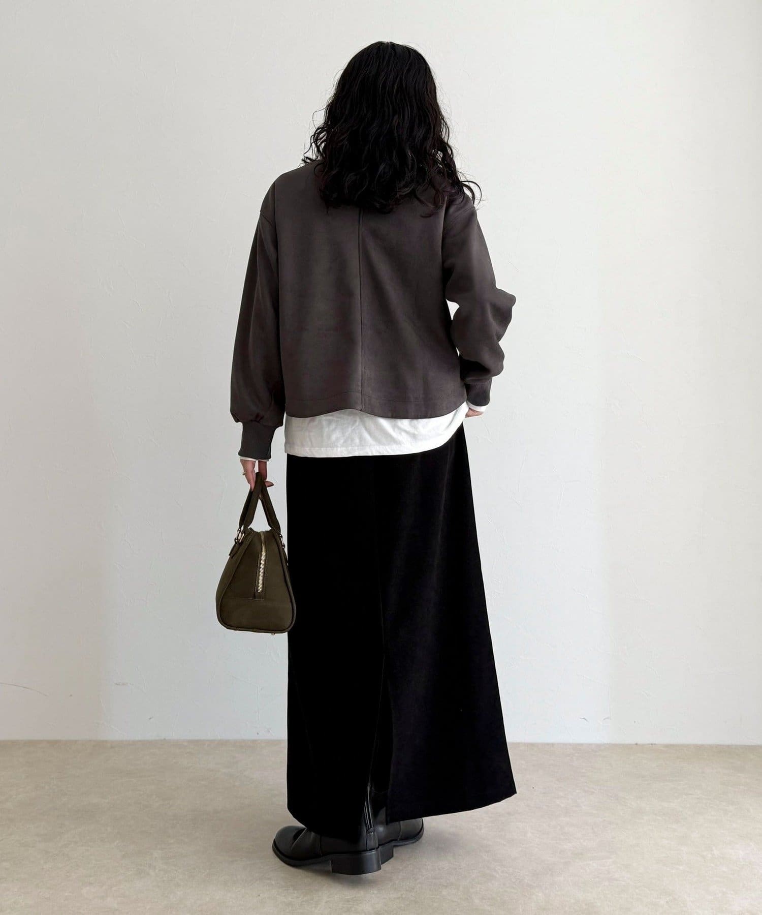 ・パンツにもスカートにも合わせやすく、秋冬のレイヤードスタイルにぴったりな一枚