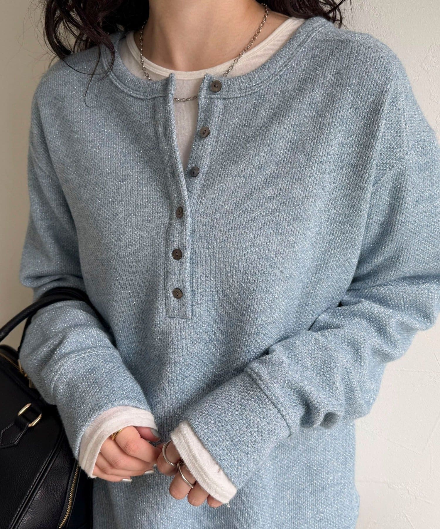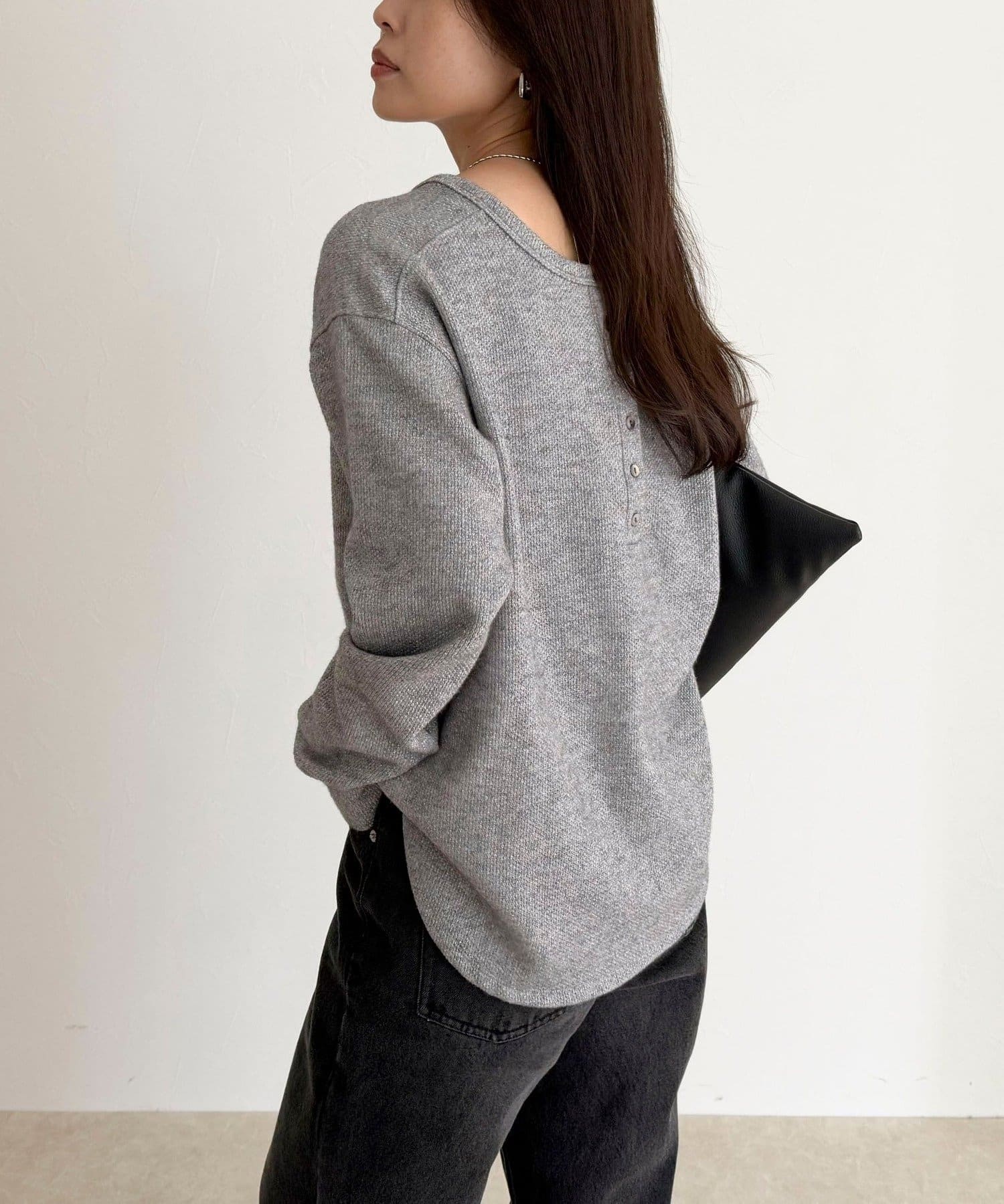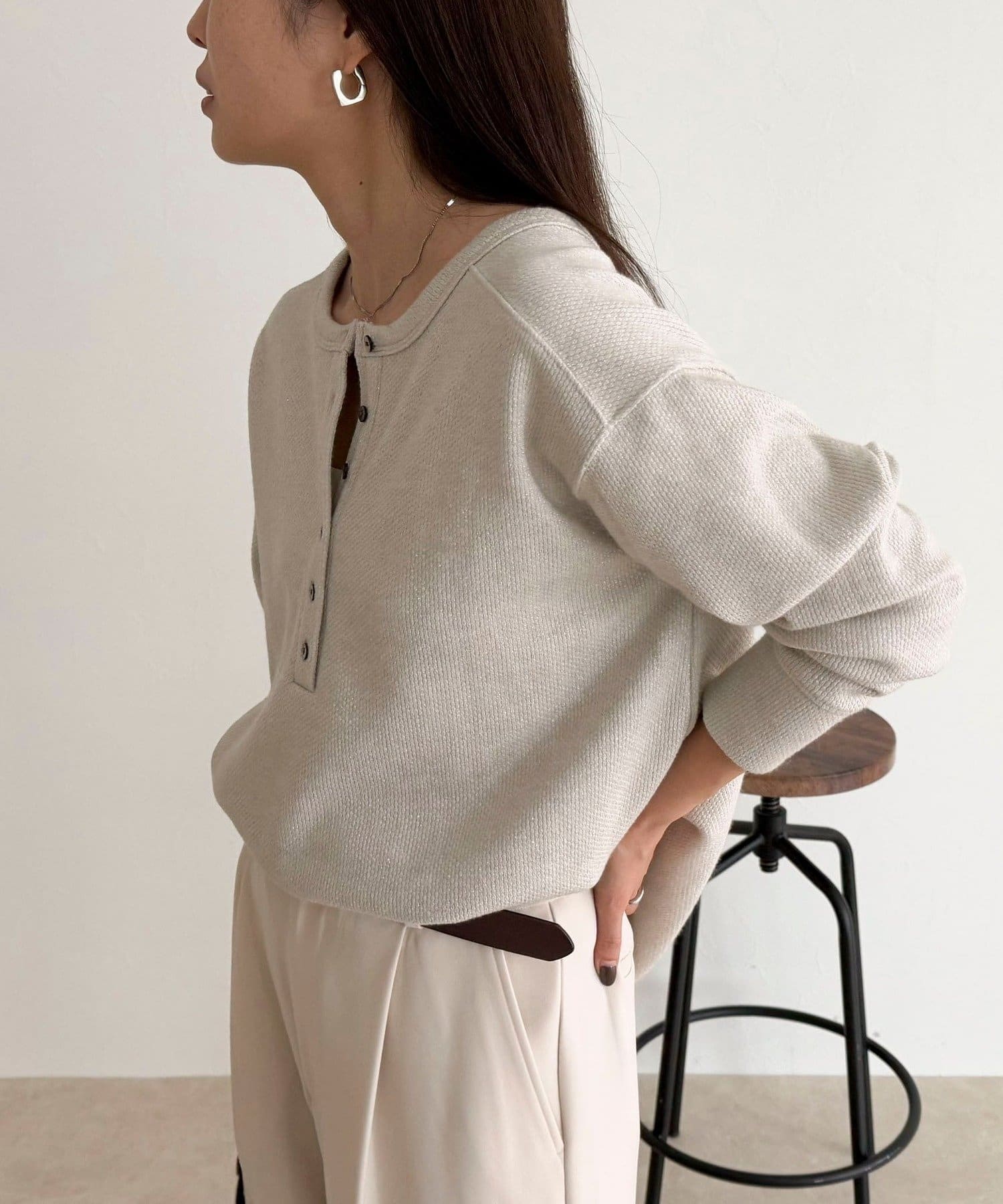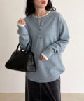 ・細かなラメが上品に輝くヘンリーネックプルオーバー