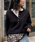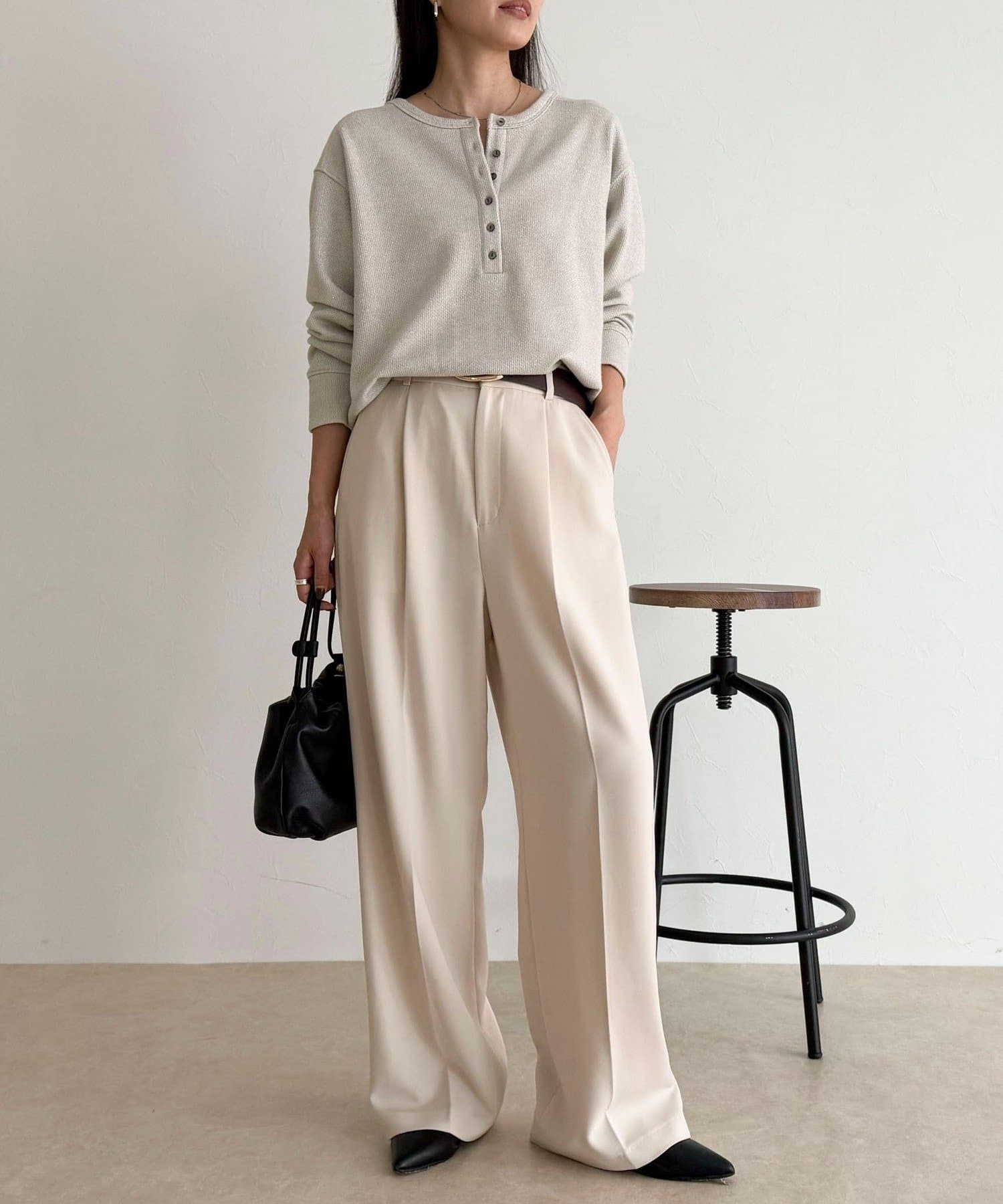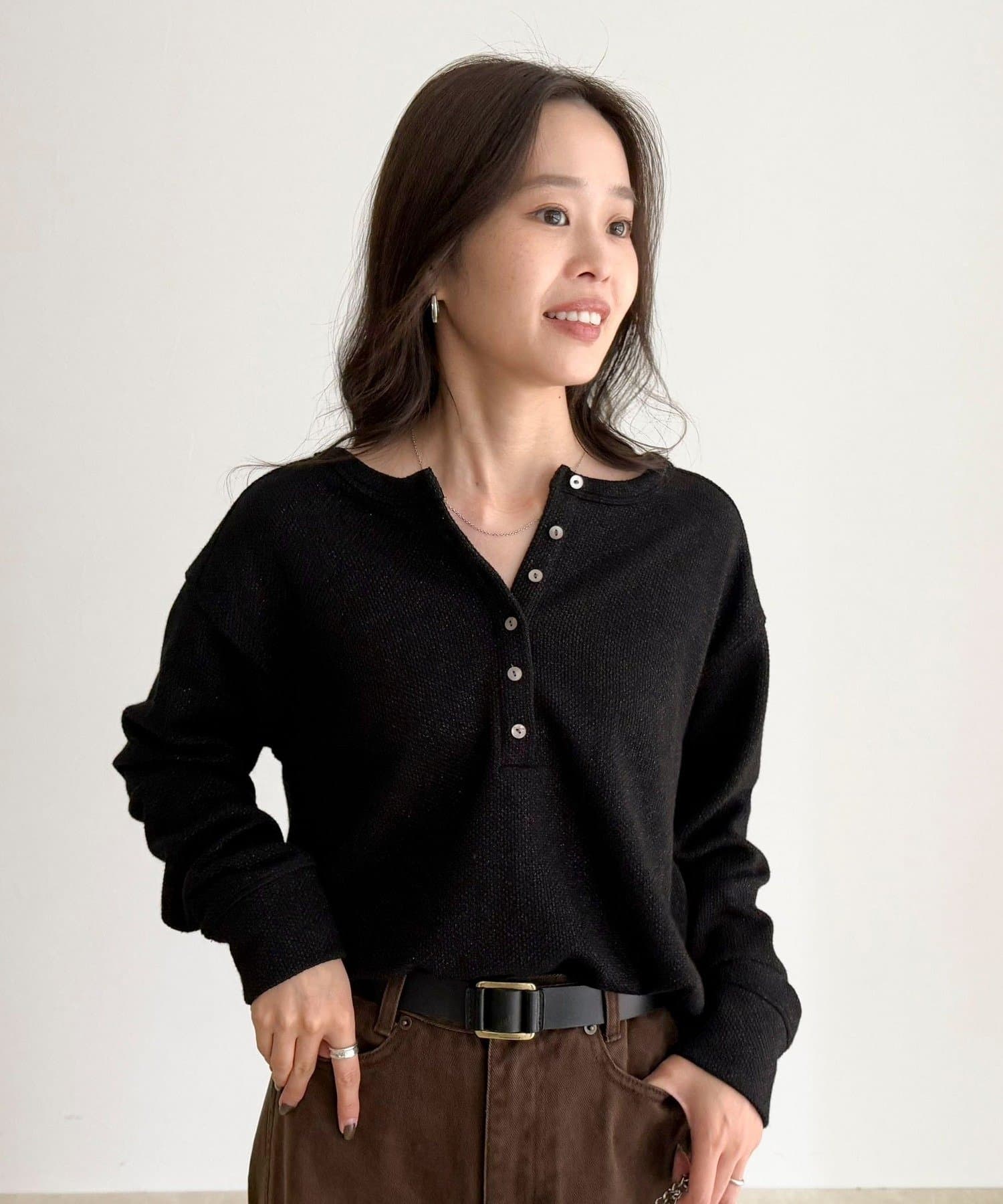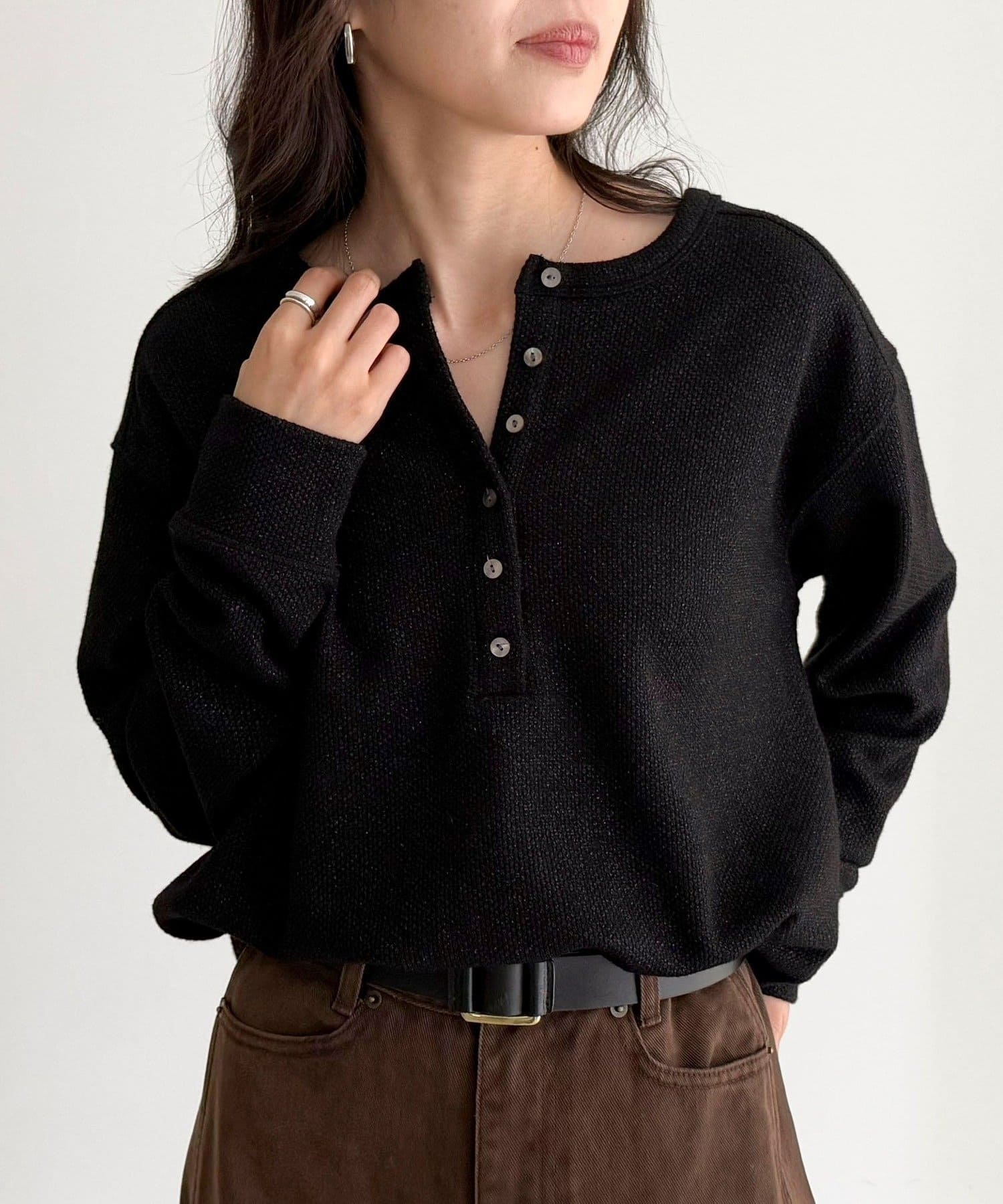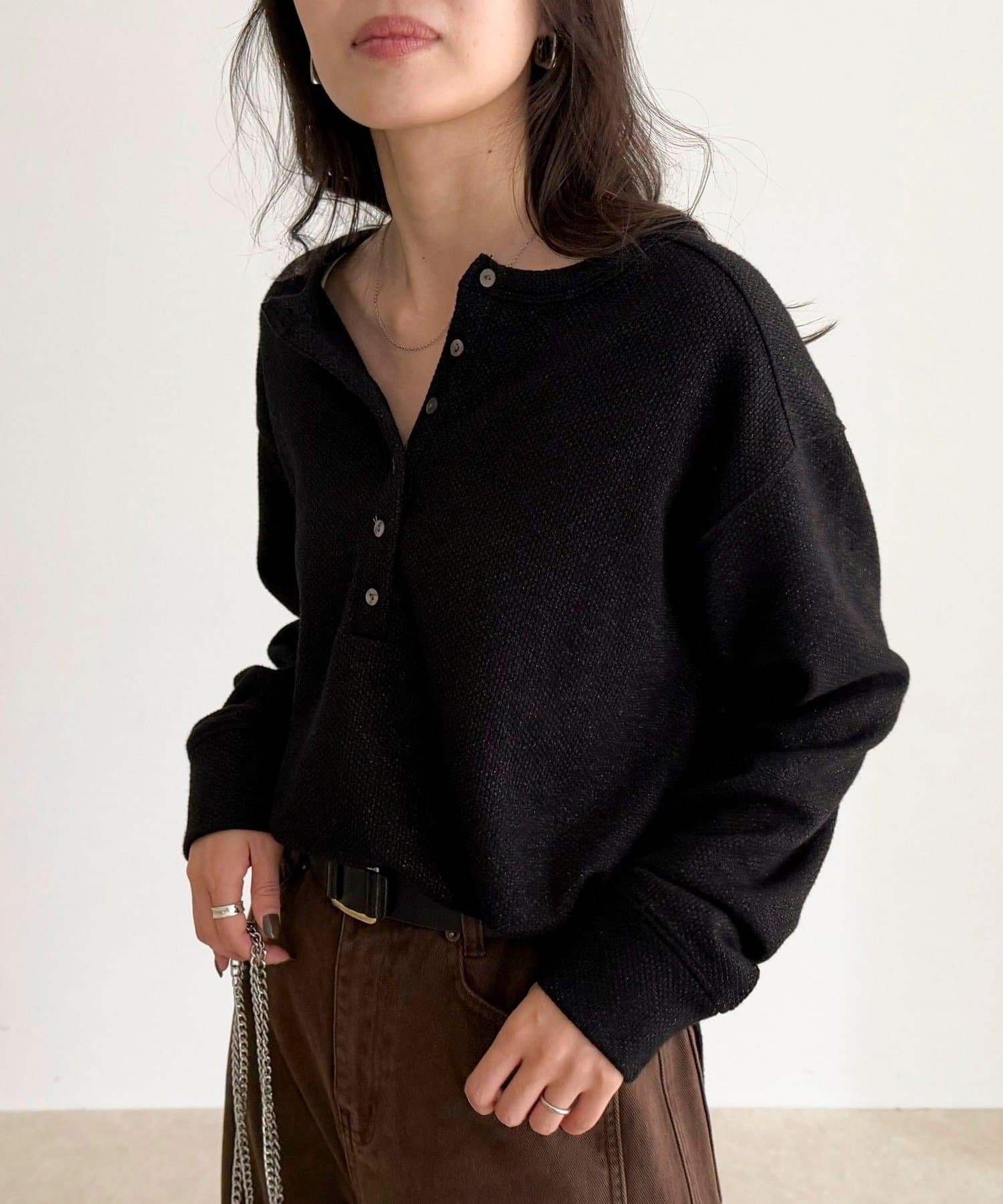 ・細かなラメが上品に輝くヘンリーネックプルオーバー