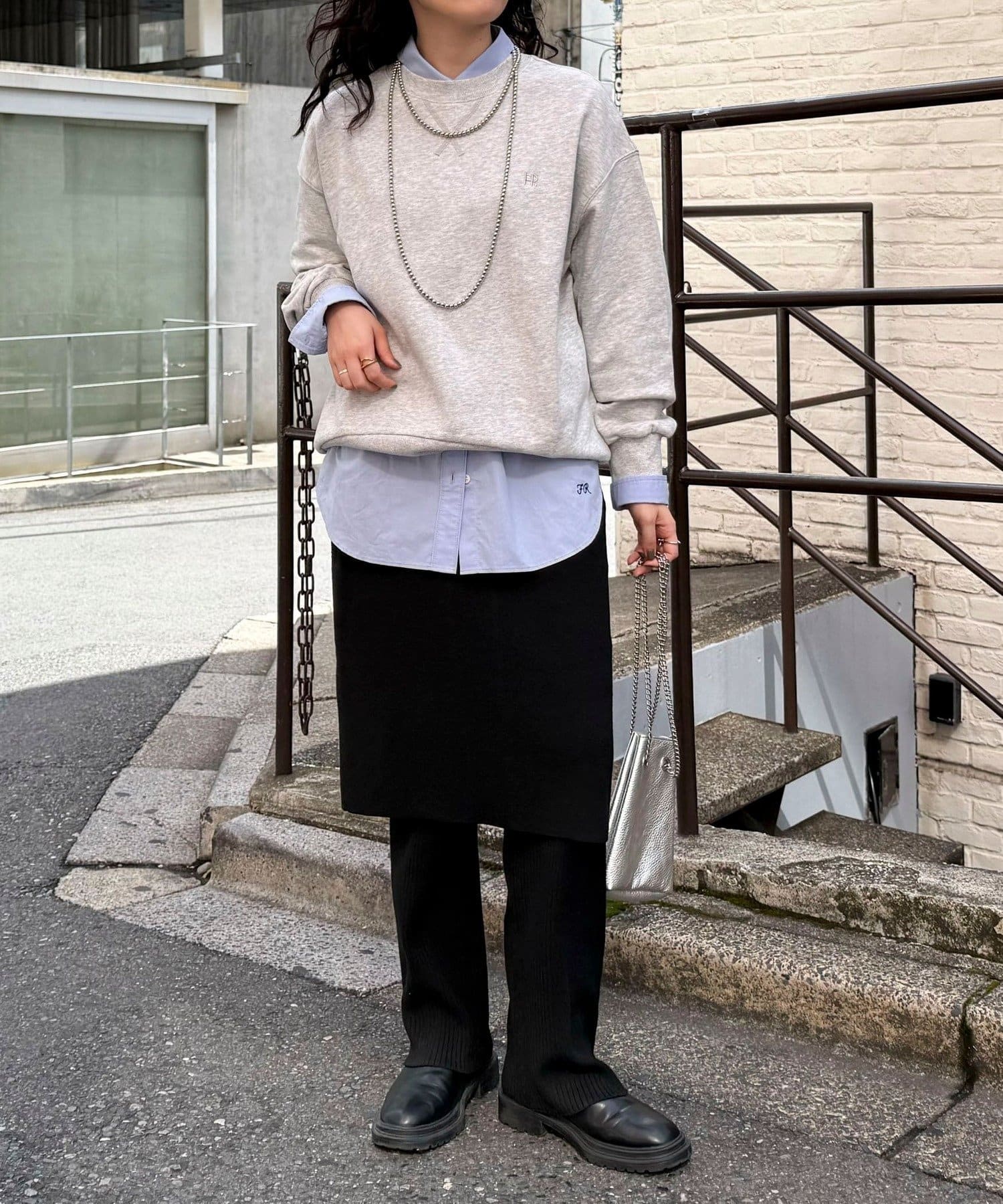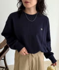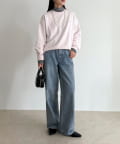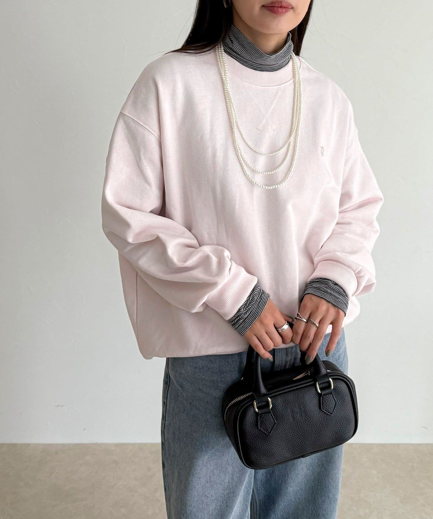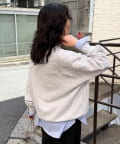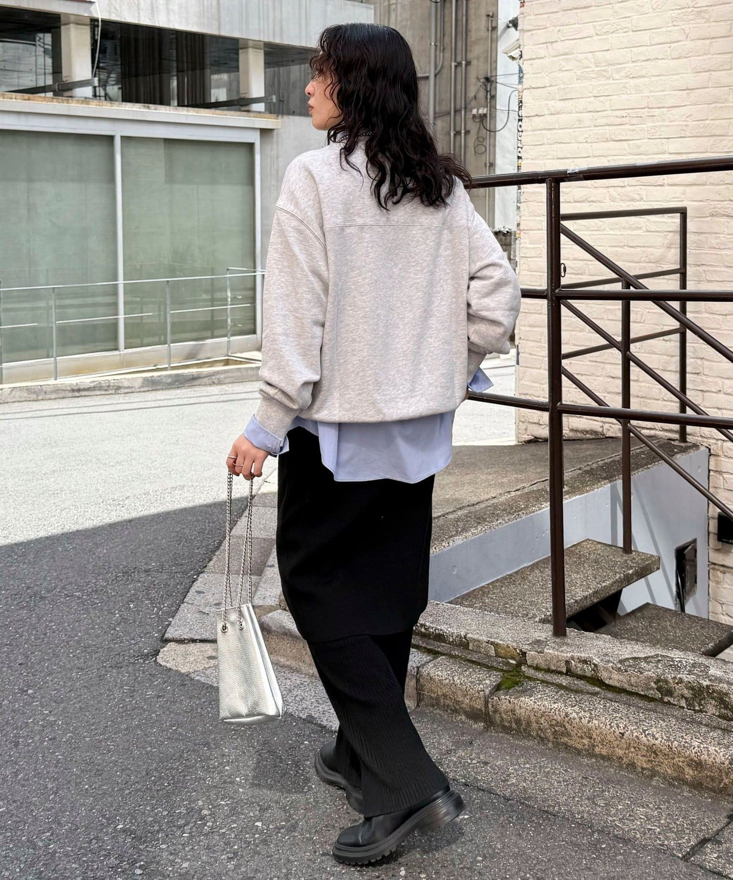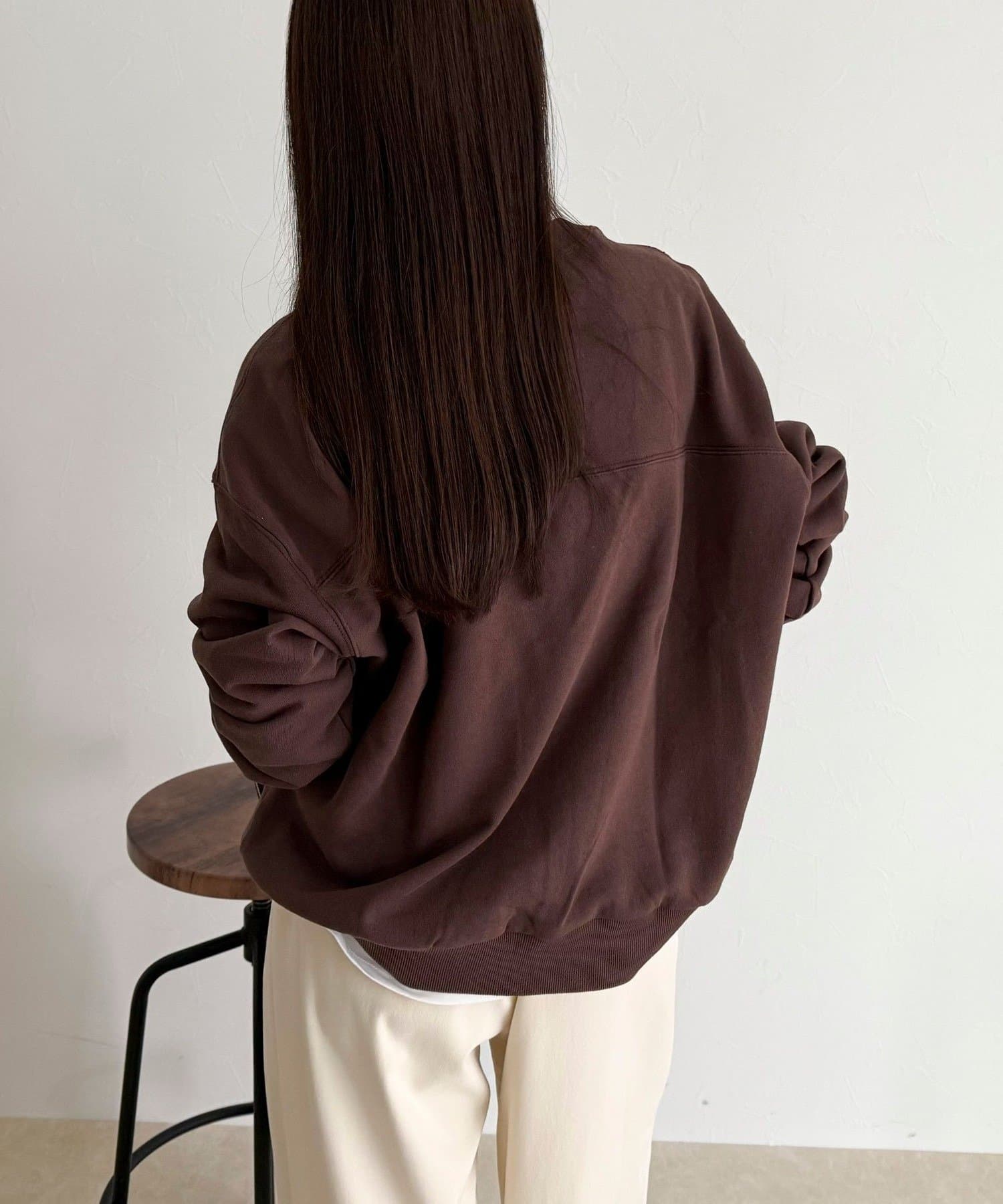 156cmスタッフ(38サイズ着用):程よくゆとりのあるサイズ感で、リラックスして着られます!ドロップショルダーのラインが女性らしく、スウェットでもラフになりすぎない印象になってくれます◎