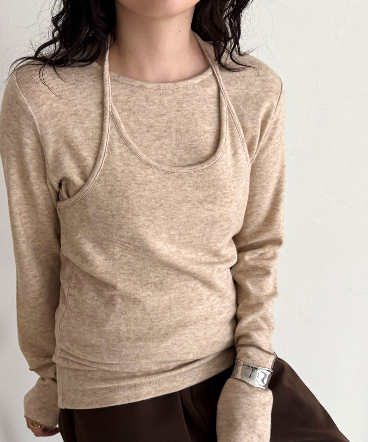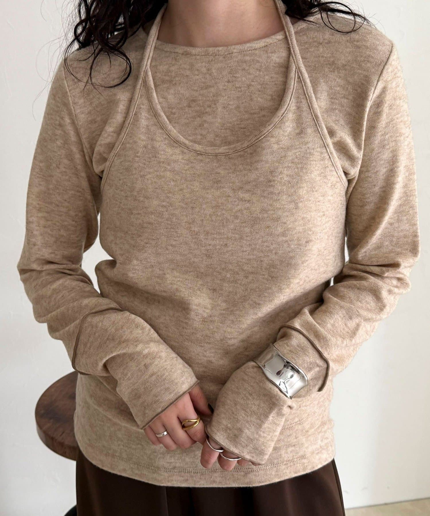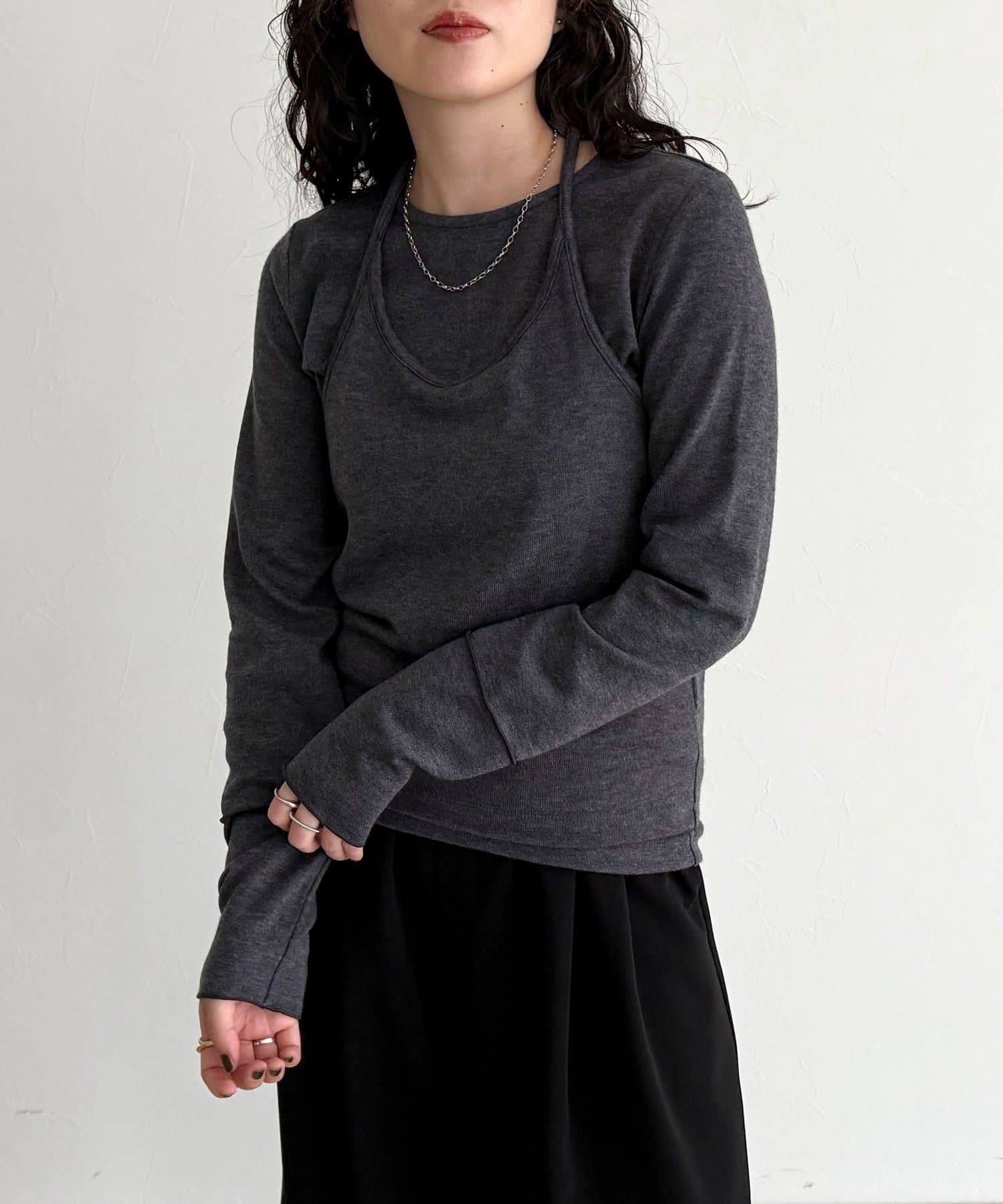 ・同素材のビスチェとロンTがセットになった、トレンドのレイヤードスタイルが楽しめるアイテム