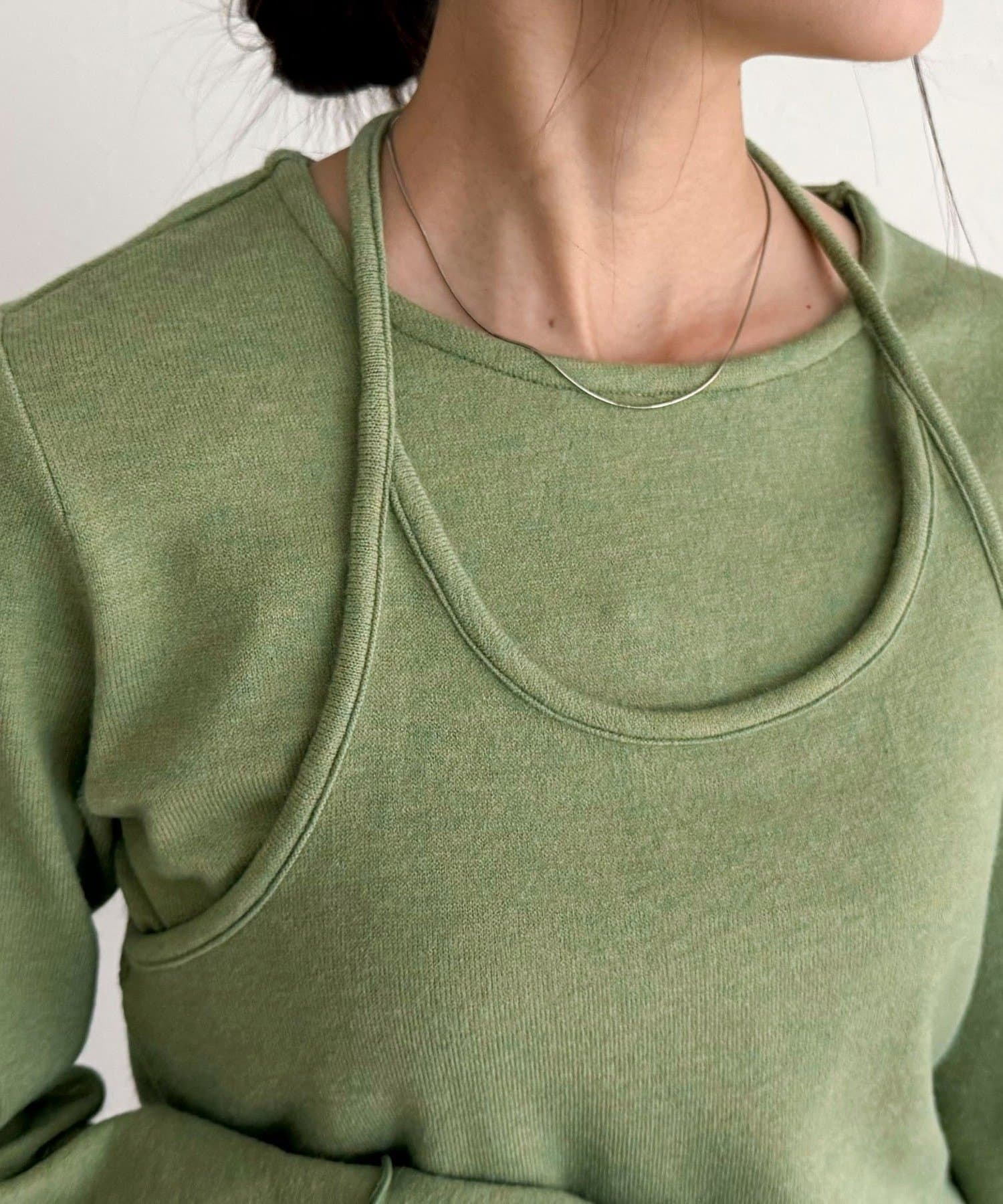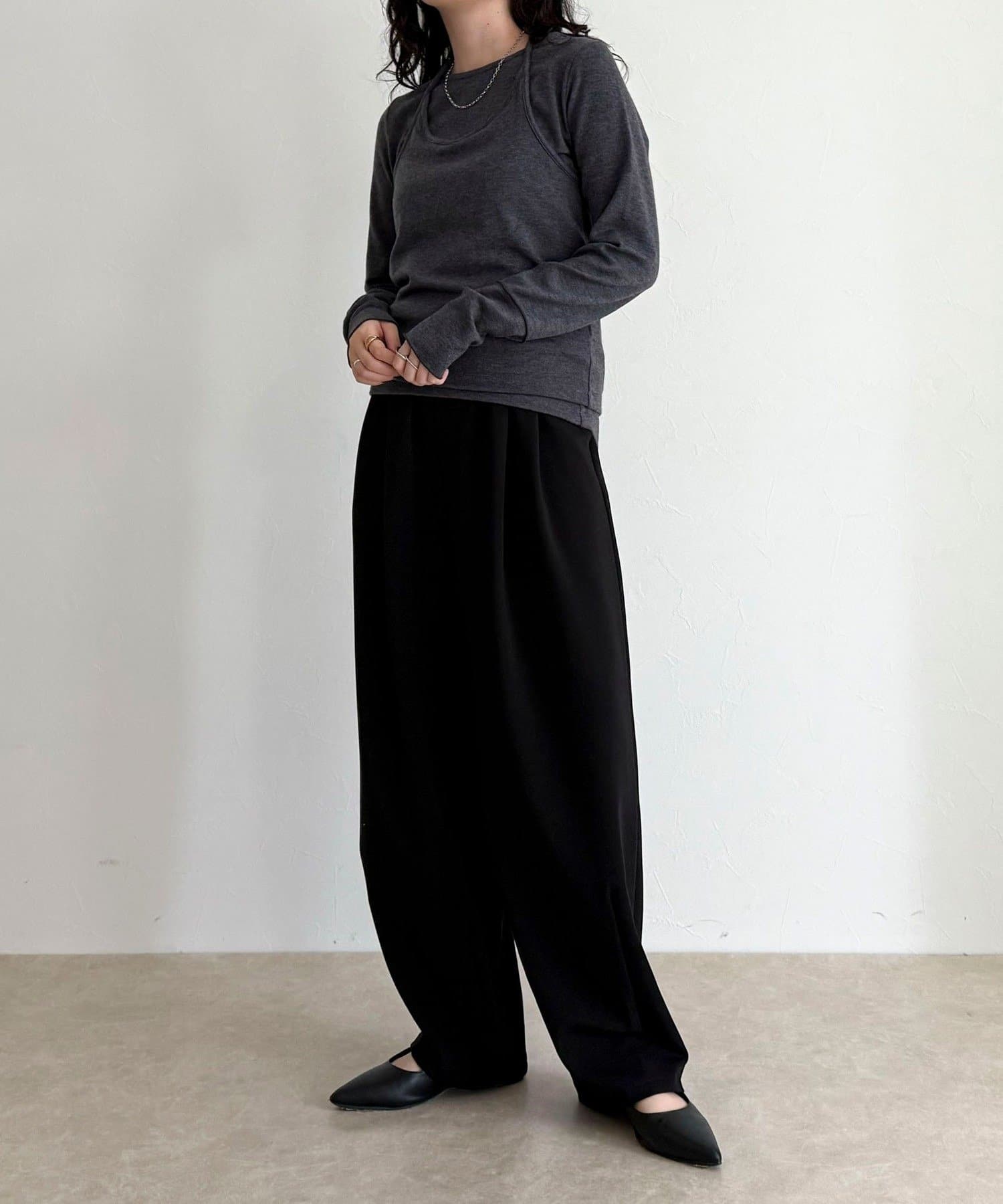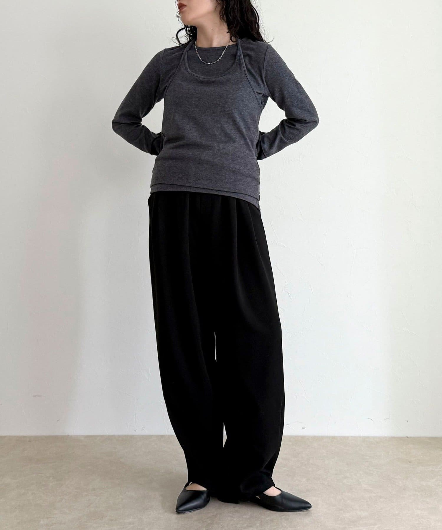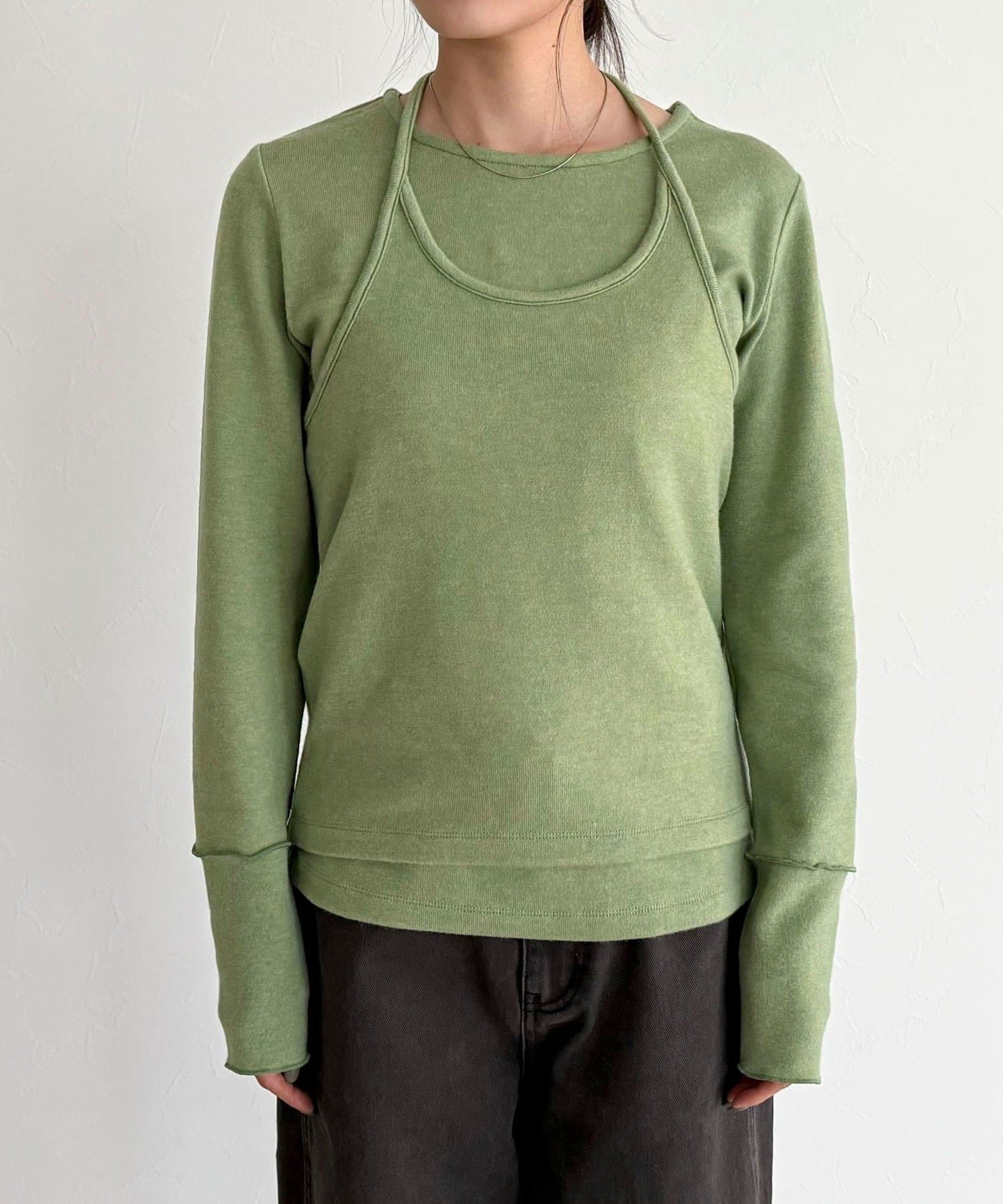 ・同素材のビスチェとロンTがセットになった、トレンドのレイヤードスタイルが楽しめるアイテム