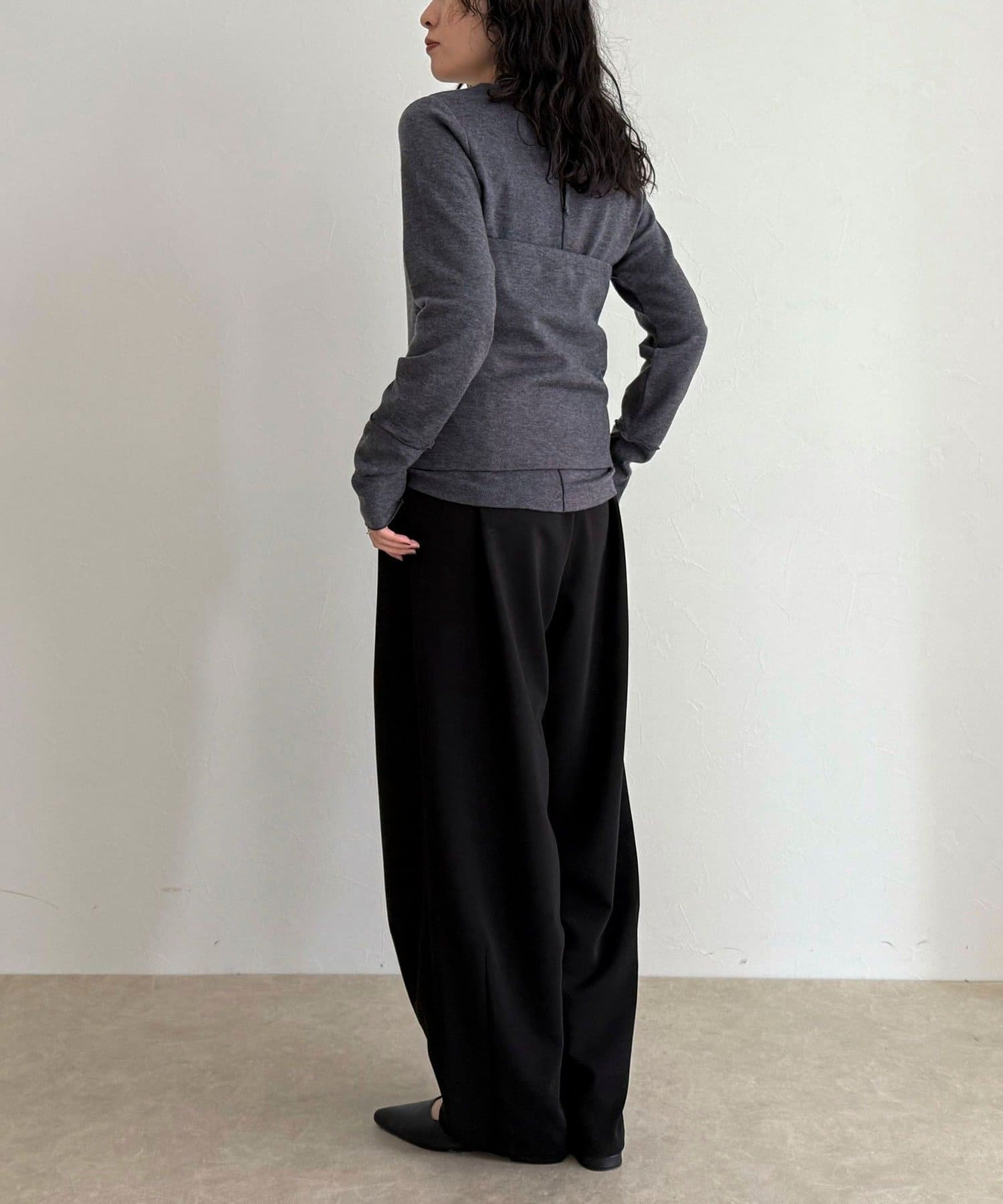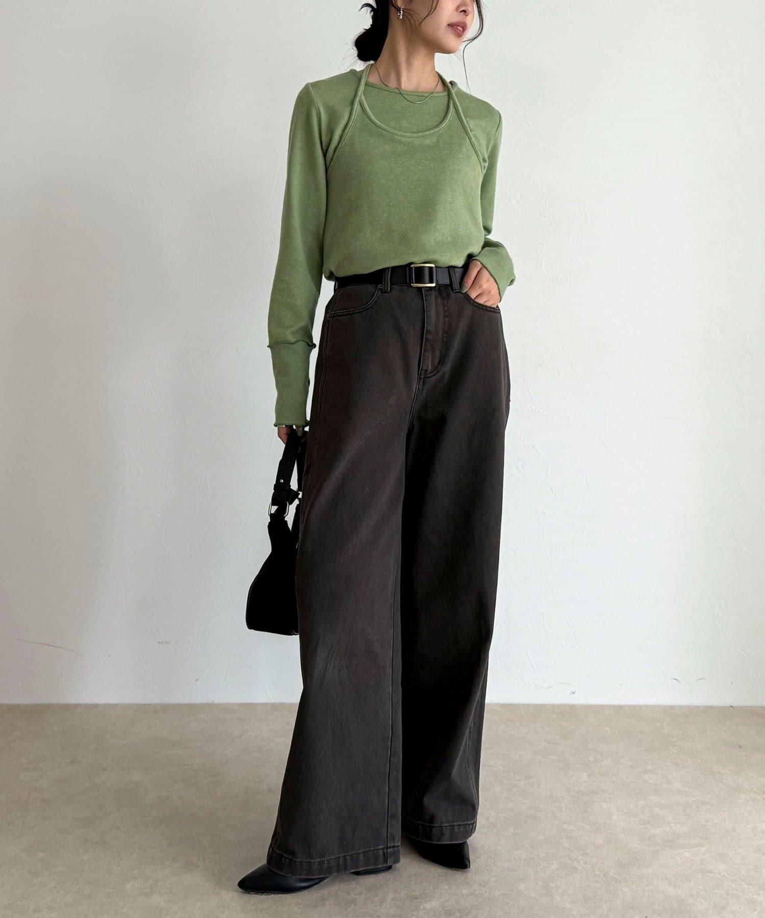・ビスチェを重ねるだけで、シンプルなロンTに程よいアクセントをプラス