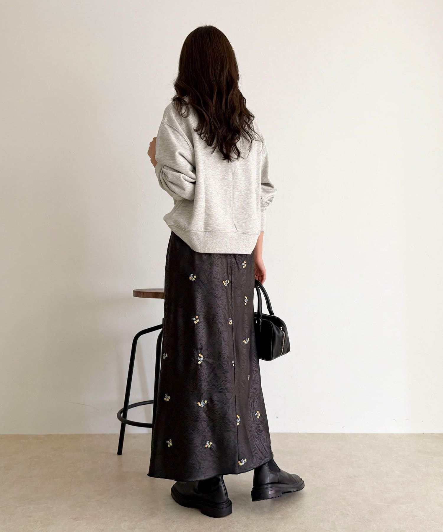 サテンフラワー刺繍スカート