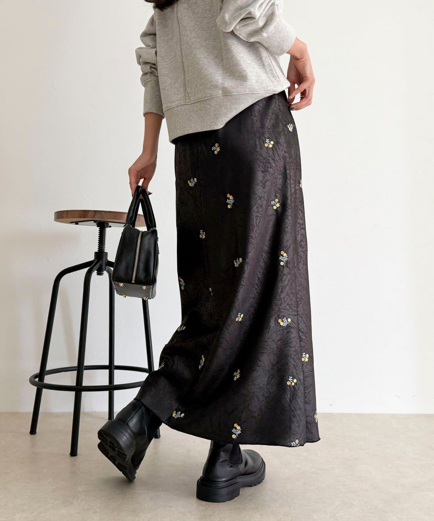 華やかフラワー刺繍のサテンスカート