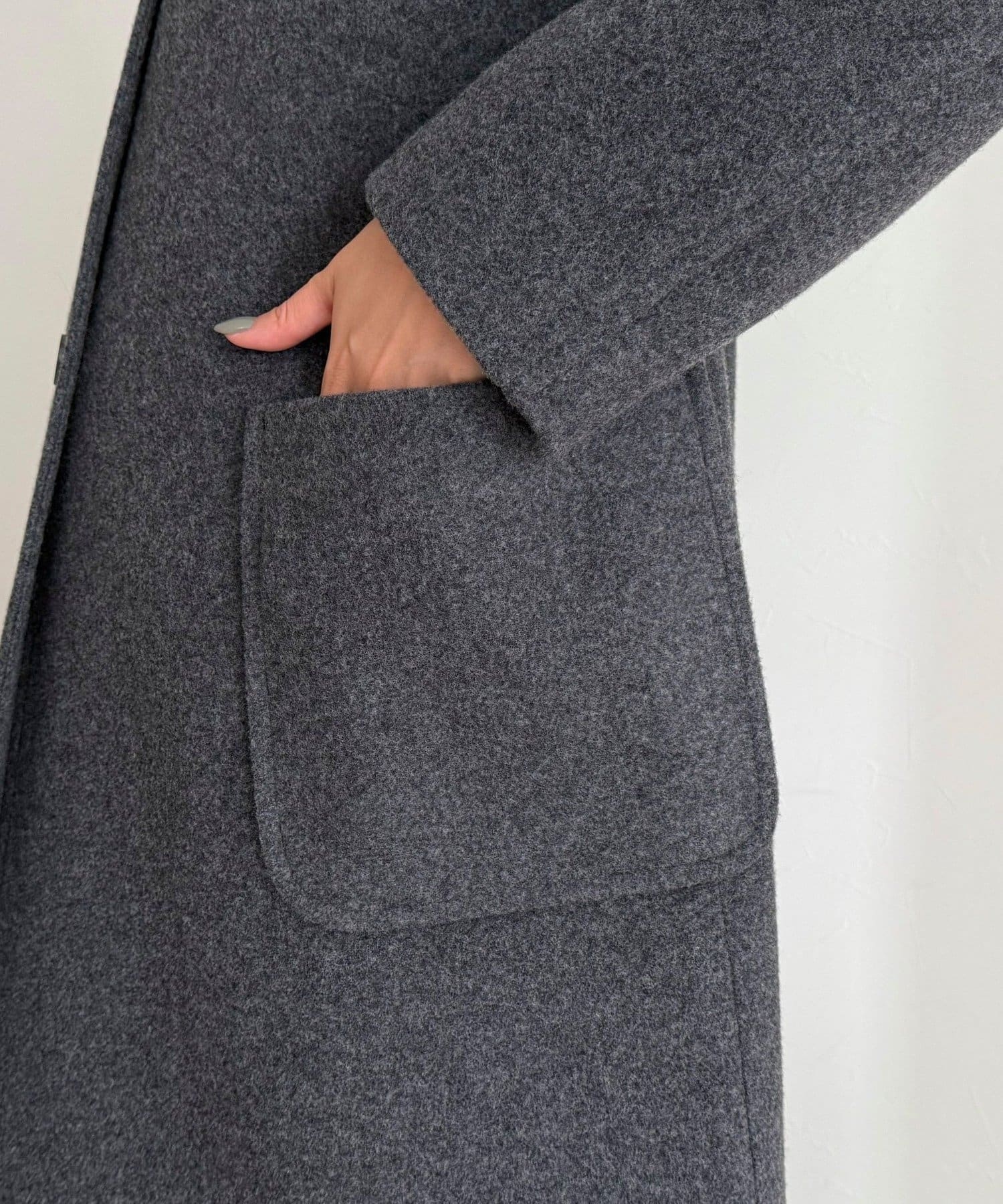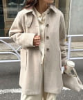 156cmスタッフ(38サイズ着用):ひざに少しかかるくらいの丈感で、バランスよく着られました。肩まわりや身幅にもゆとりがあり、厚手のニットを中に着てももたつかず快適です!軽い着心地なのにしっかり暖かく、通勤にもお出かけにも重宝しそうです◎パンツでかっこよく、スカートで女性らしくも着こなせる万能アウターです!