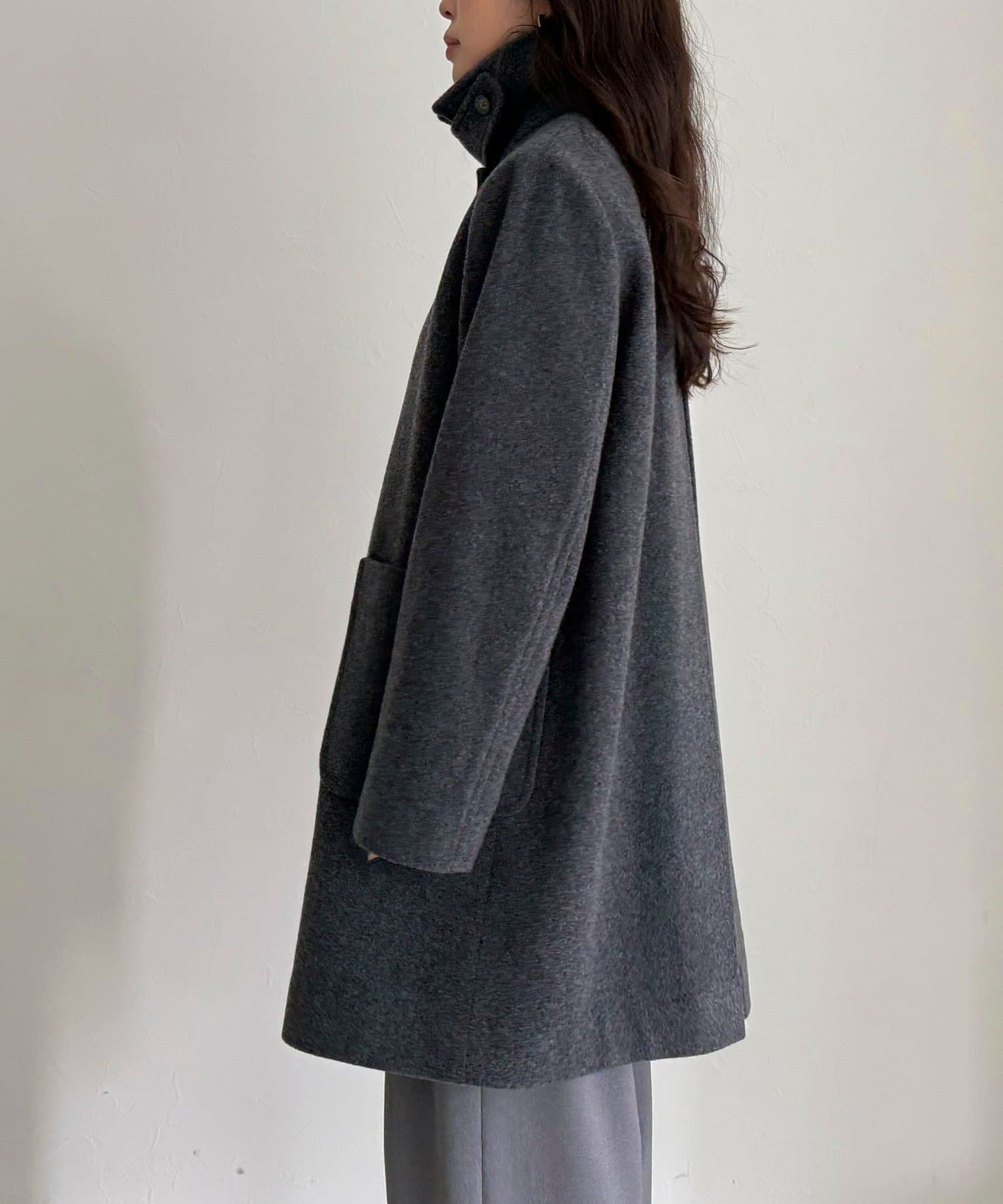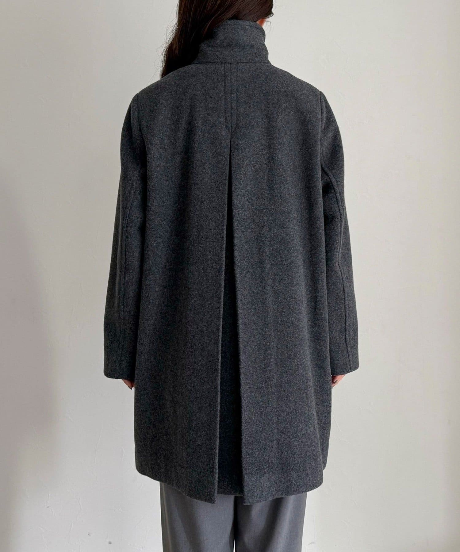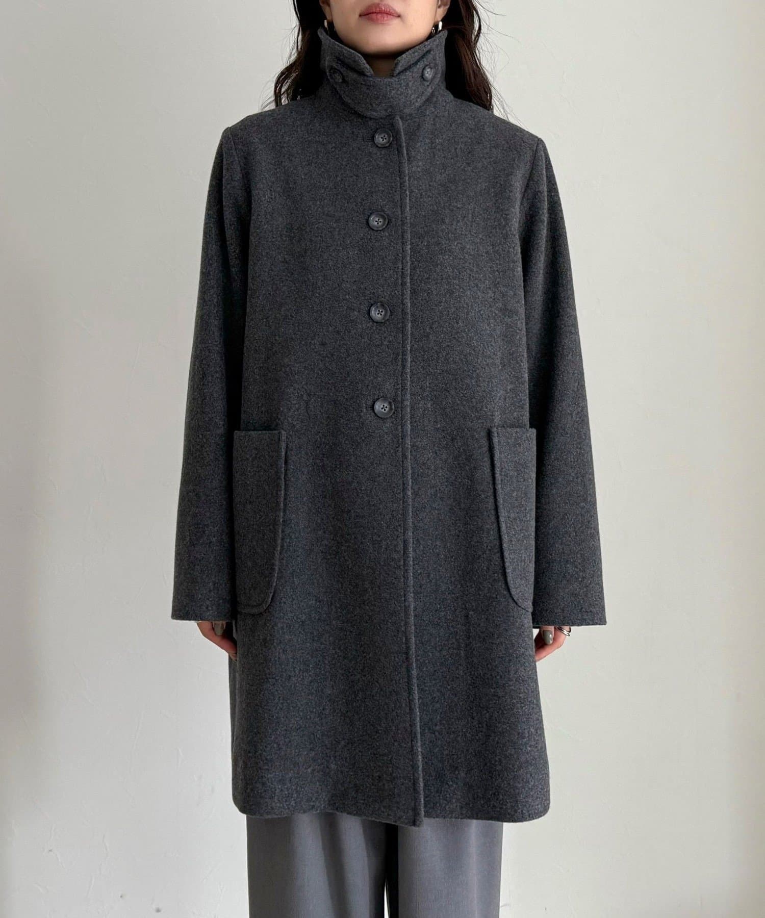 ・柔らかな風合いのウール100%生地を使用した、上質なステンカラーミドルコート
