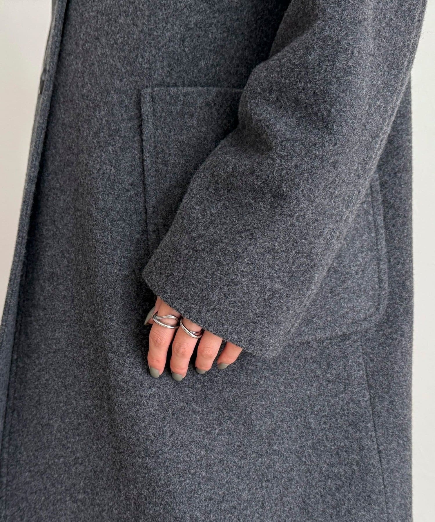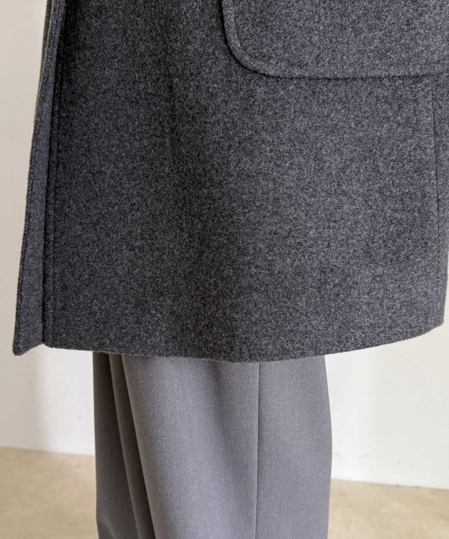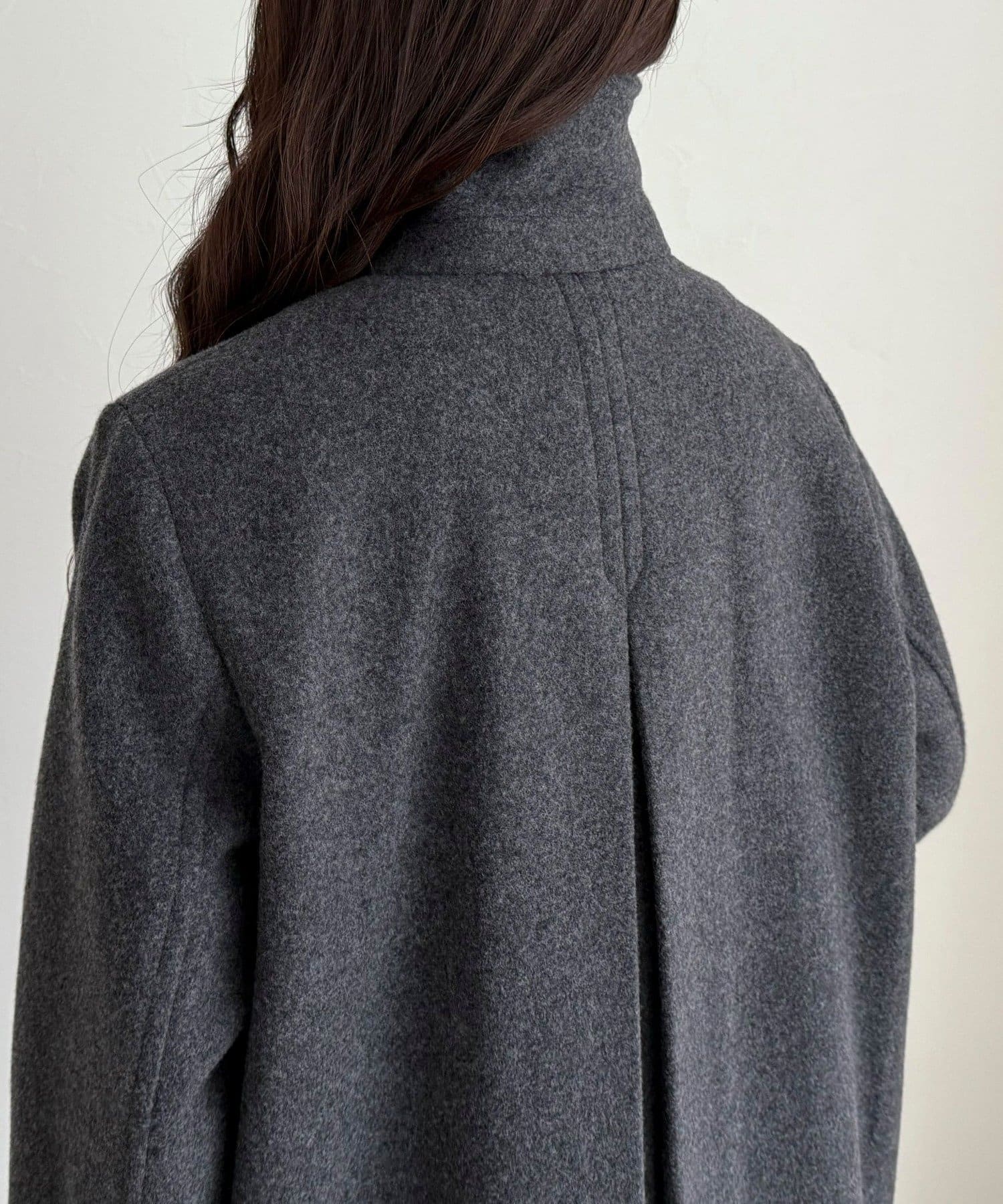 ・柔らかな風合いのウール100%生地を使用した、上質なステンカラーミドルコート