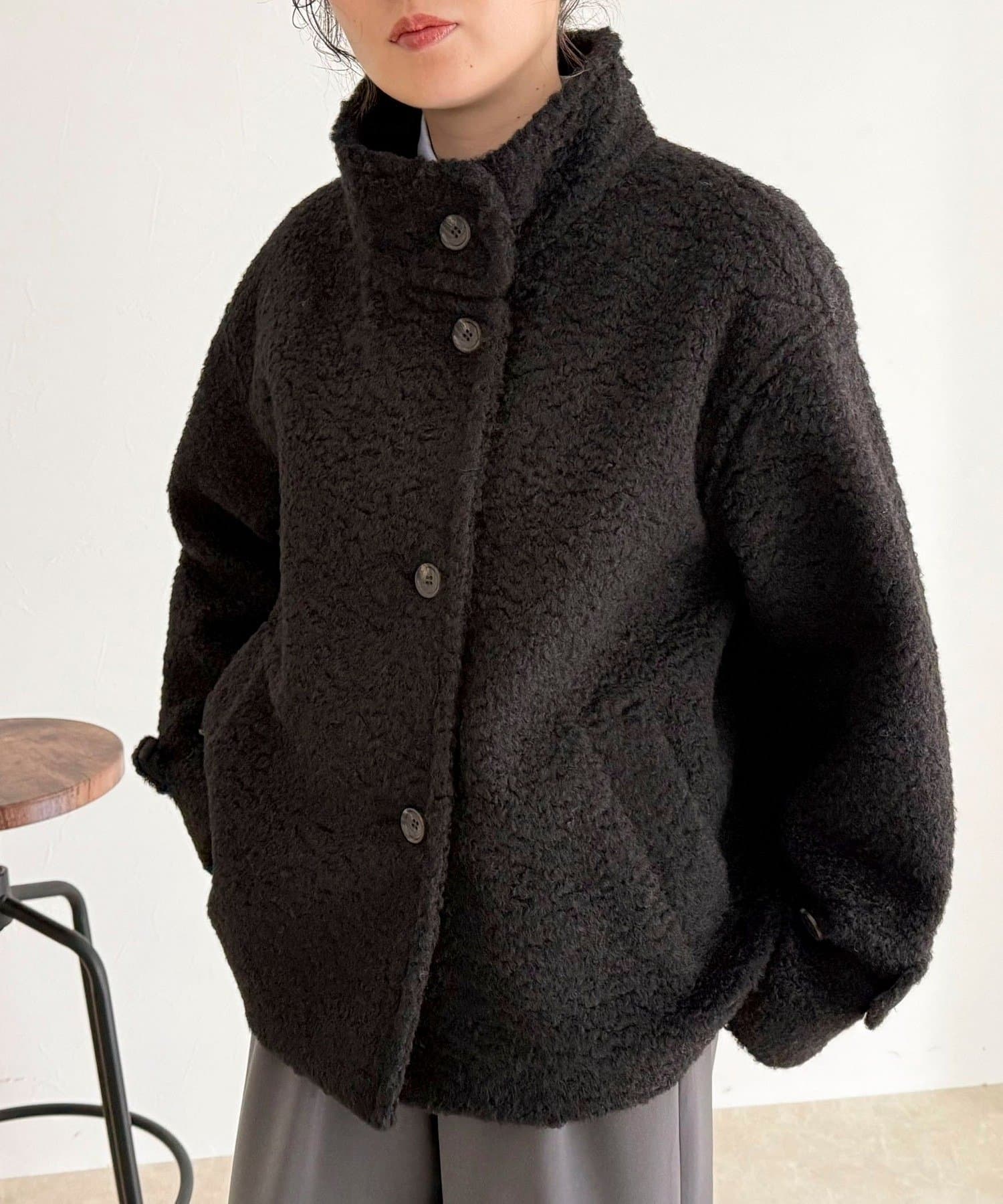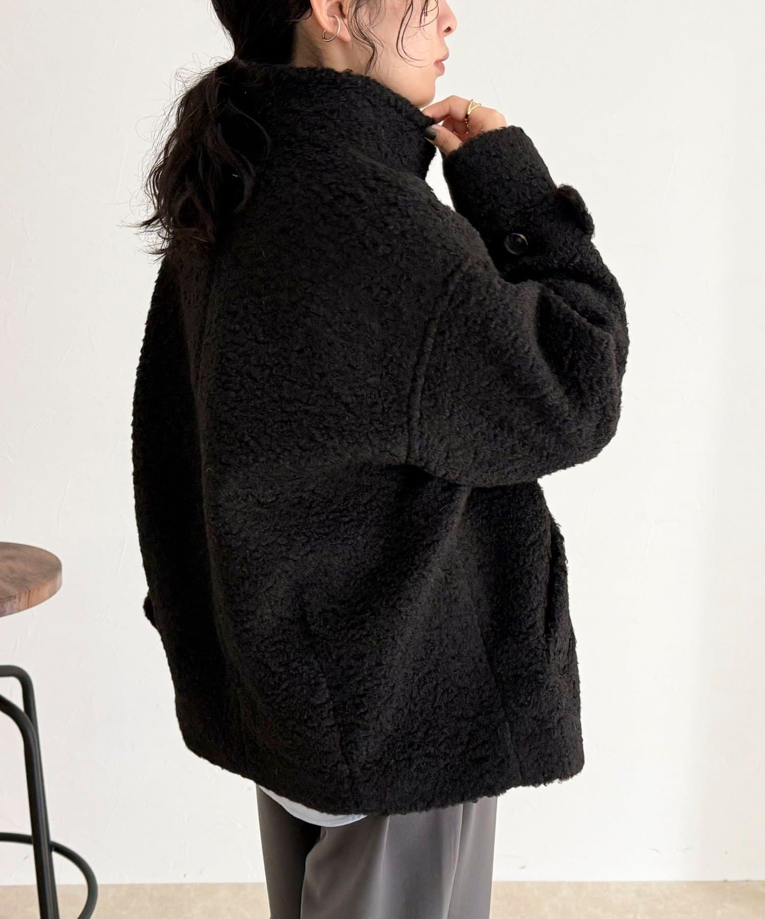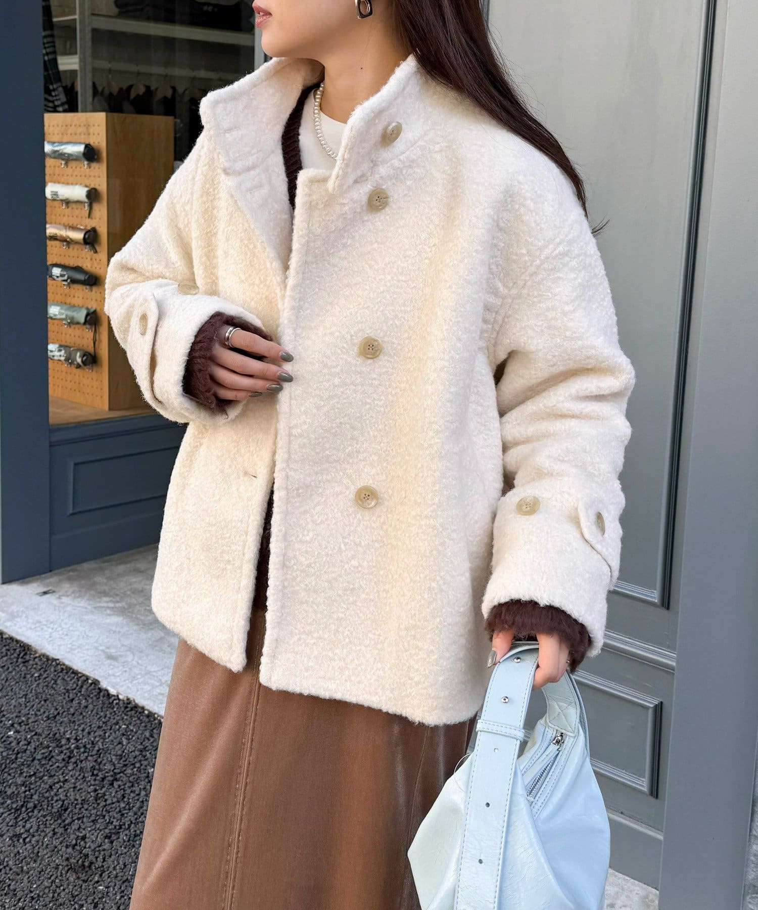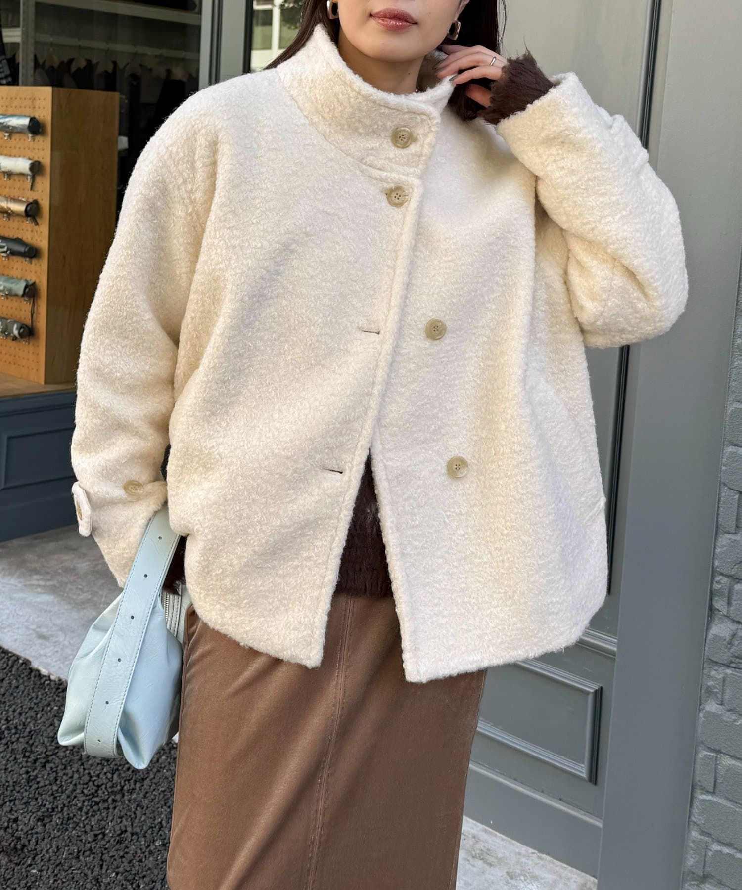 ・もこもことしたボリューム感が目を惹くスタンドカラーコート