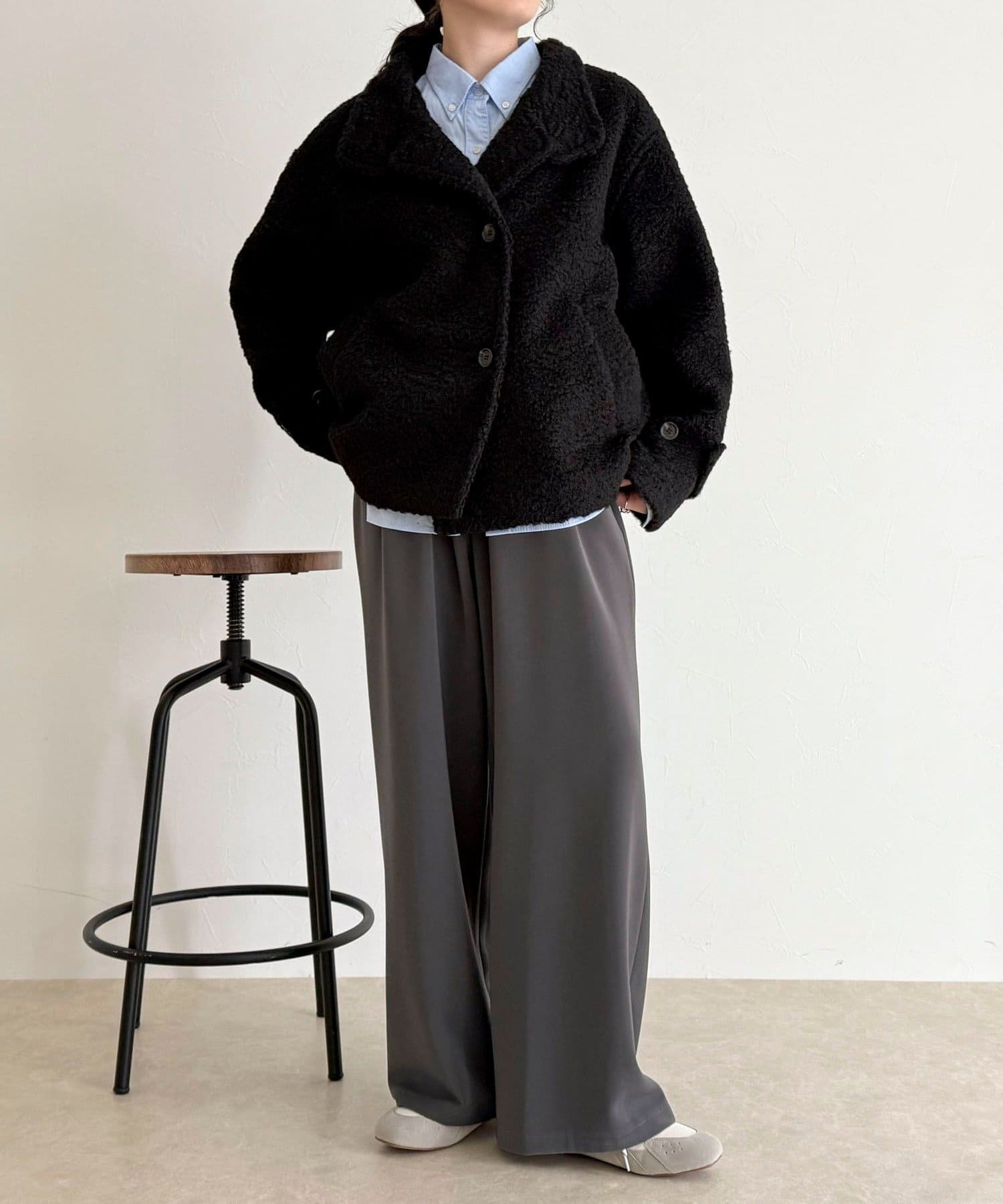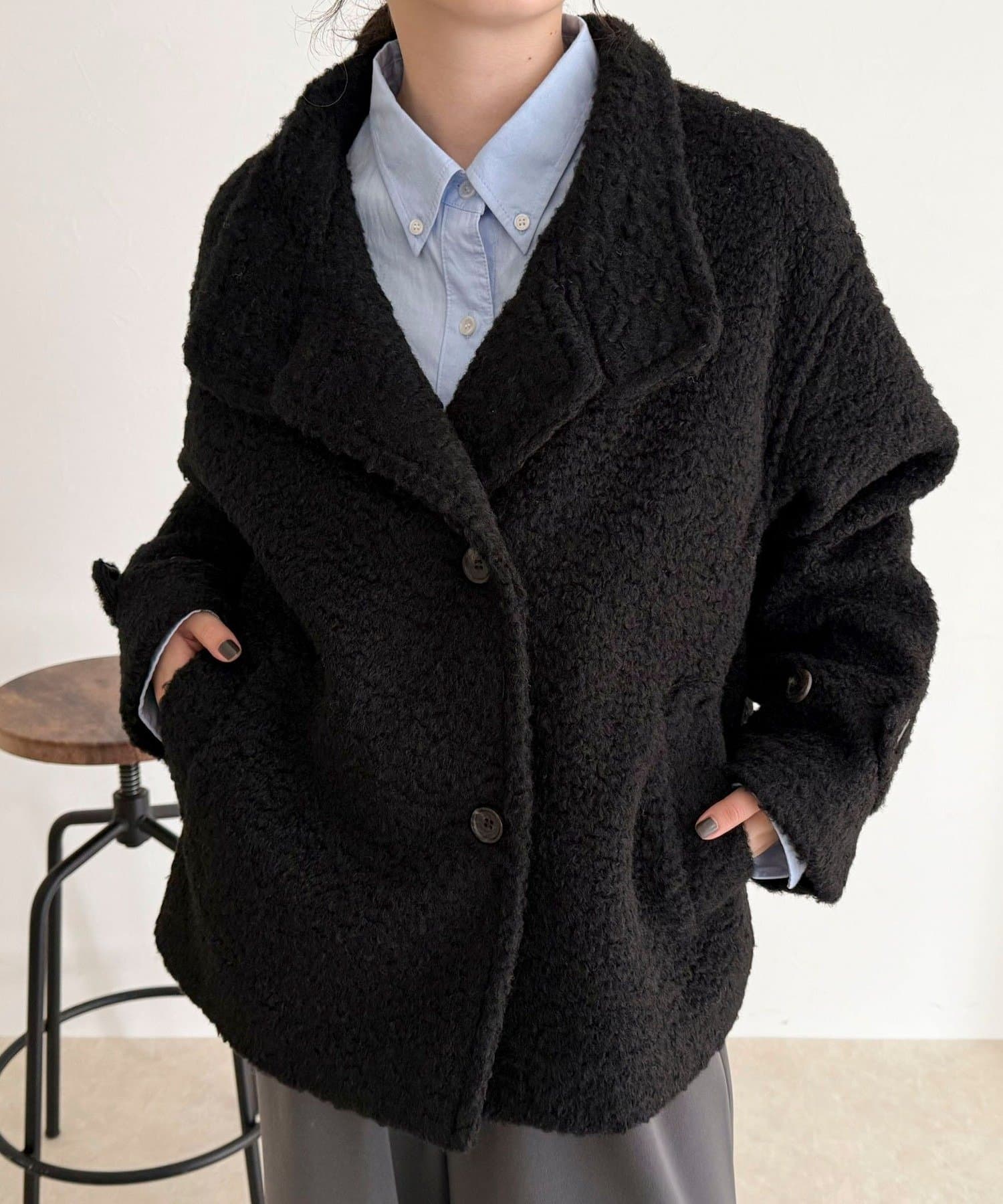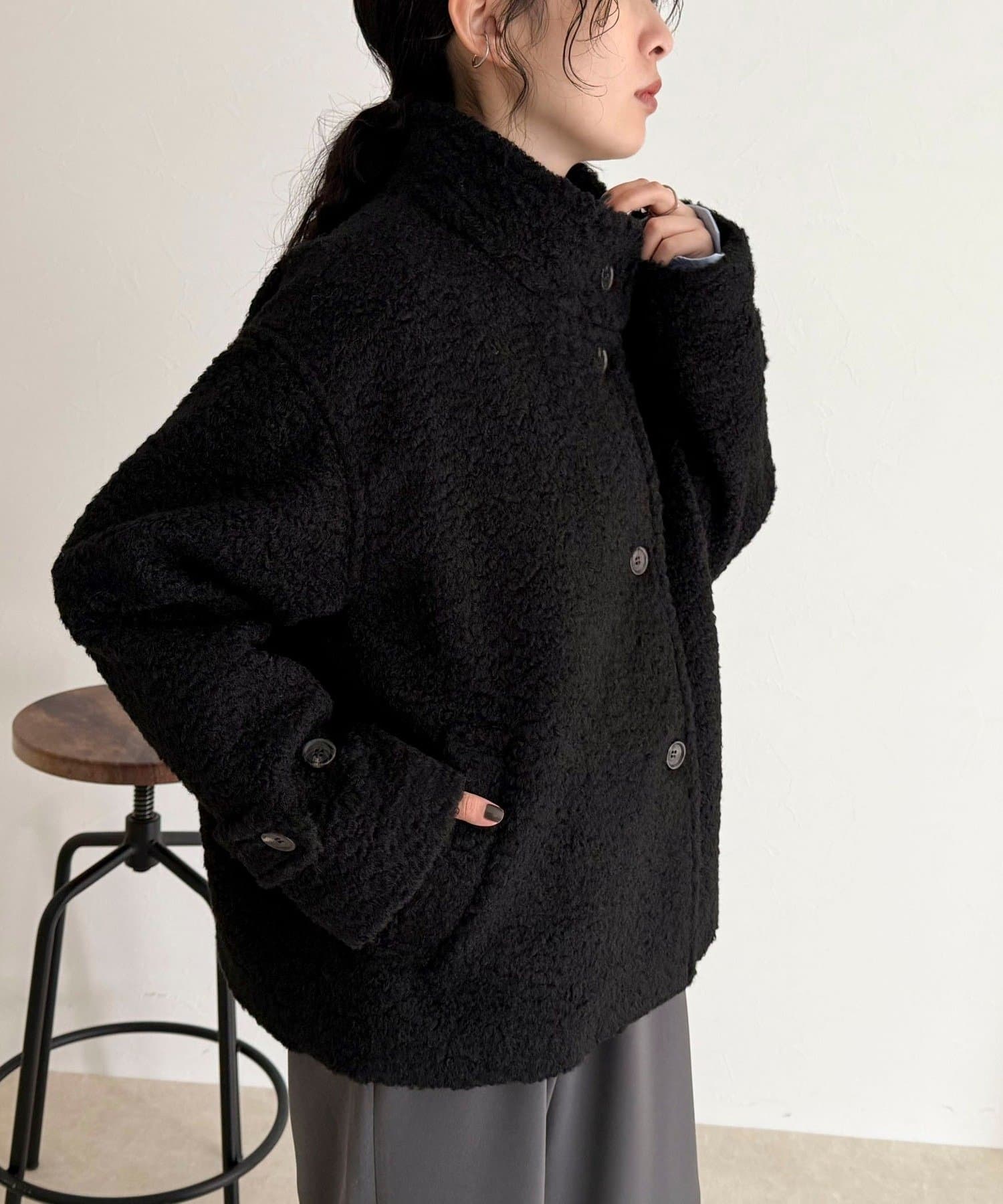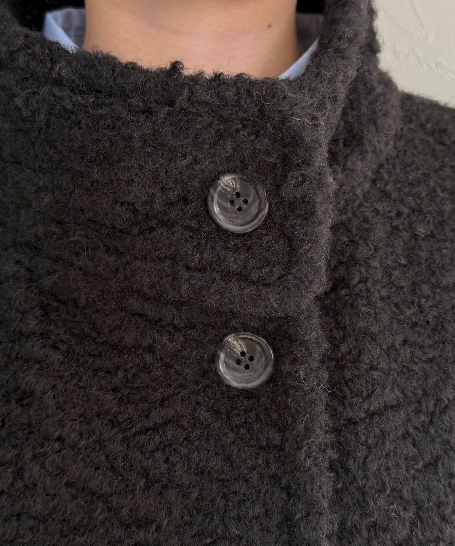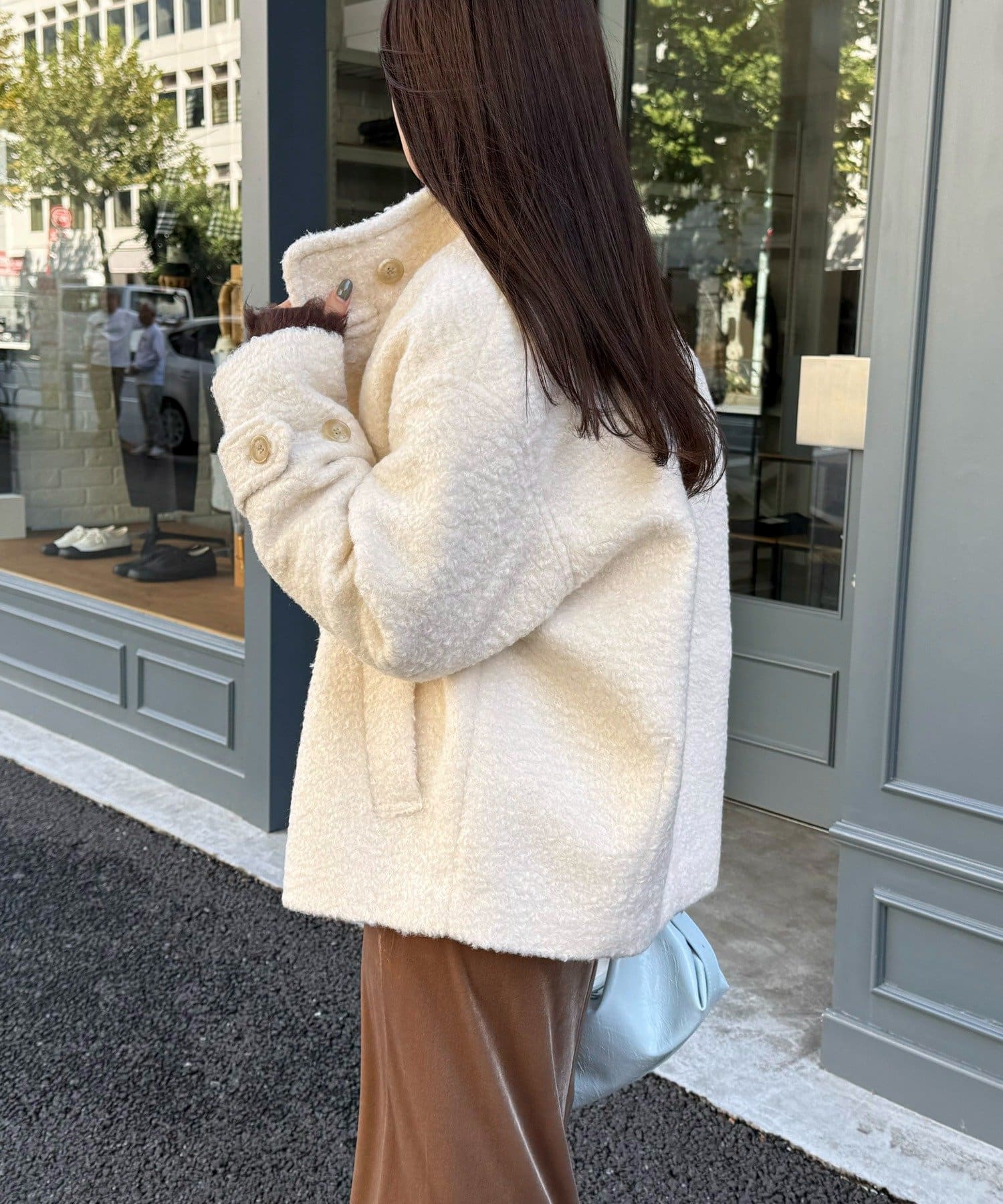 ・もこもことしたボリューム感が目を惹くスタンドカラーコート
